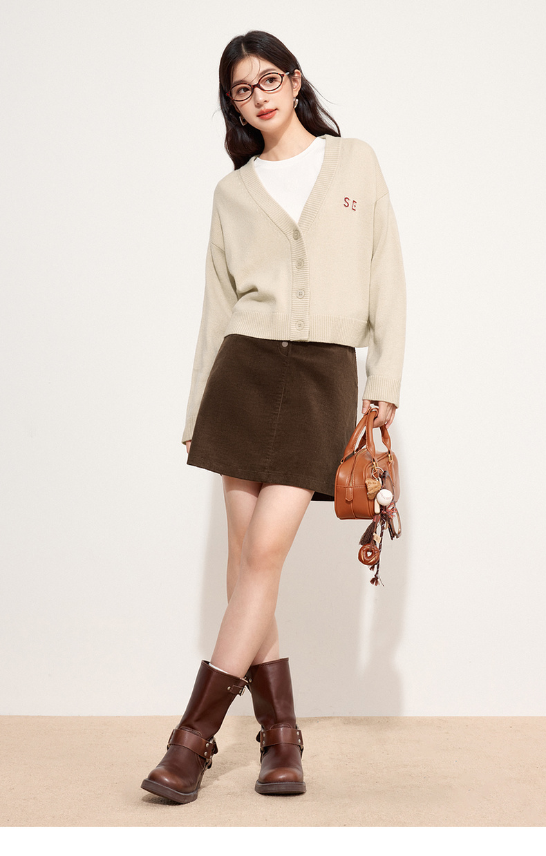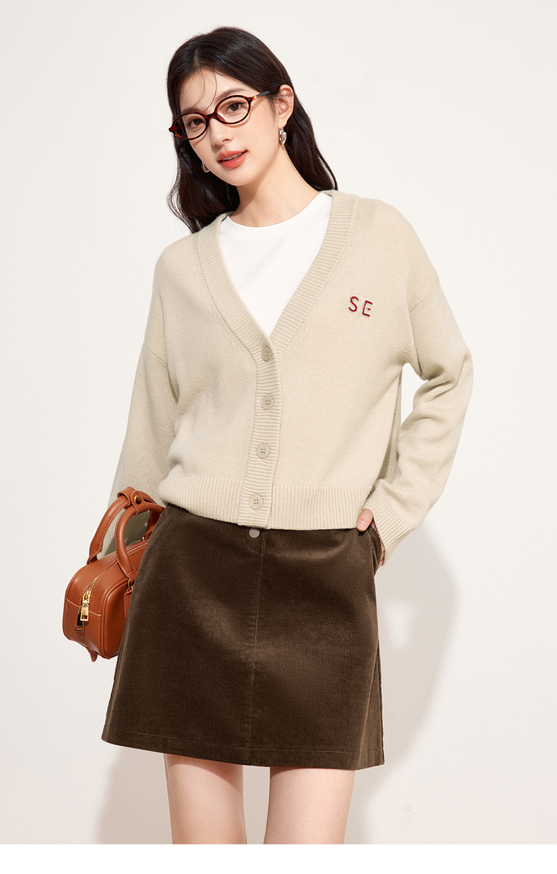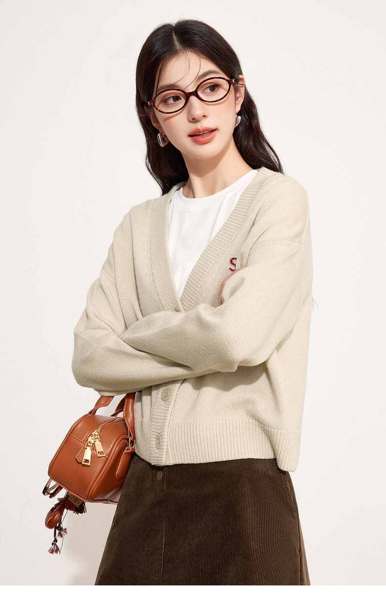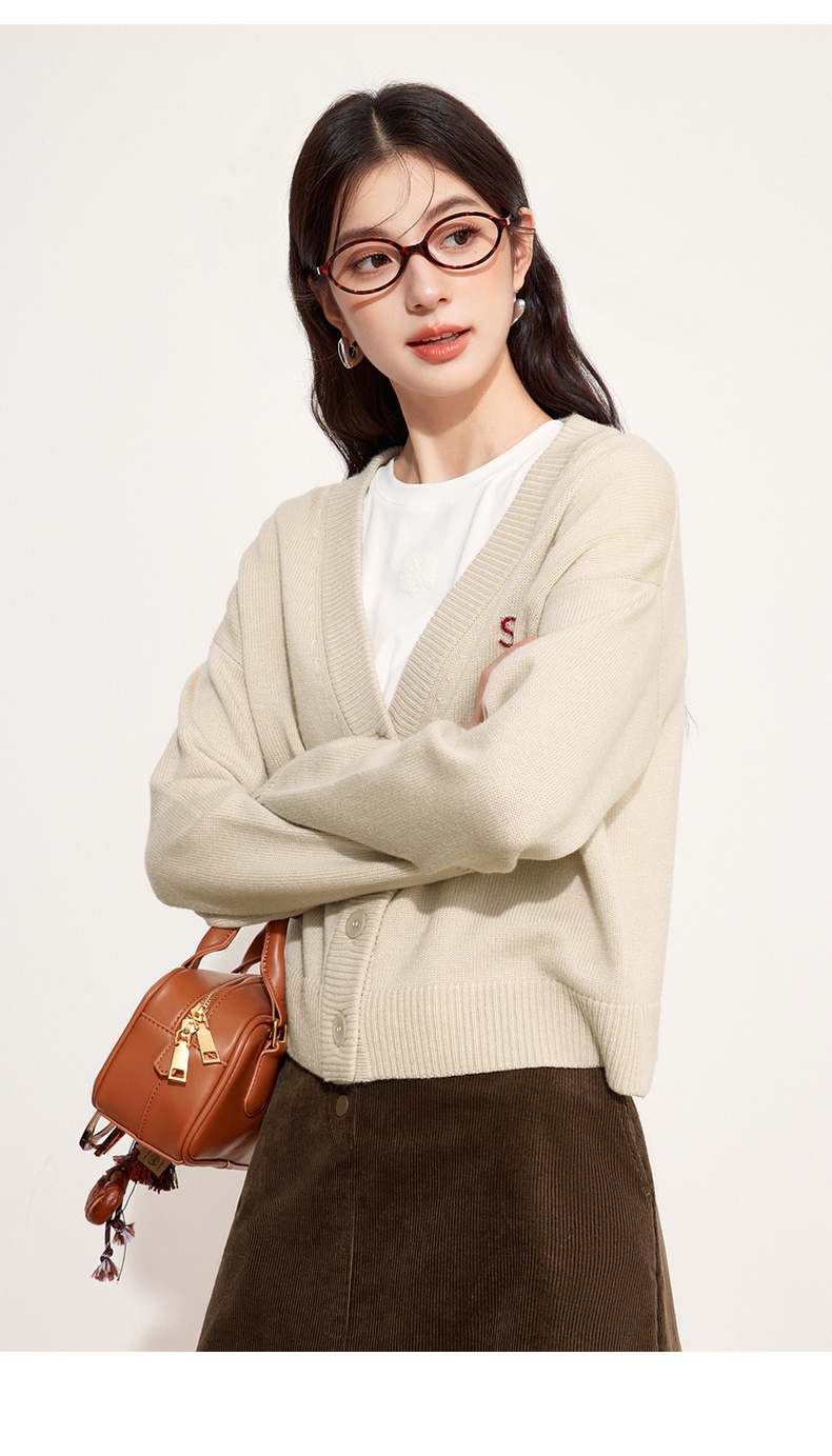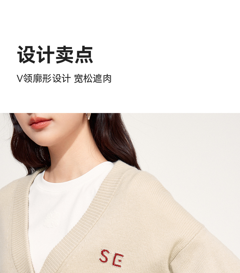【特惠不退货】诗凡黎V领针织衫2024秋新款温柔开衫外搭女3F9131861