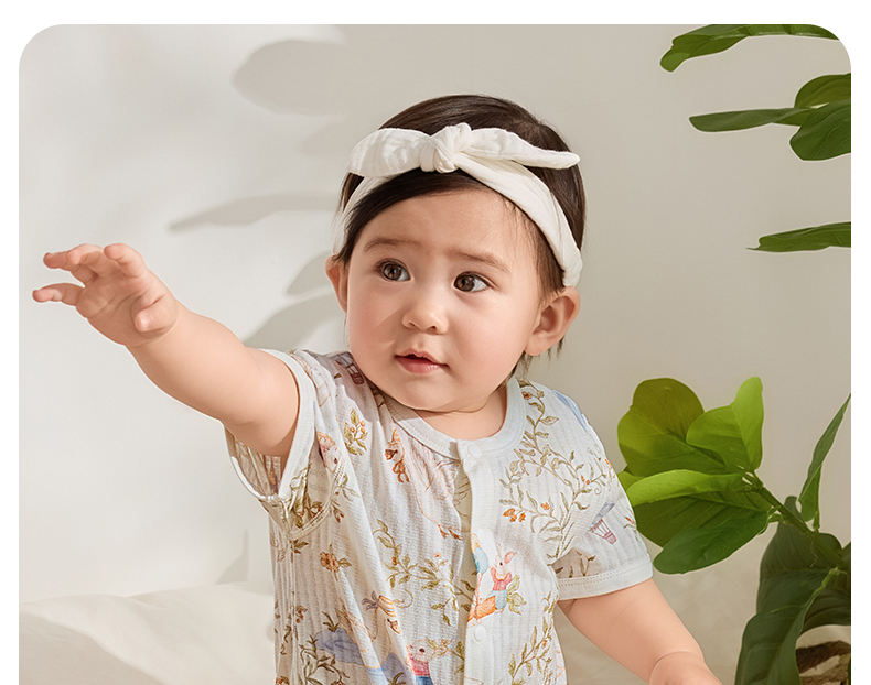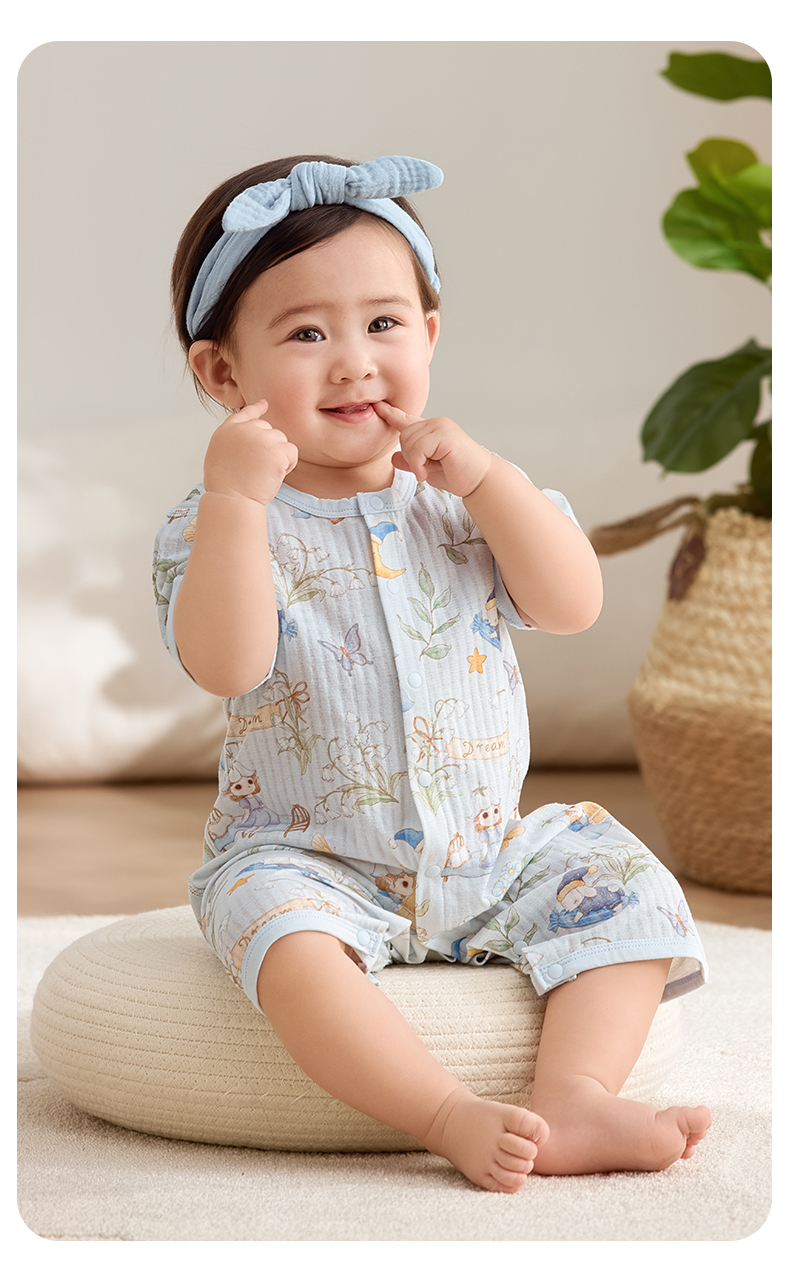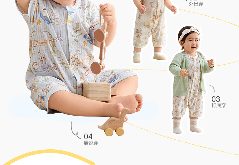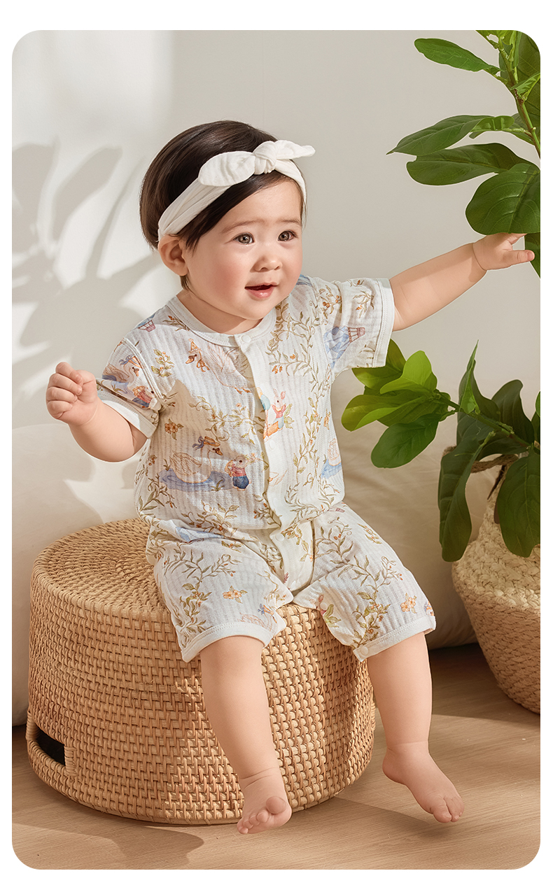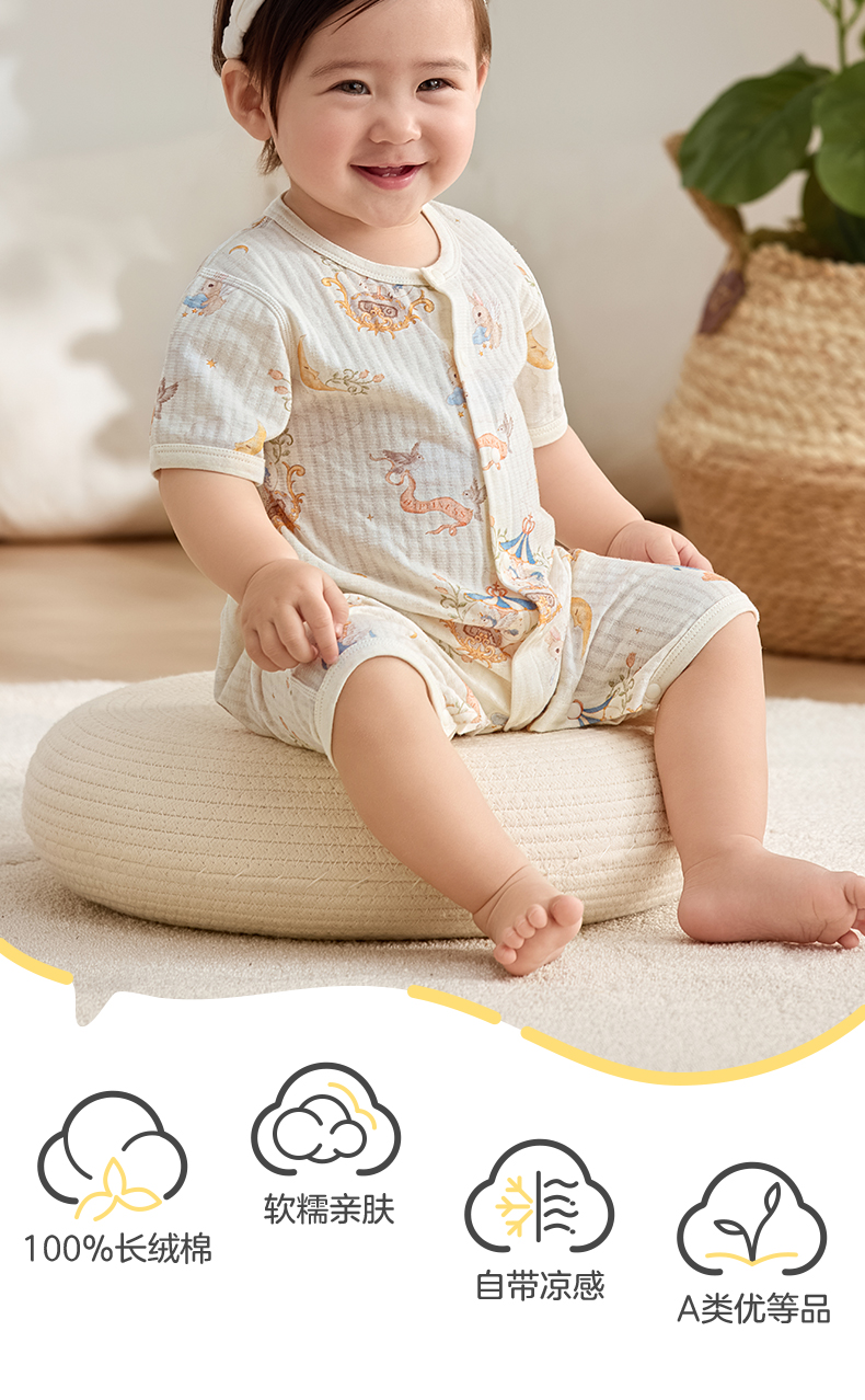 粒粒阳光宝宝衣服直襟连体衣纯棉外出哈衣a类无骨婴儿服