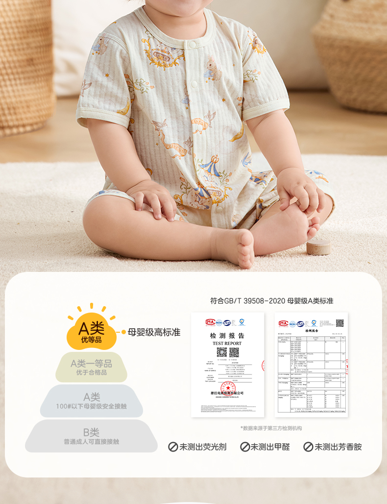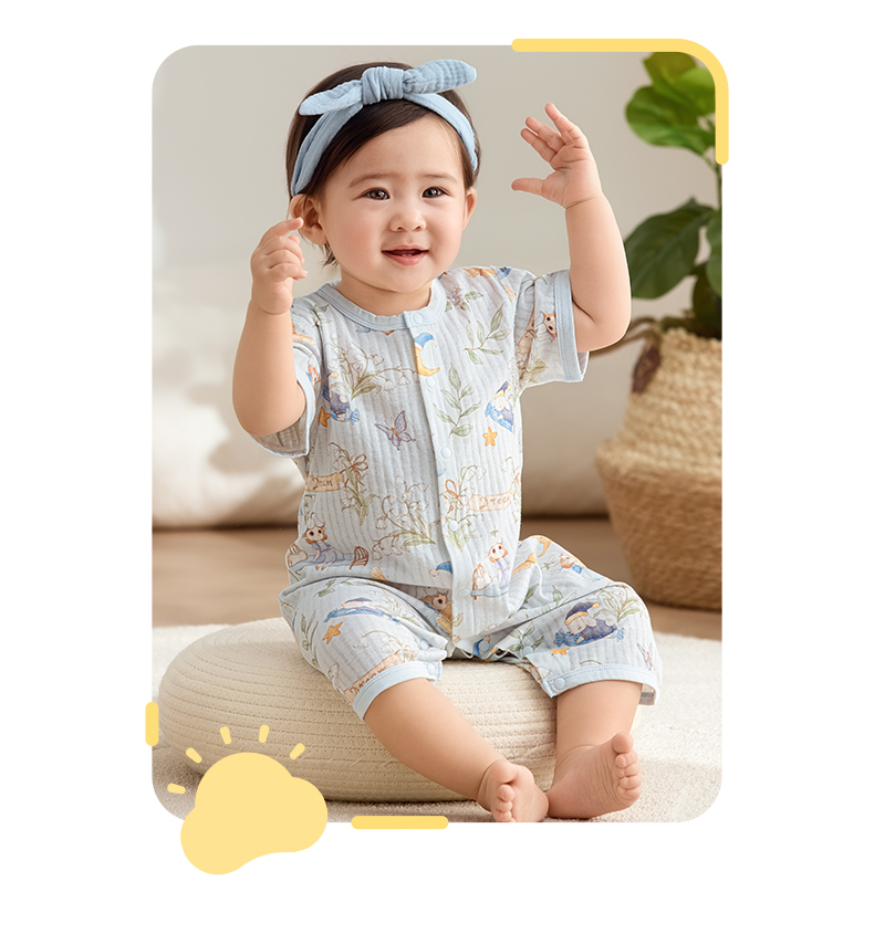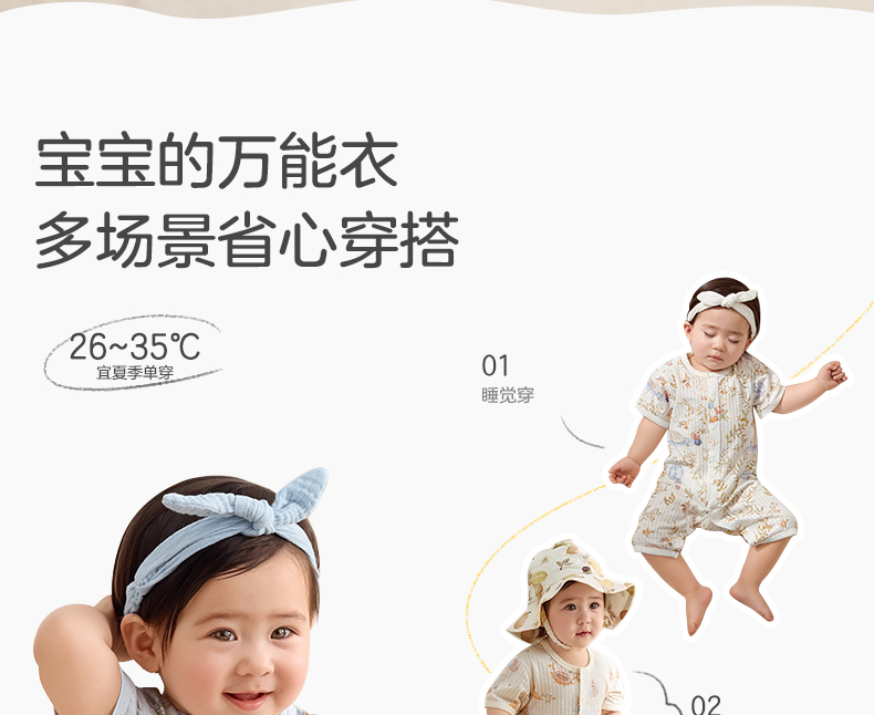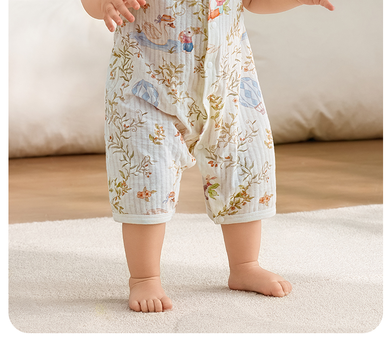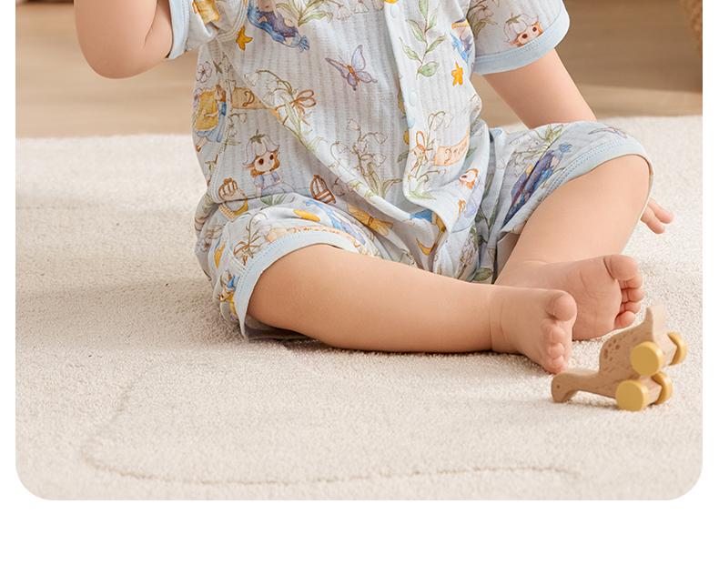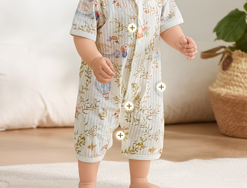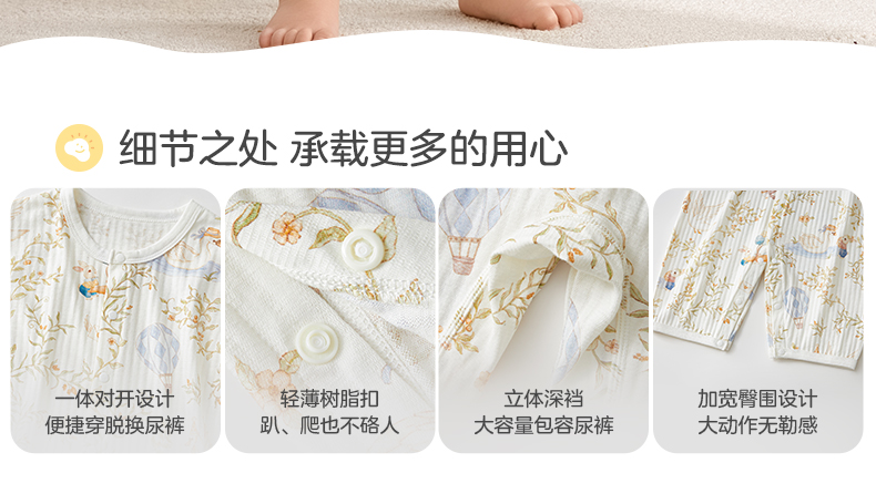 粒粒阳光宝宝衣服直襟连体衣纯棉外出哈衣a类无骨婴儿服