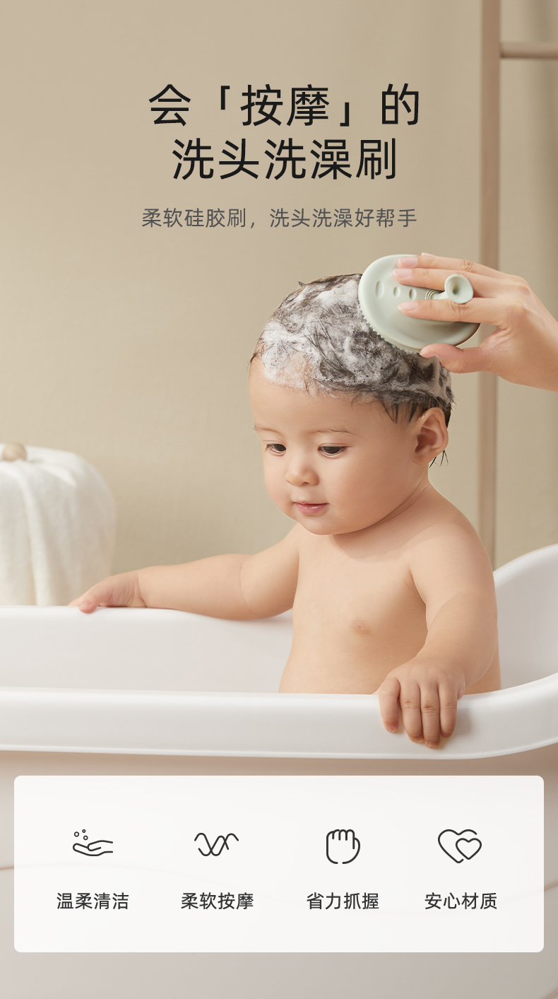婴儿洗澡刷新生宝宝去头垢洗头神器幼童沐浴擦硅胶搓澡棉