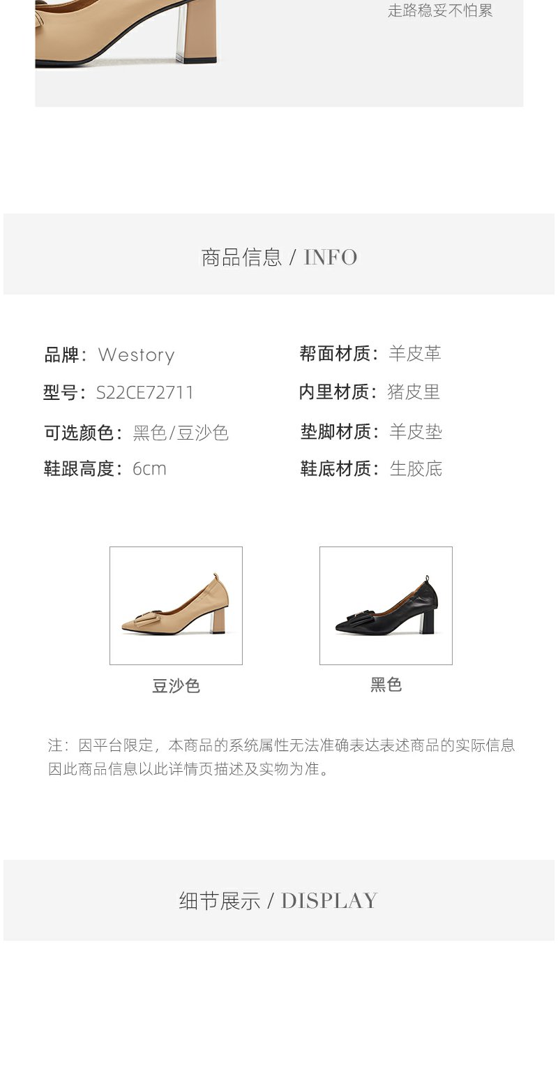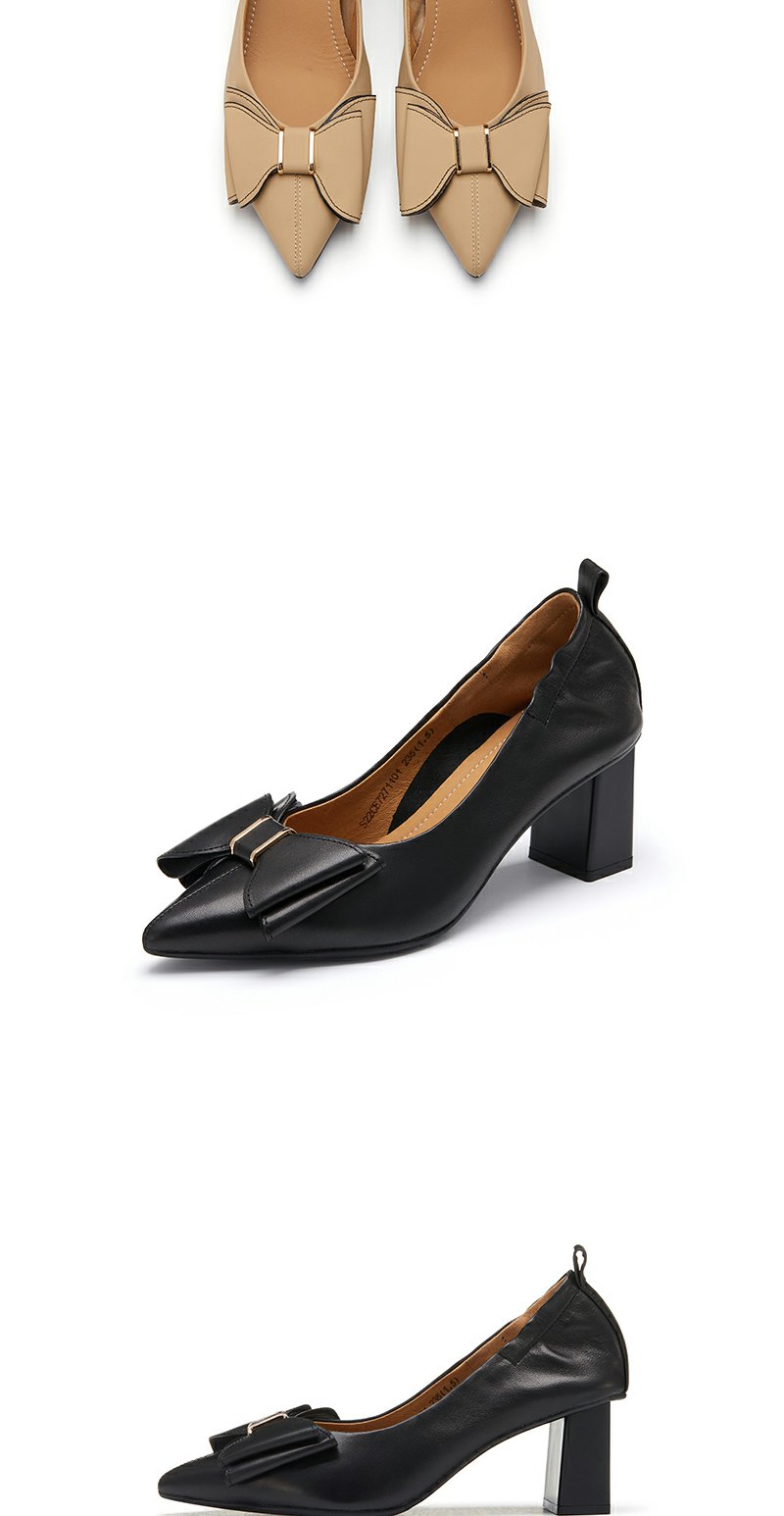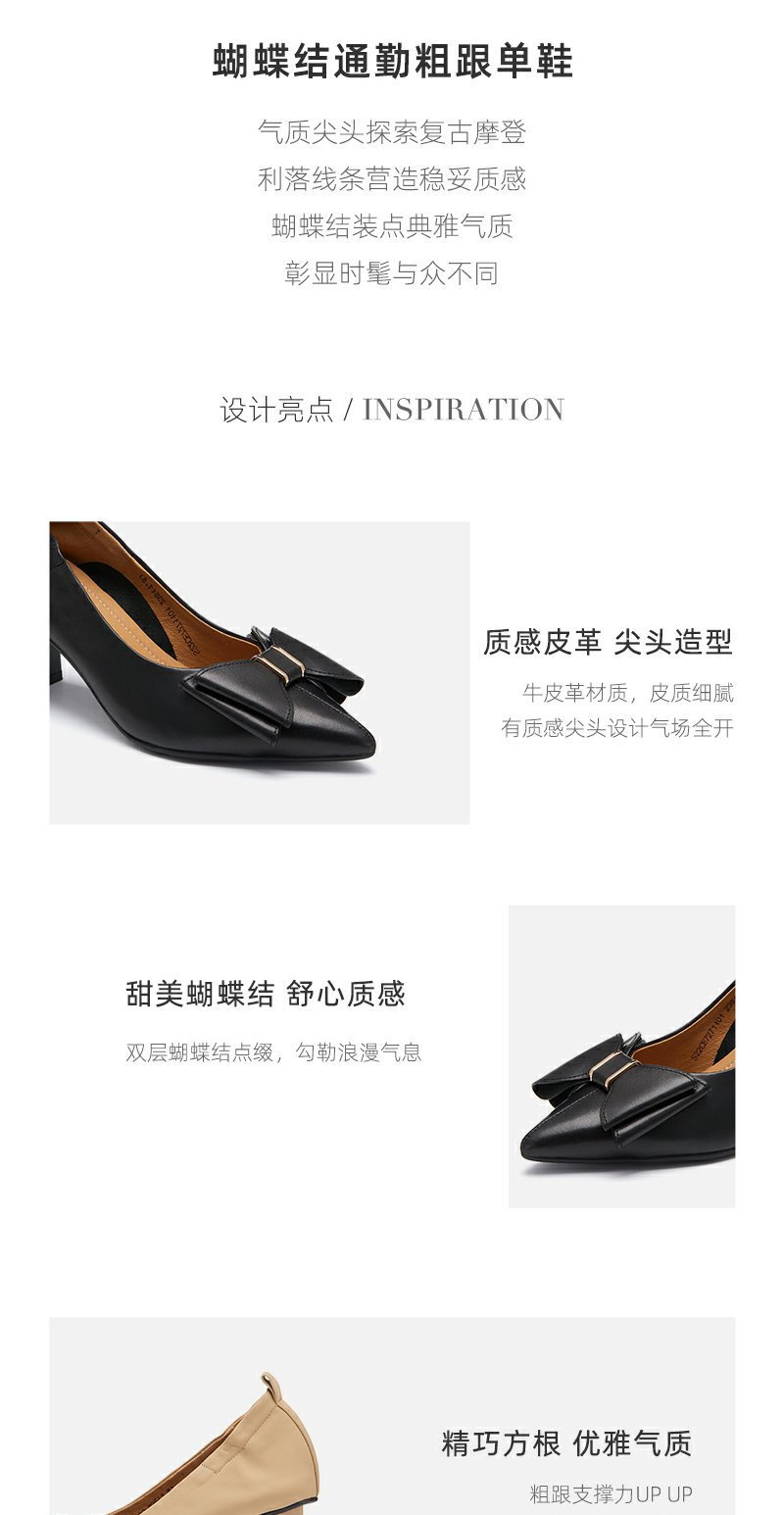 westory蝴蝶结粗跟英伦风通勤粗中跟单鞋女百搭22年秋季新款72711