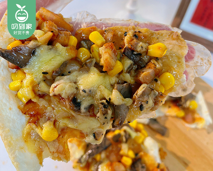 饼底香软松脆,芝士丝顺势拉出,裹挟着菌菇与鸡肉的鲜香;