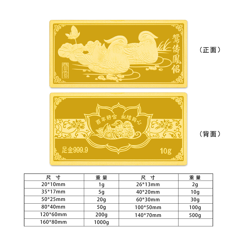 【限时克减138元】【10克】足金999.9 #投资理财 鸳俦凤侣金条10g(配亚克力盒)(YDJT00005-04)(预售产品下单后不退款不退货不换货不补差价)