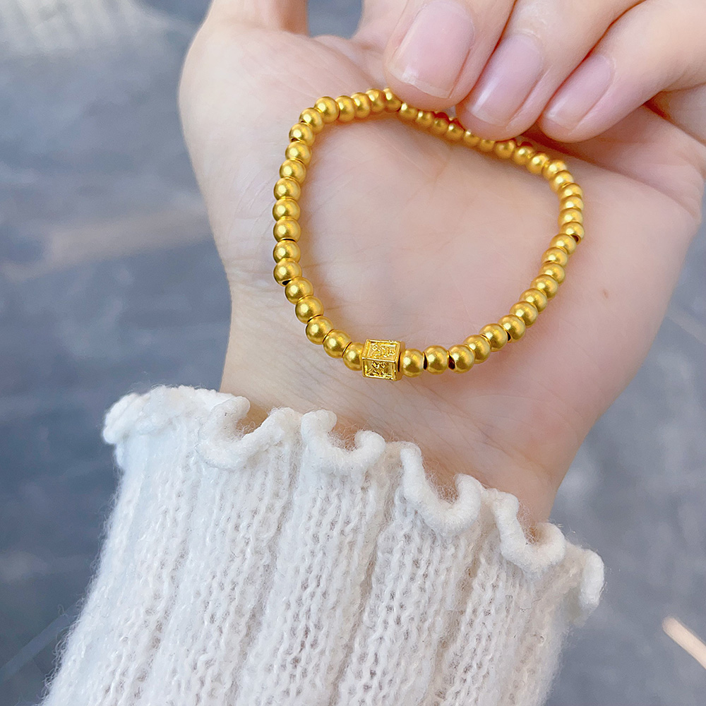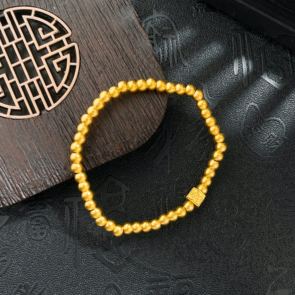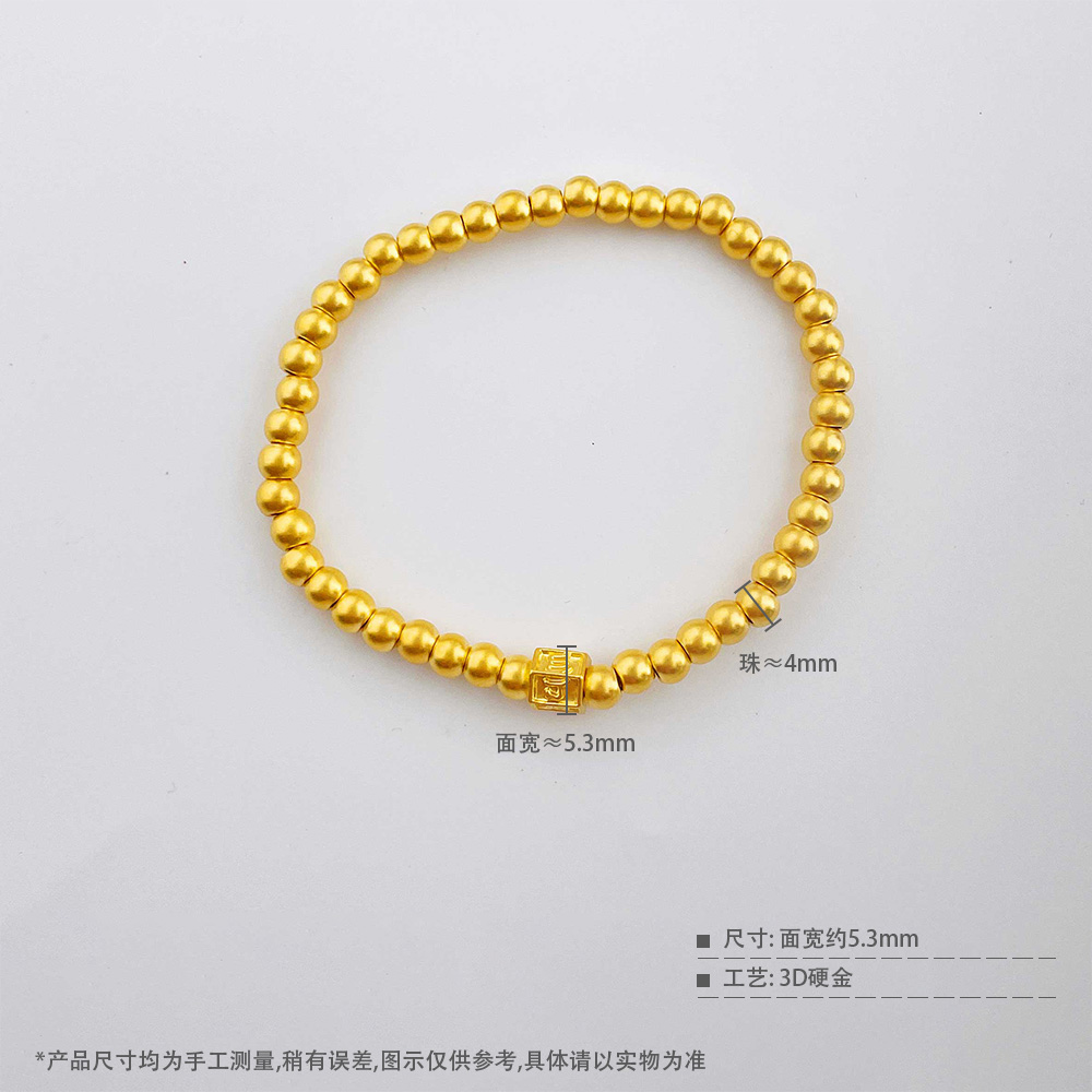 【限时克减150元】足金 3D硬金空心转运珠金珠六字真言经文弹力绳成品手串(珠约3.8-4.2mm)(AK3DSC00033)预售产品下单后不退款不退货不换货不补差价