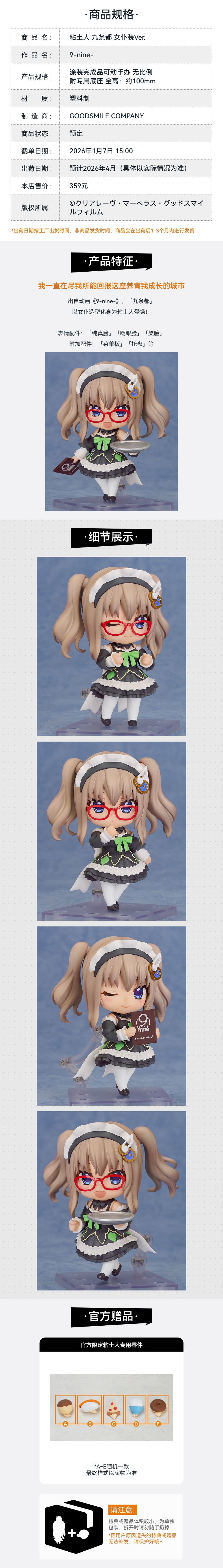 【GSC预售定金】粘土人 九条都 女仆装Ver. 9-nine- 手办模玩