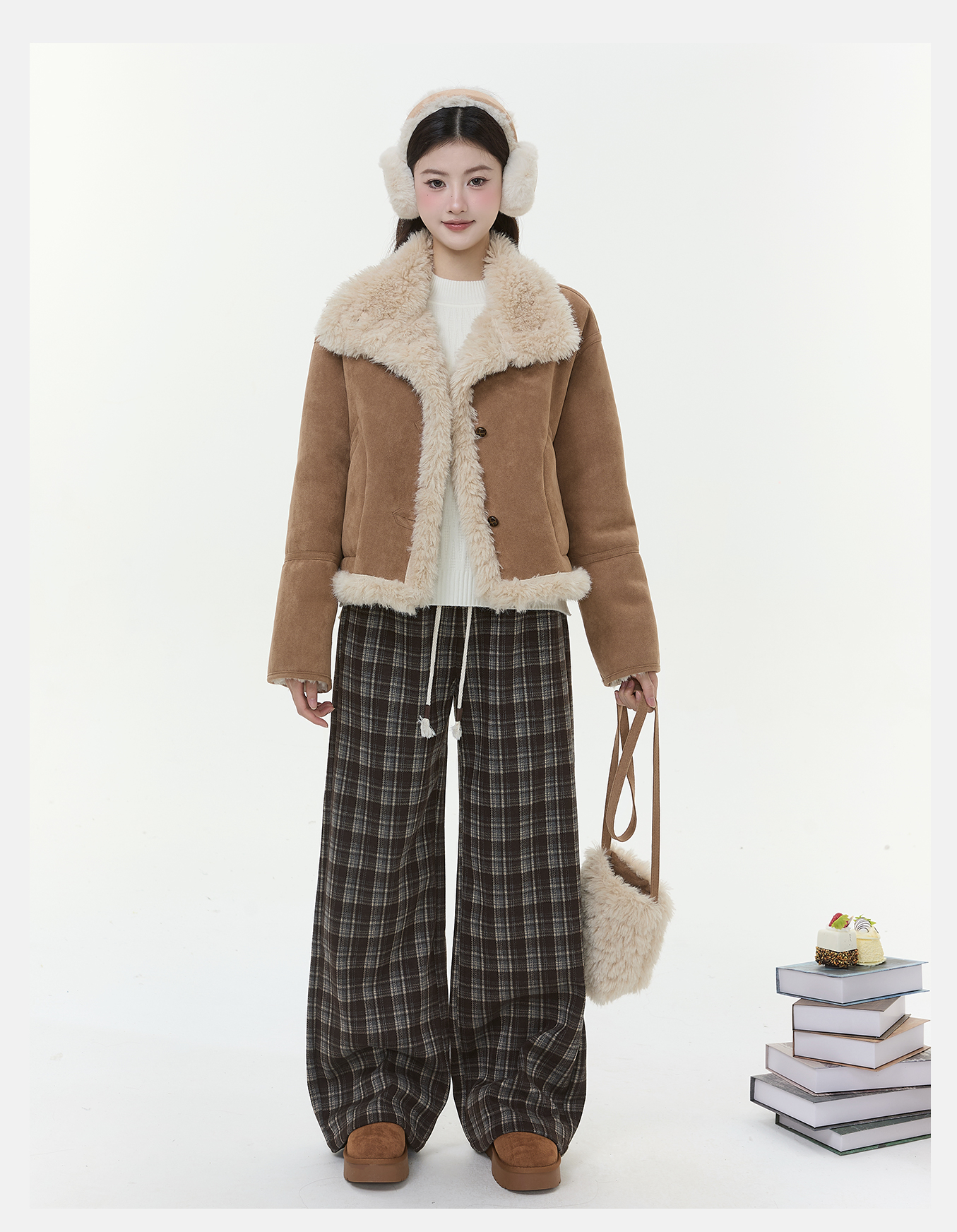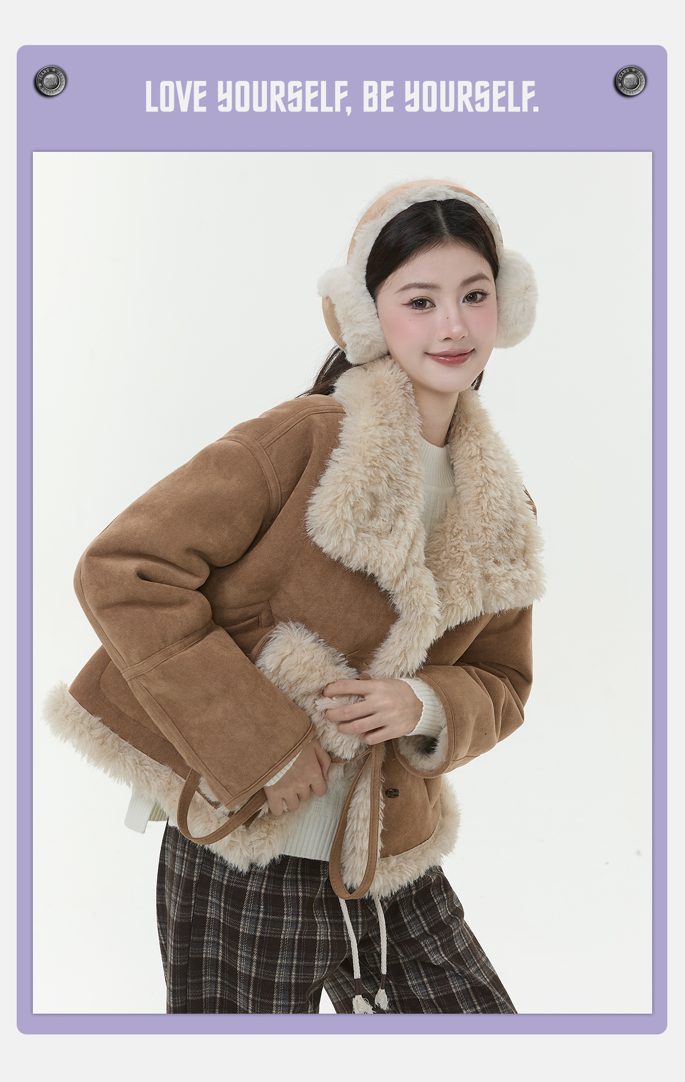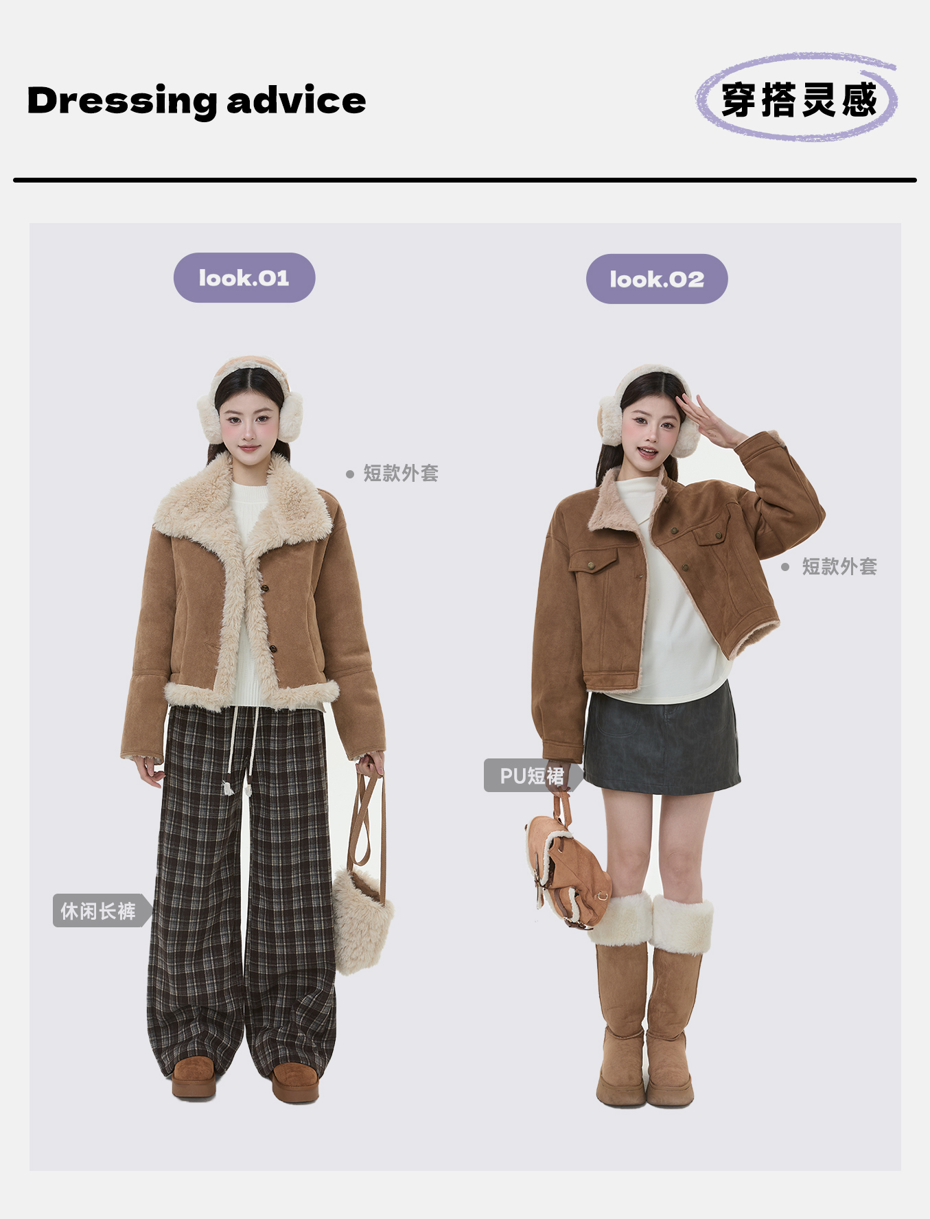 P&X设计师女装2025冬季羊羔绒皮毛一体短款外套 825413241 咖色