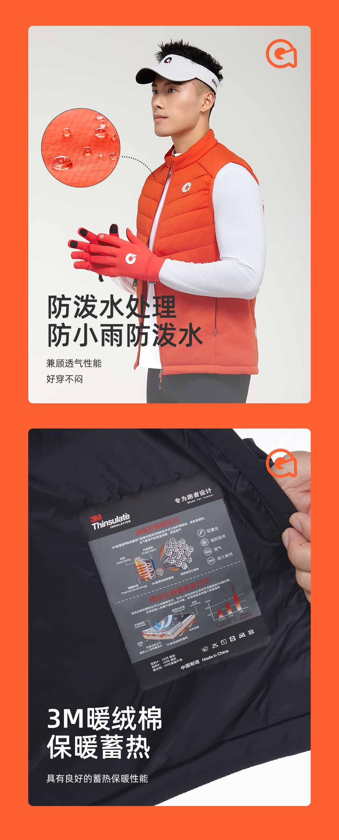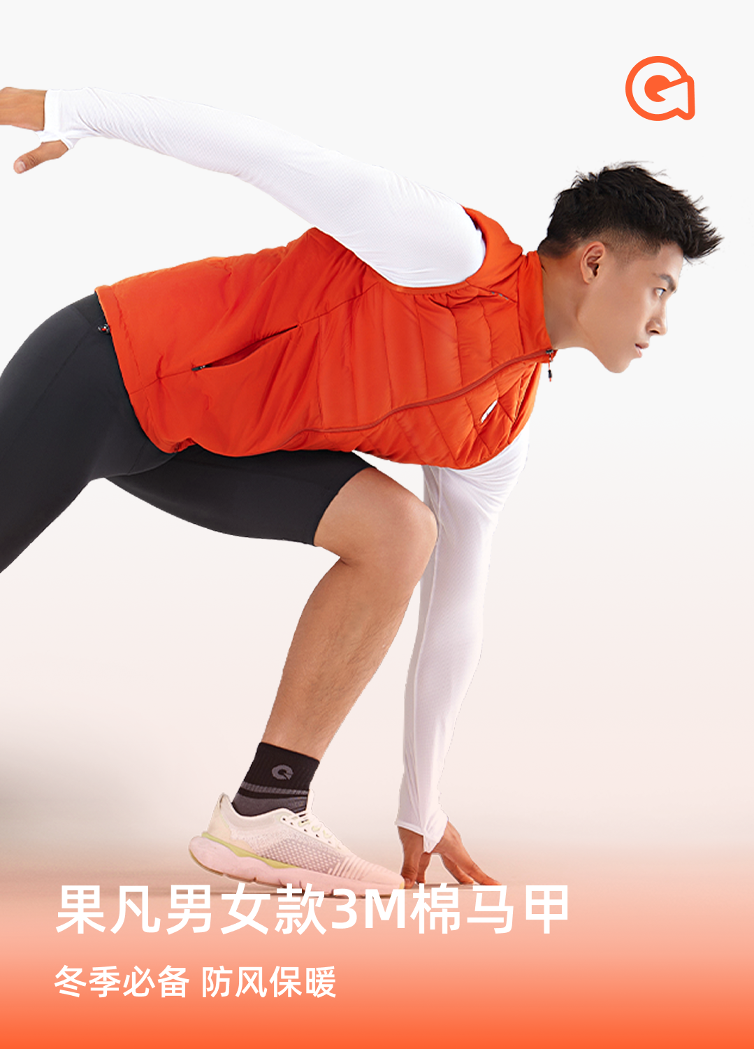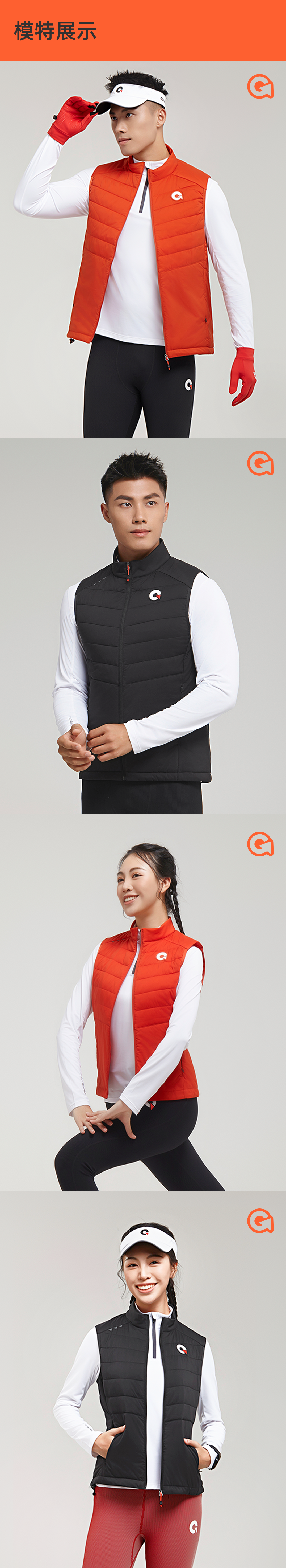 果凡男女款轻薄防风跑步运动棉马甲GVB21186/GVB22187