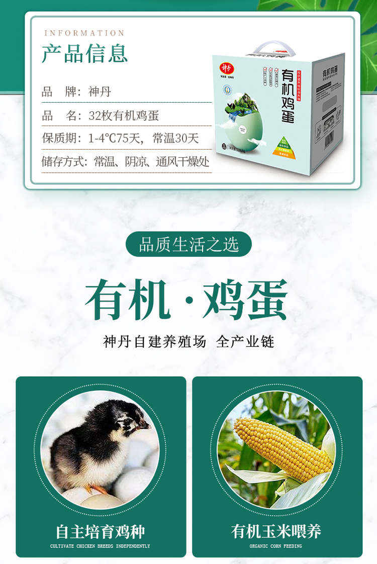 【孝感】神丹散养有机鸡蛋32枚礼盒装