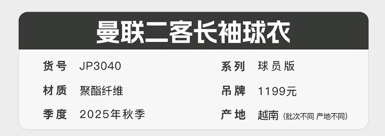 小李子:阿迪达斯25-26赛季曼联球员版第二客场长袖比赛球衣JP3040