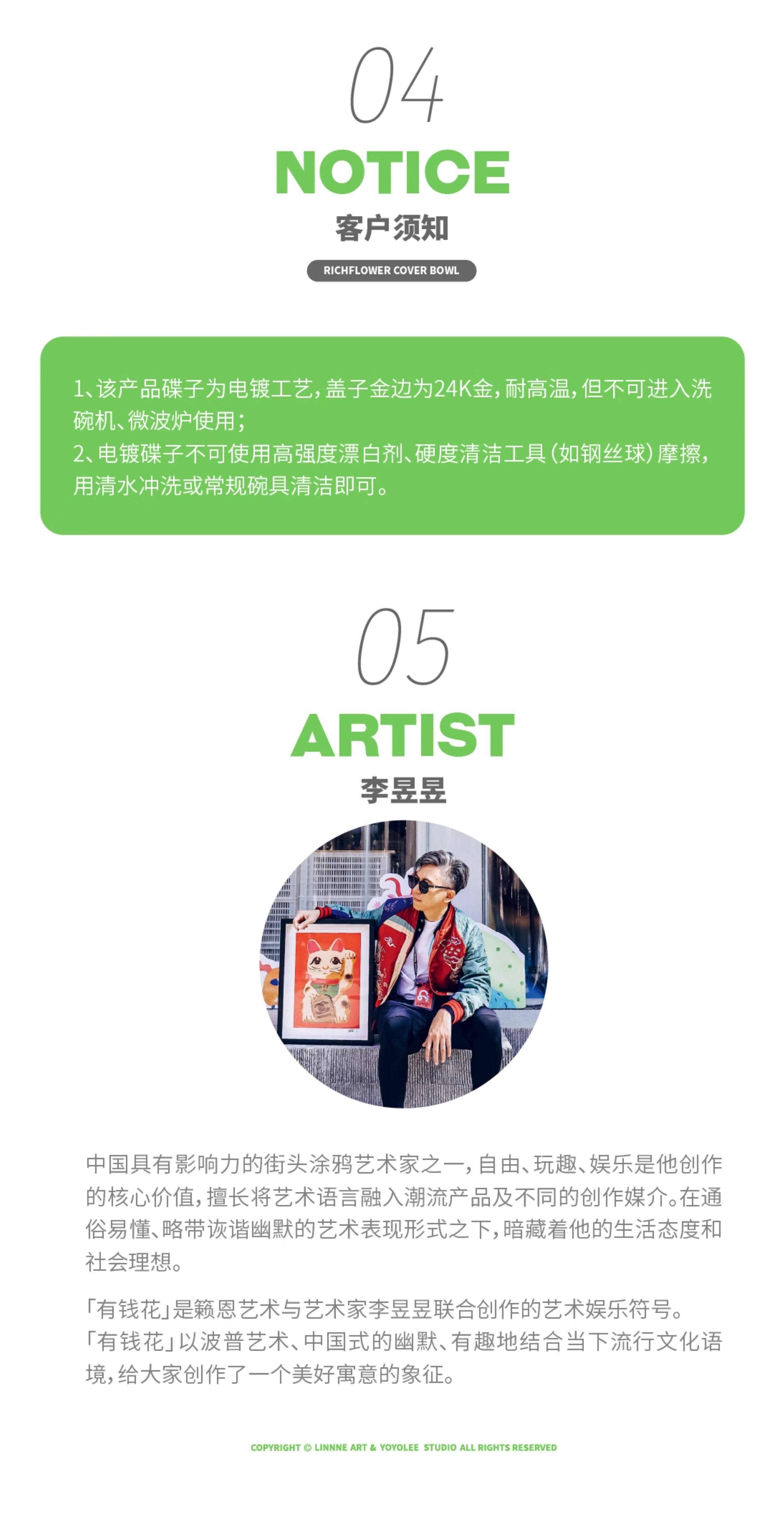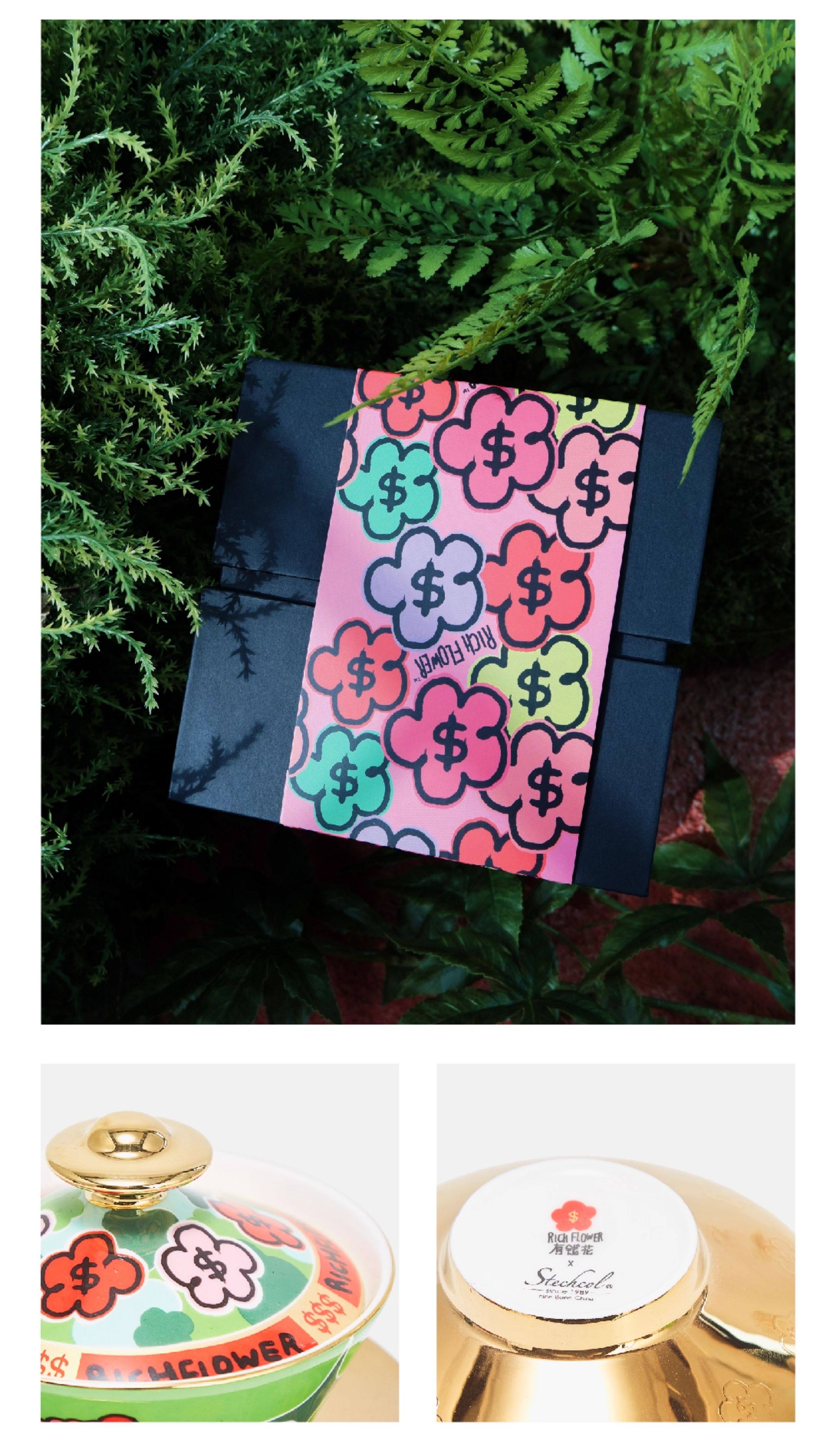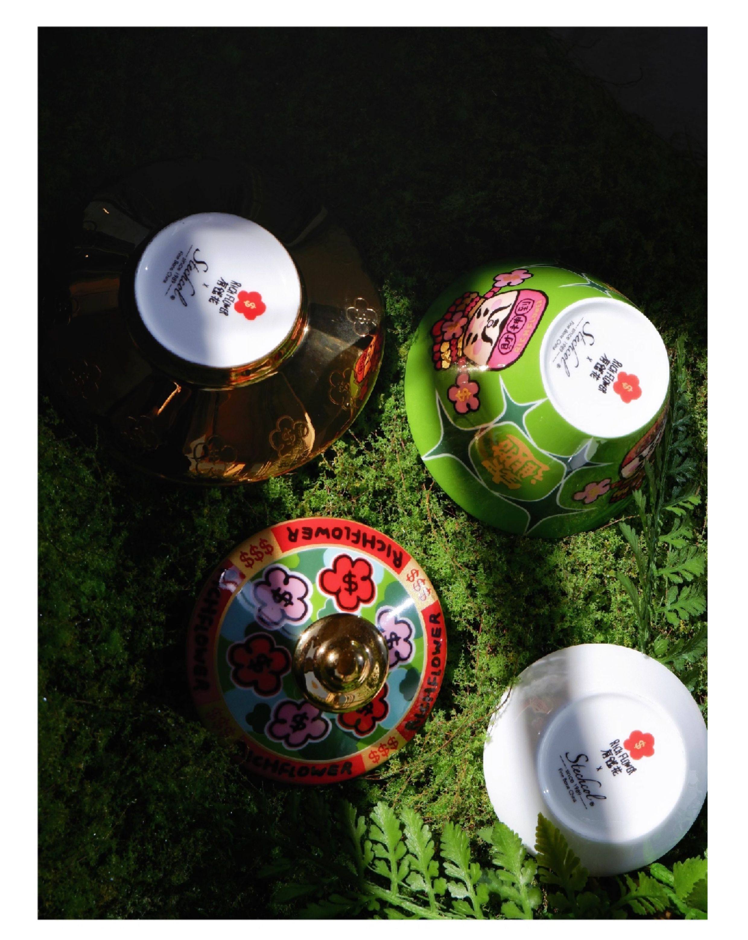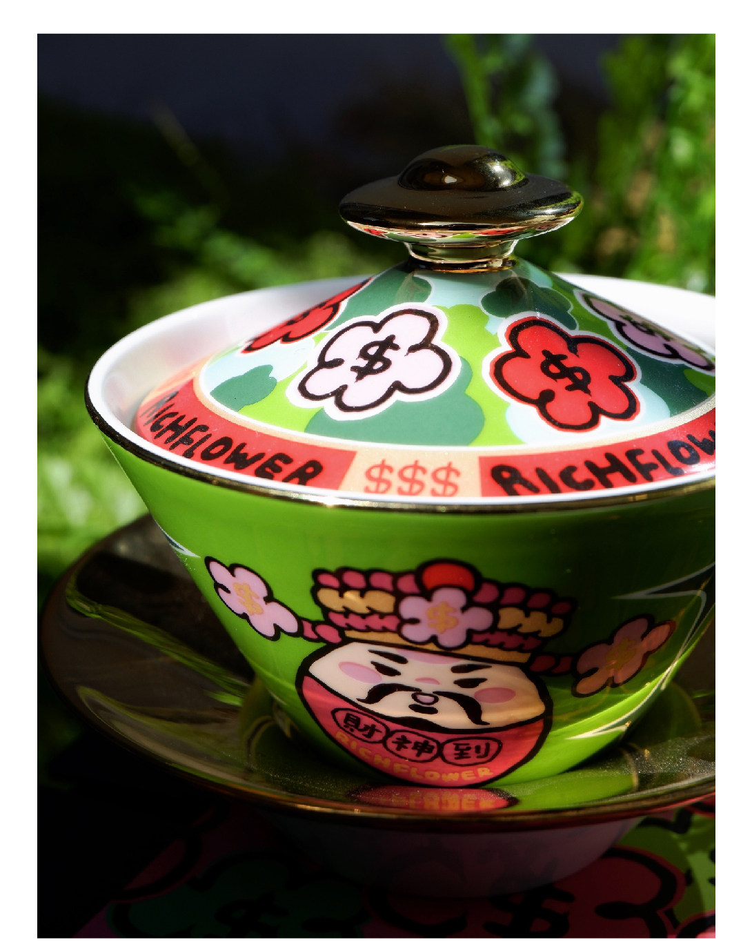 RICH FLOWER 有钱花 三才盖碗 创意防烫功夫泡茶碗礼品四件套