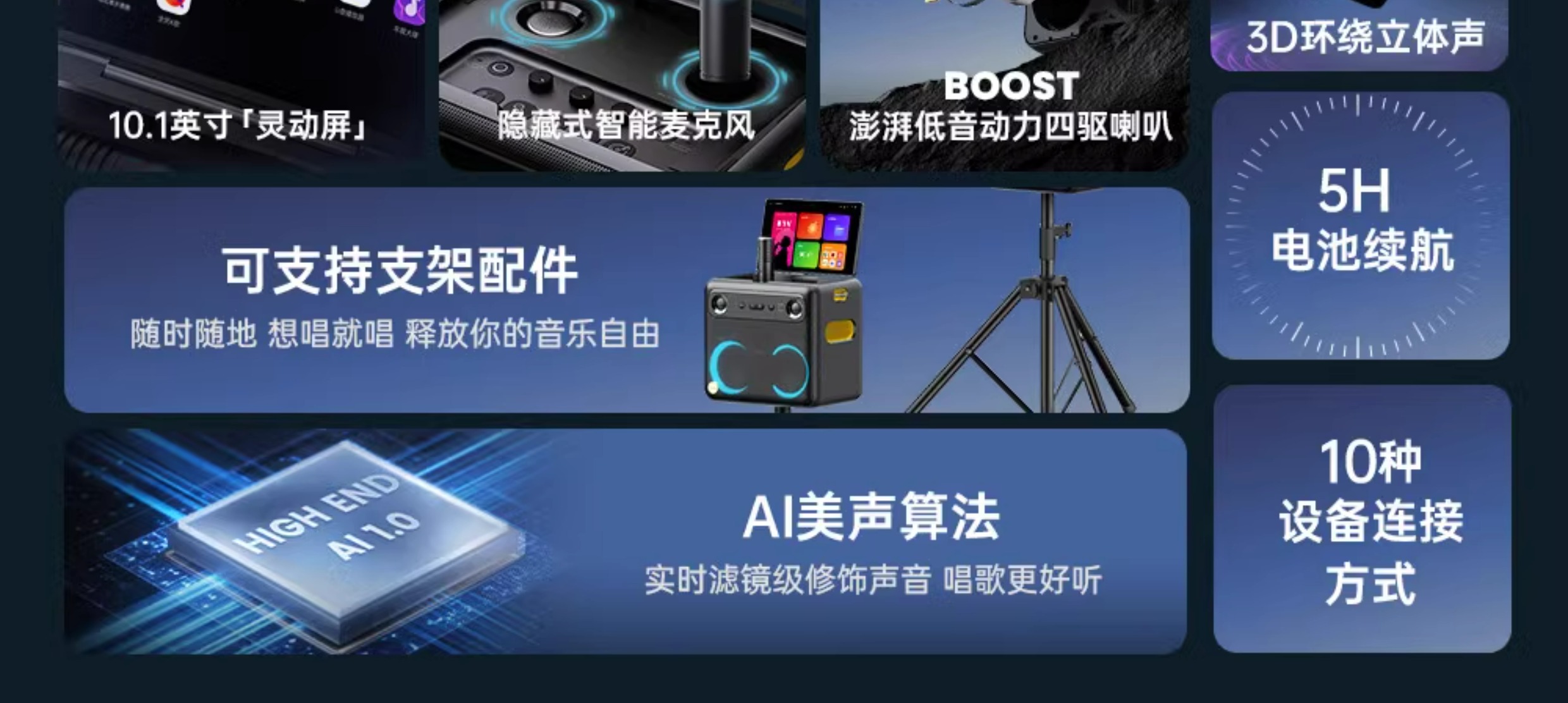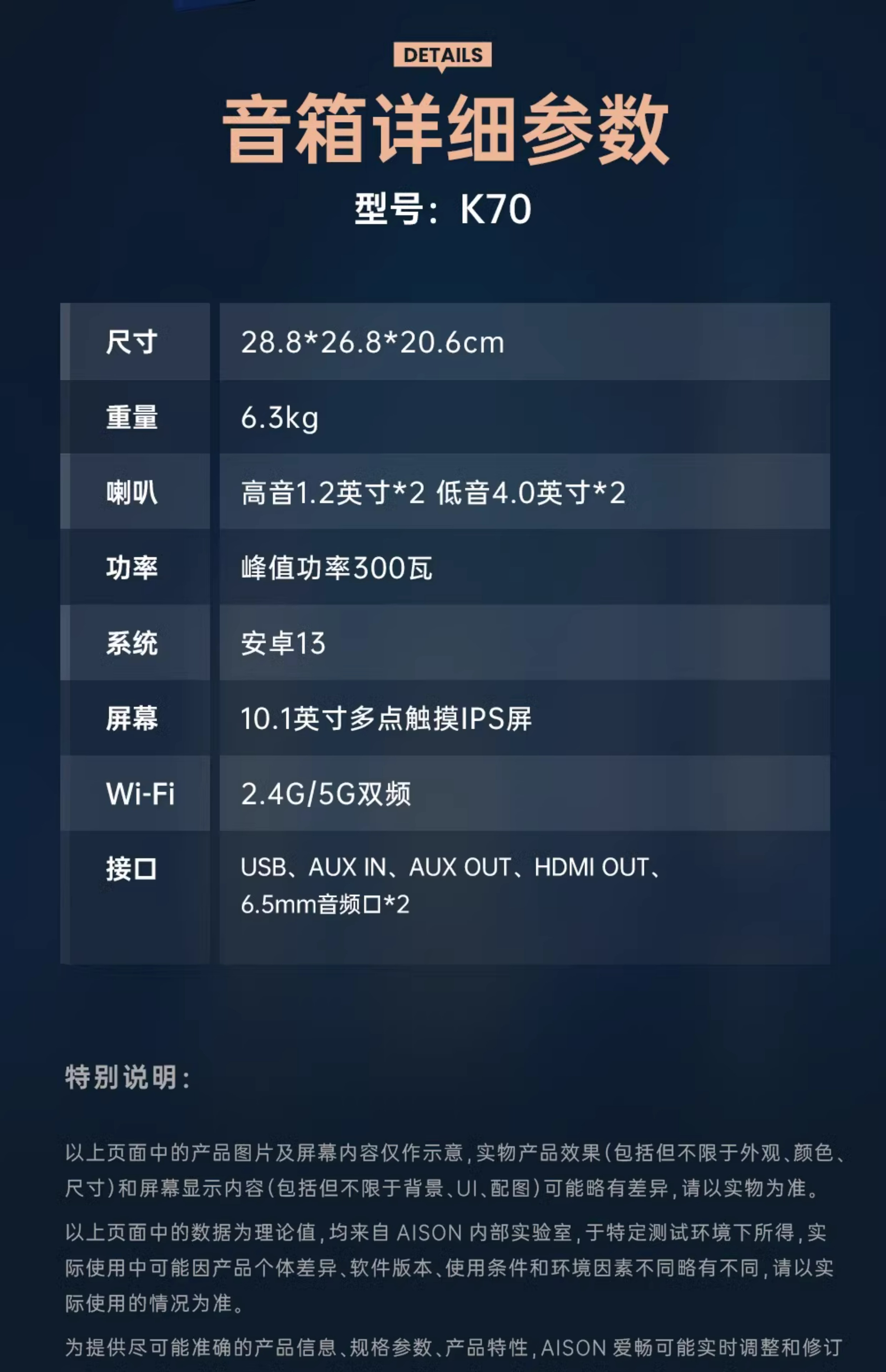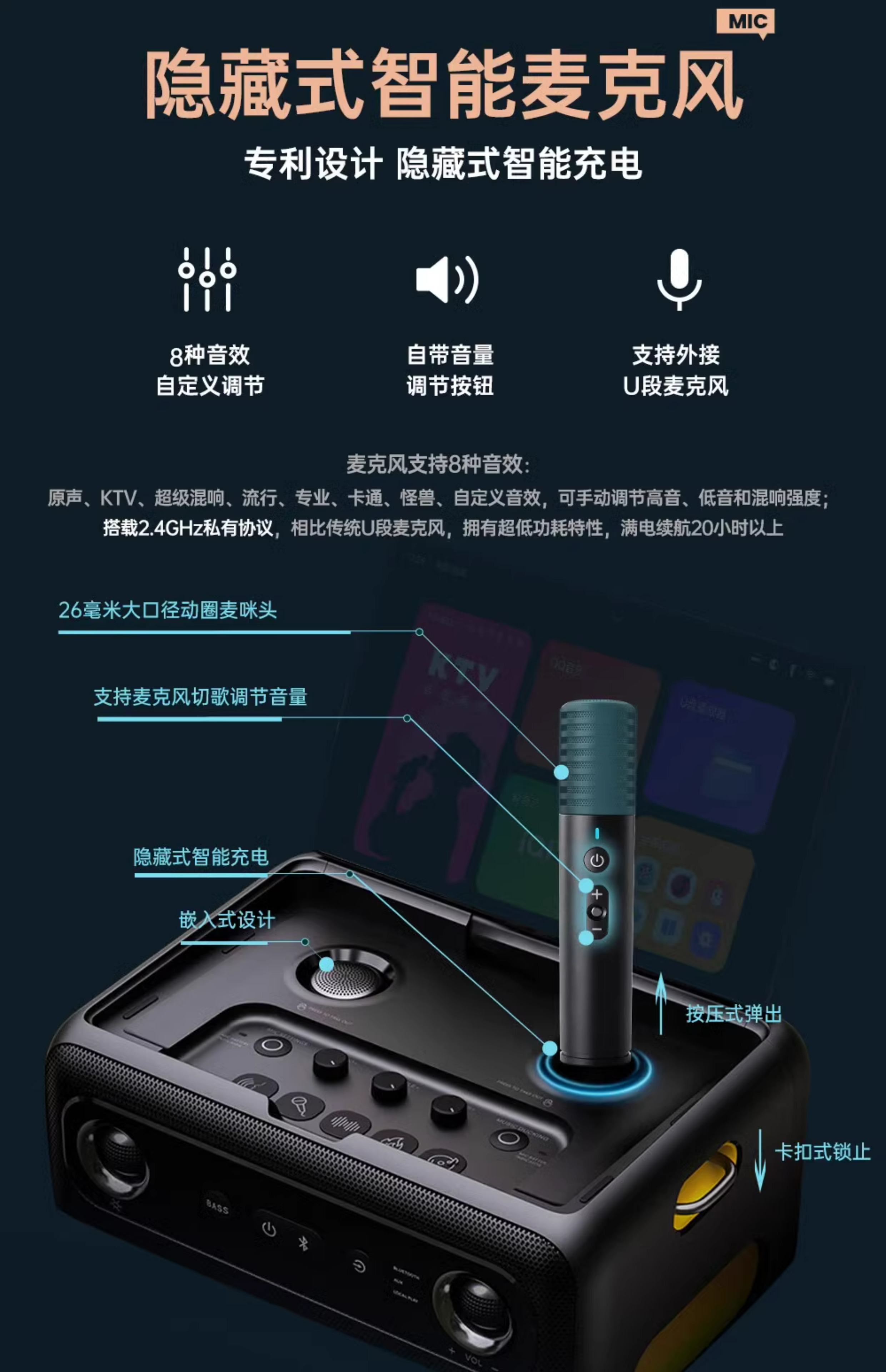 爱畅 K歌音箱 K70 户外便携式点歌机家庭ktv点歌系统k歌音响套装长续航