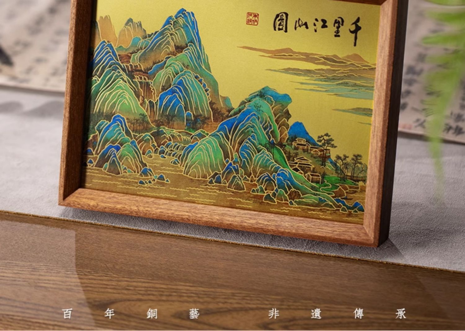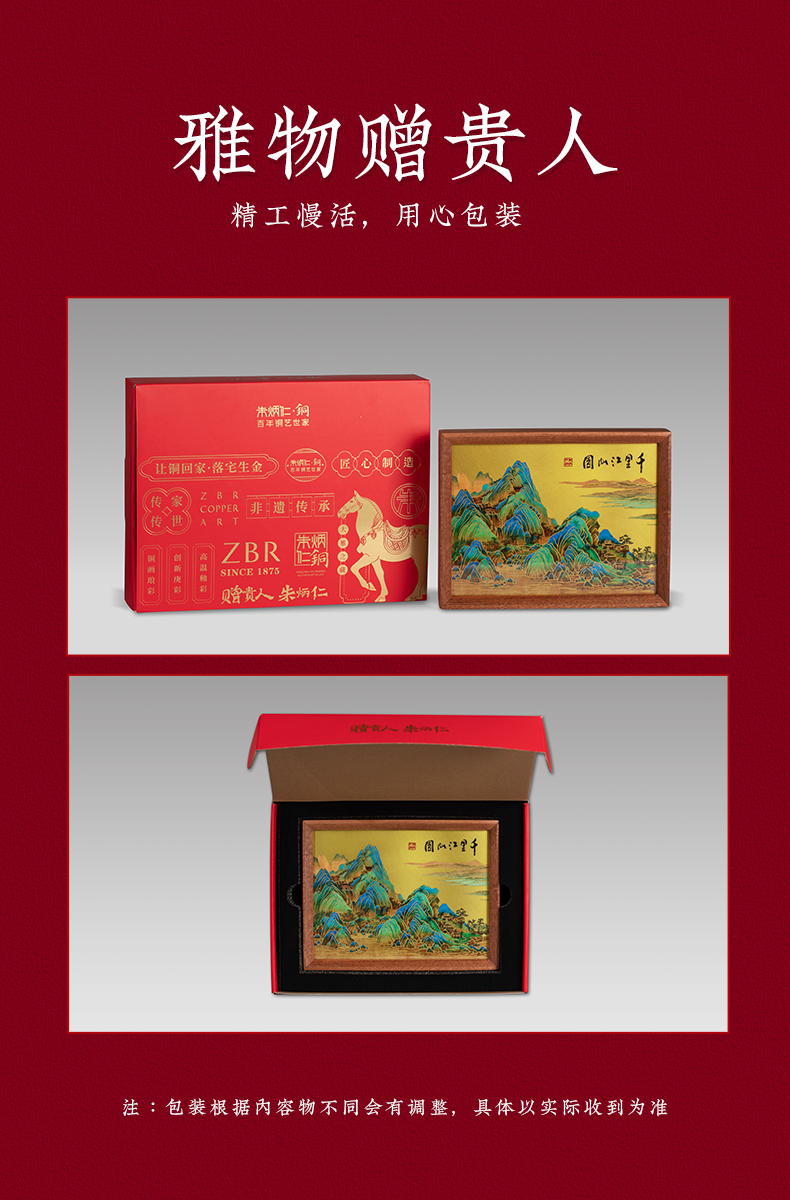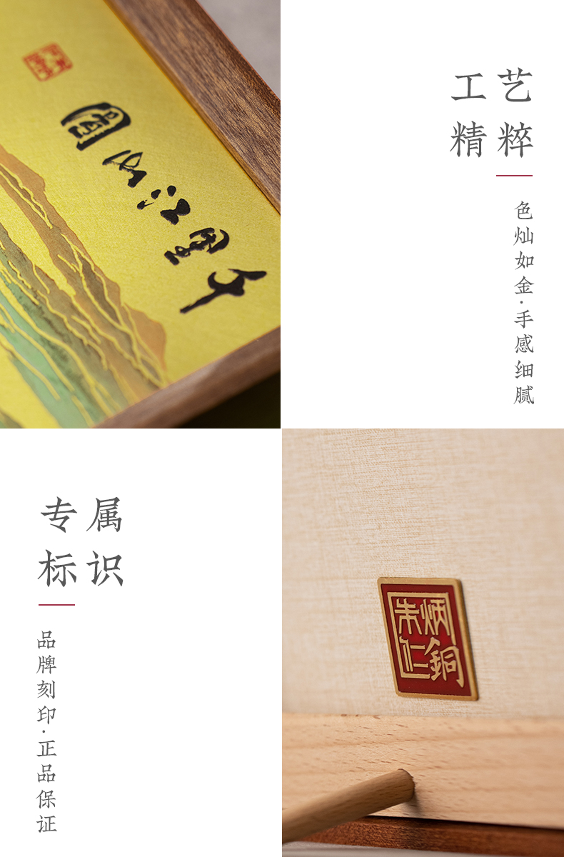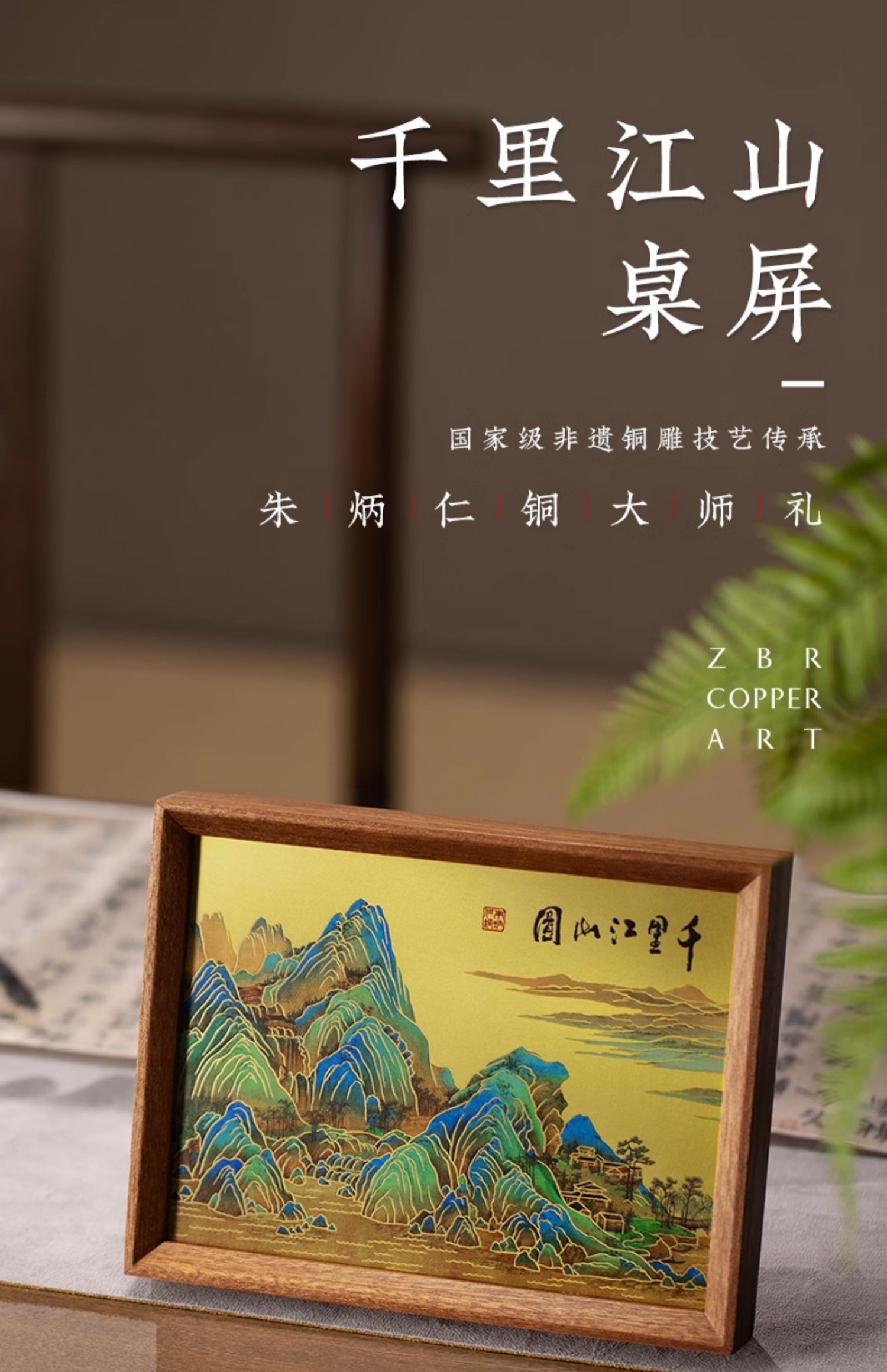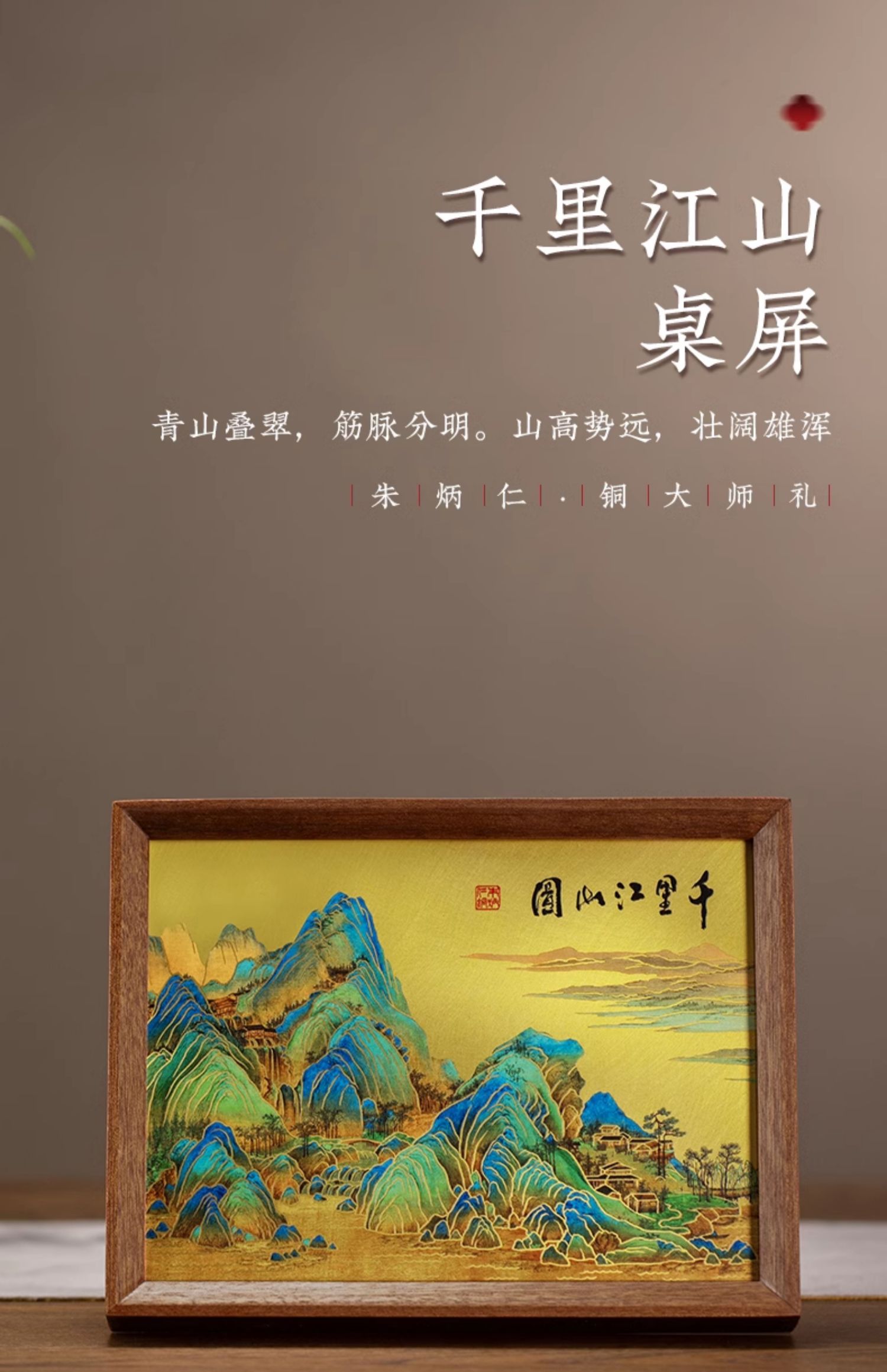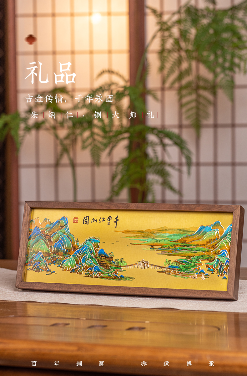 朱炳仁铜 千里江山桌屏 8寸 书房办公桌面装饰画摆台礼物商务生日礼