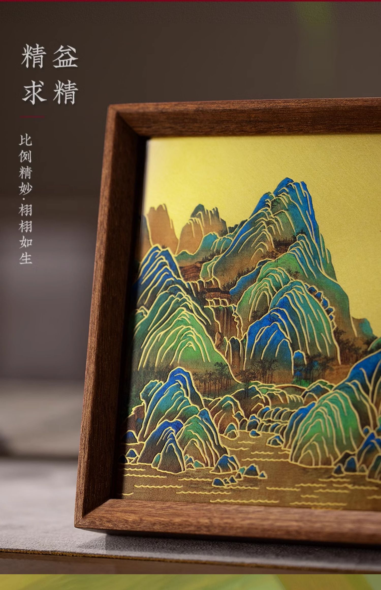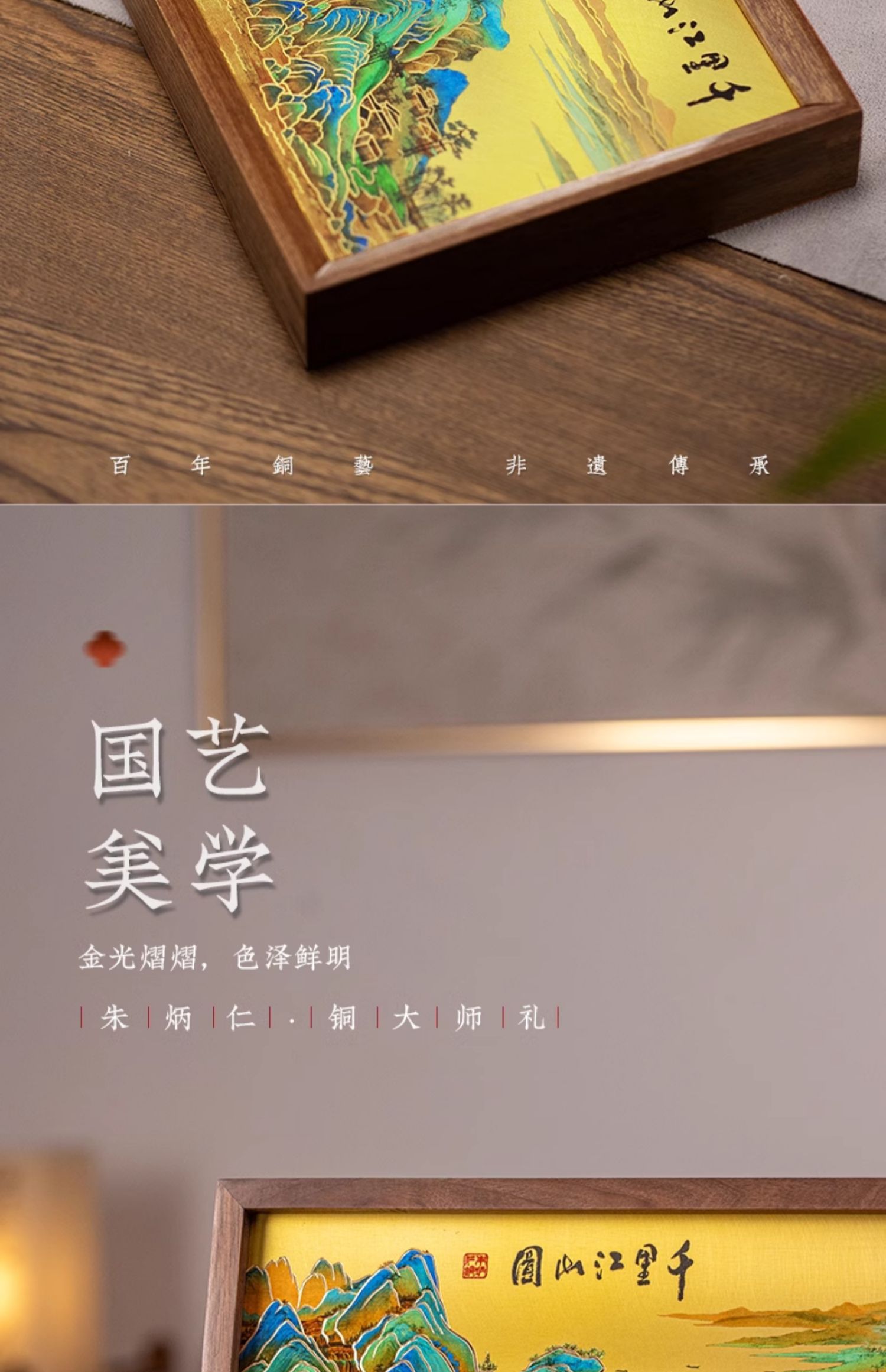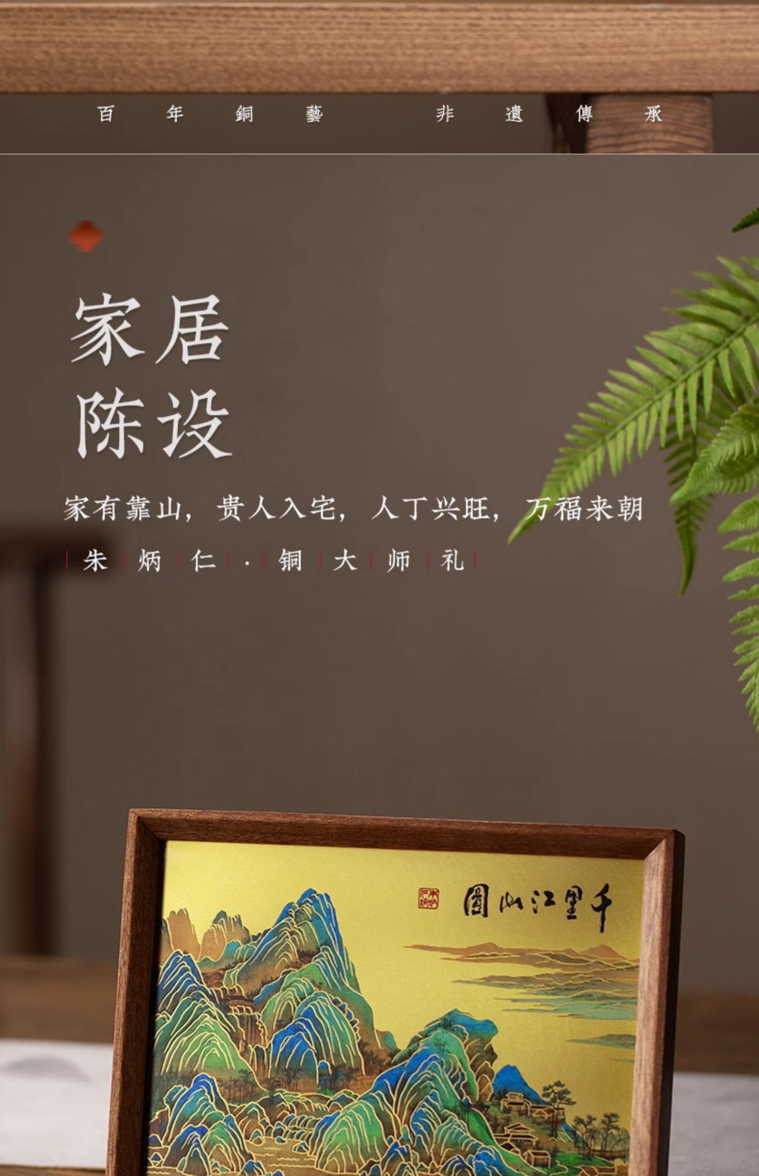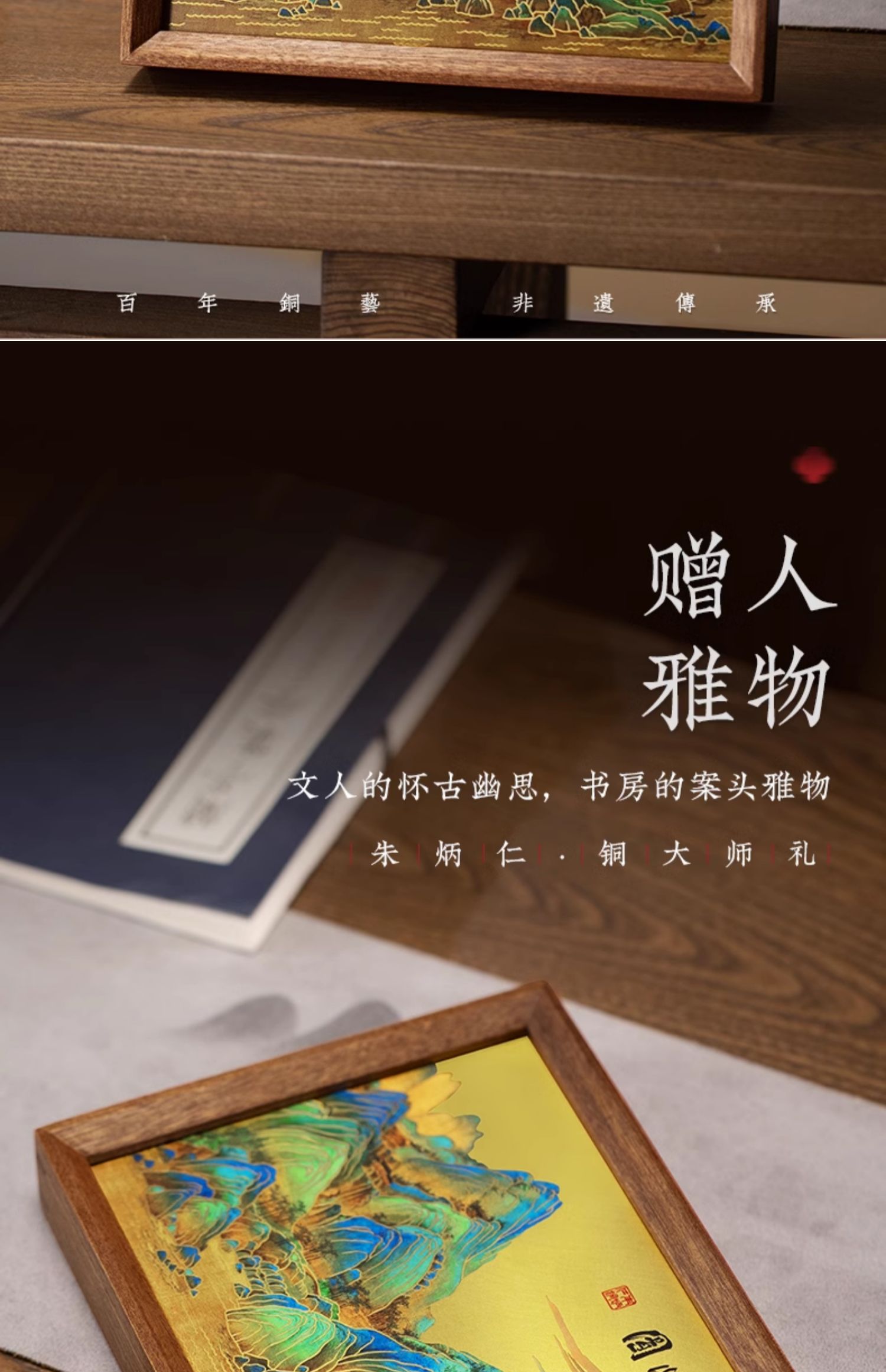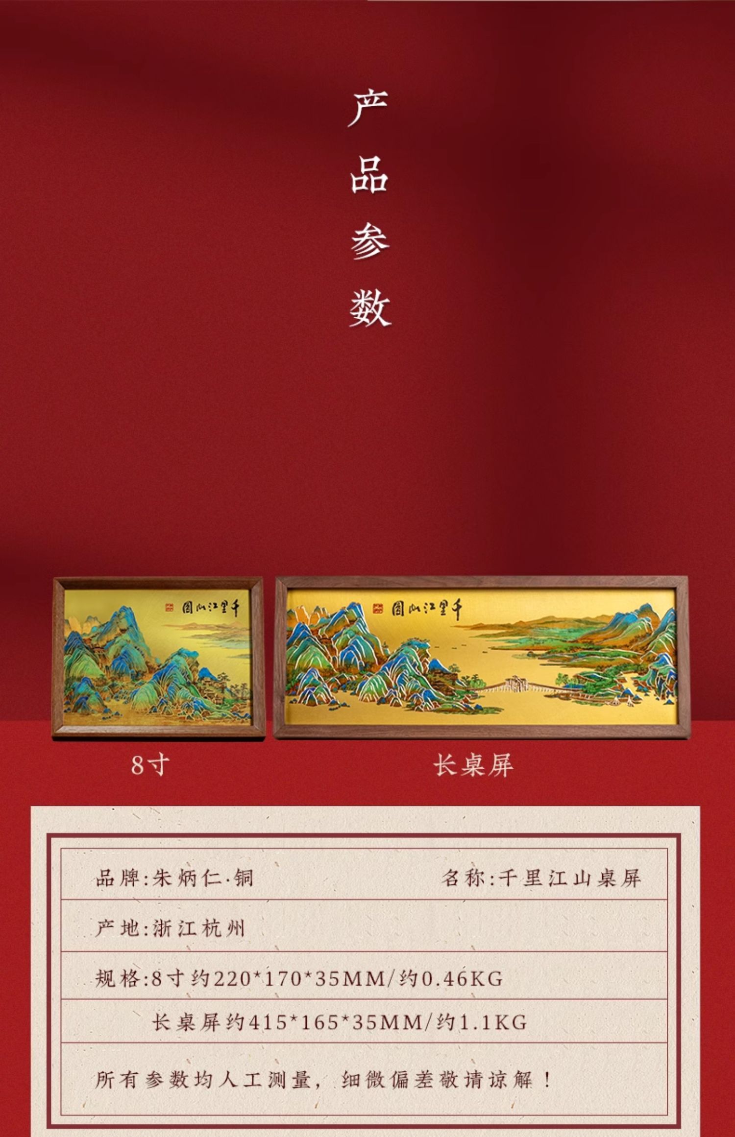 朱炳仁铜 千里江山桌屏 8寸 书房办公桌面装饰画摆台礼物商务生日礼