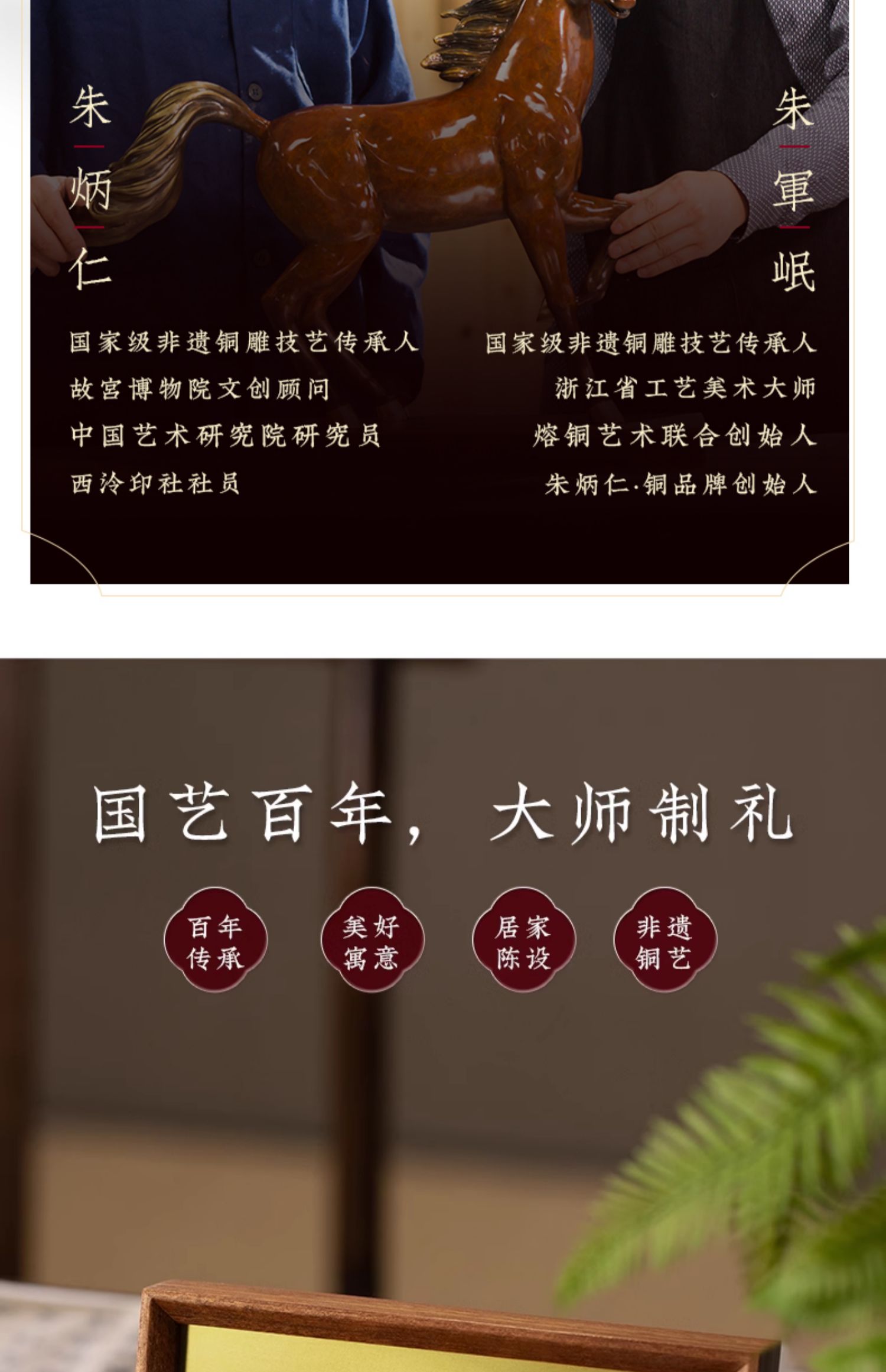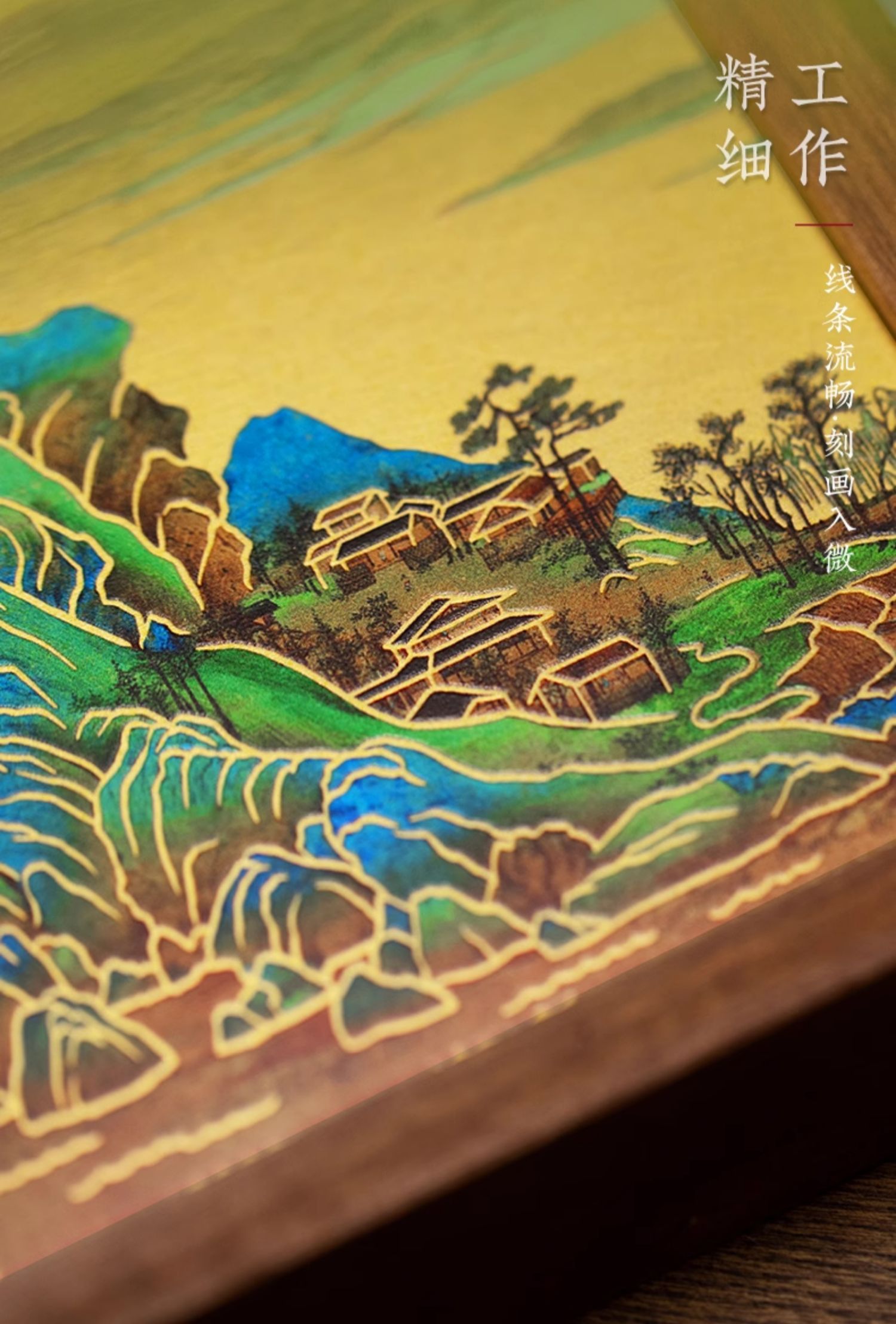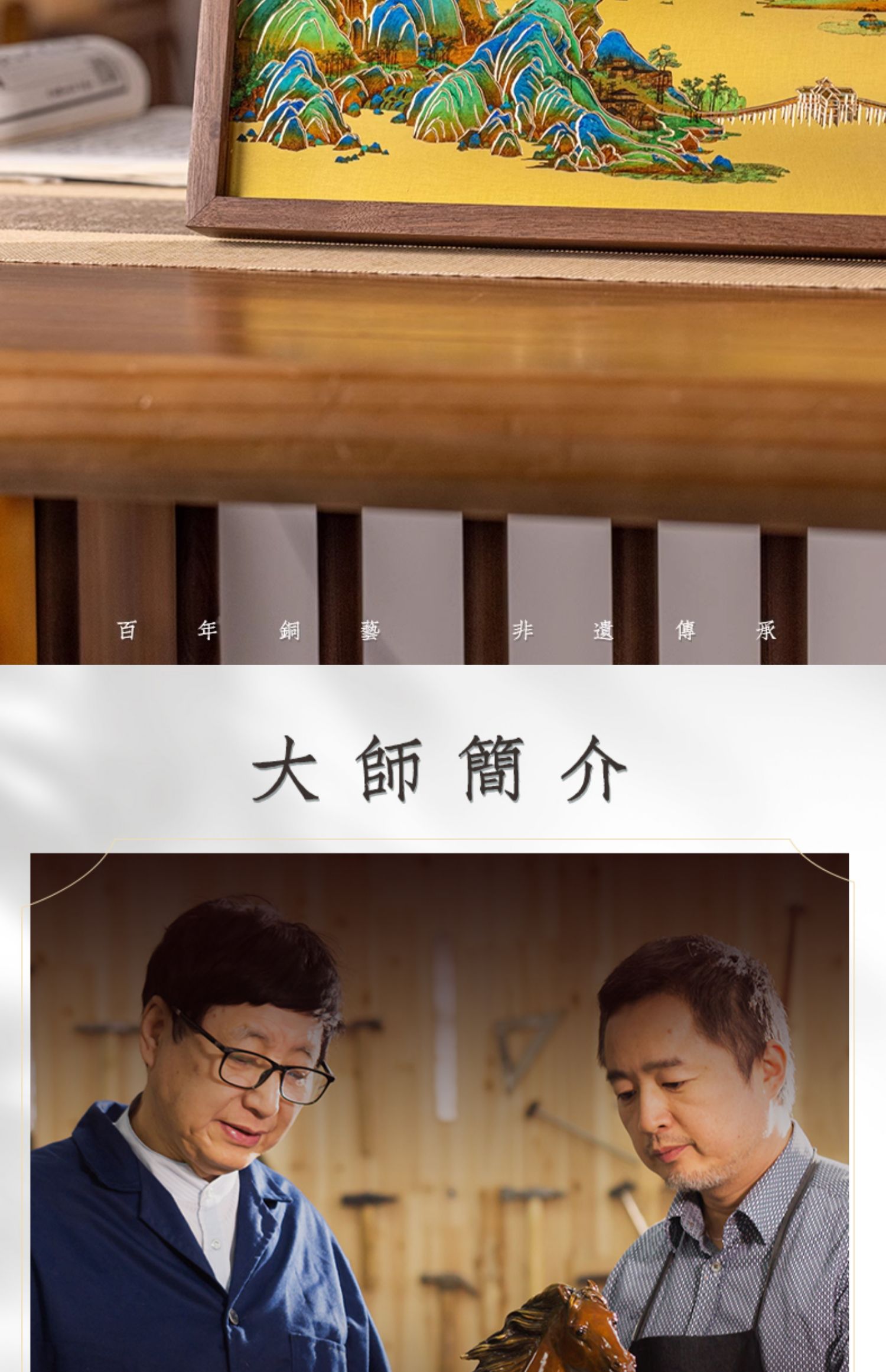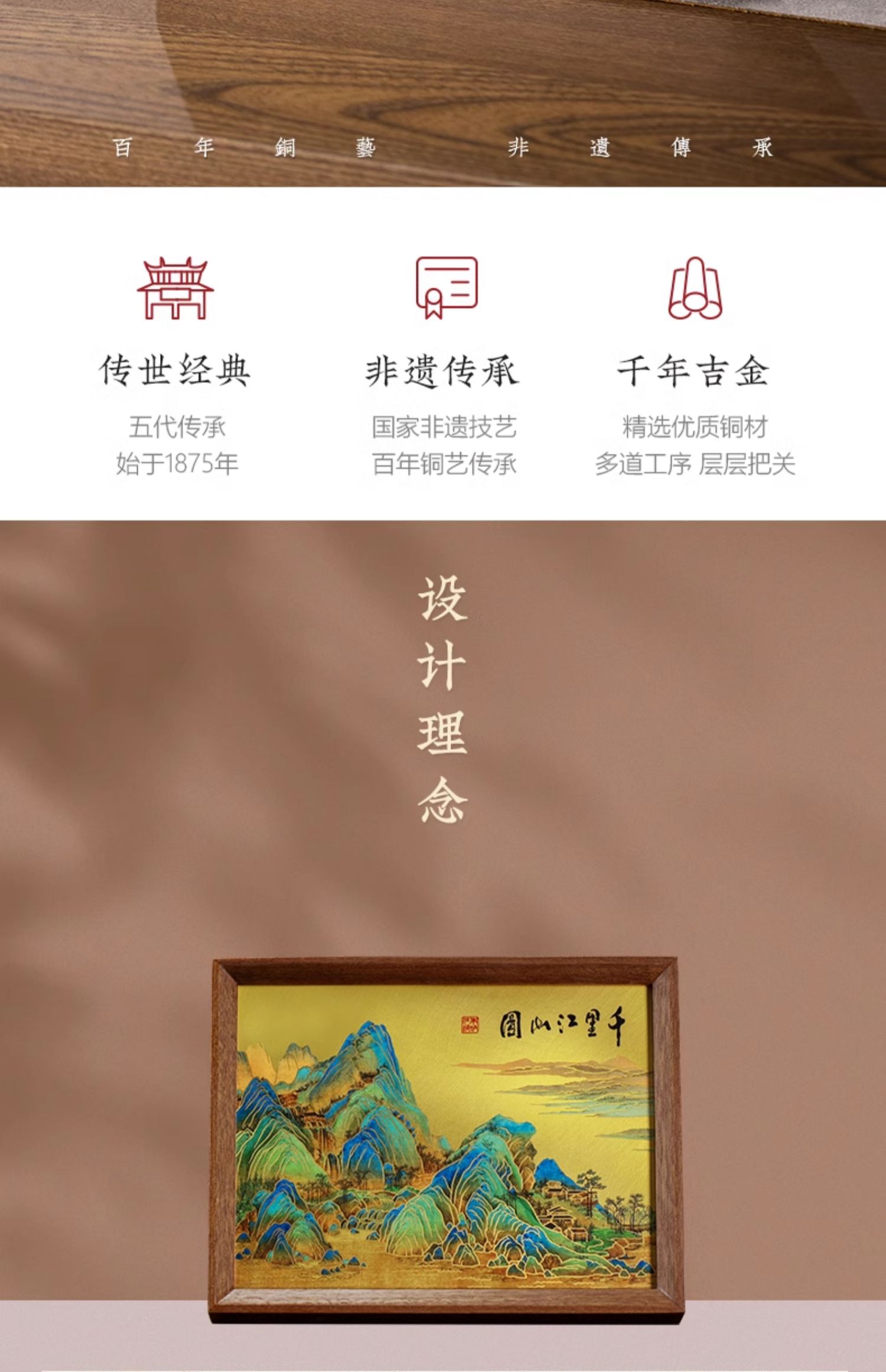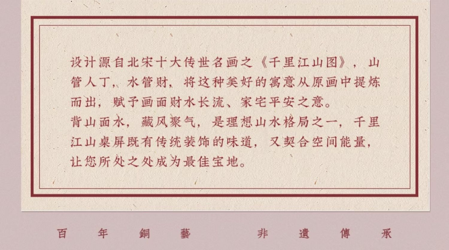 朱炳仁铜 千里江山桌屏 8寸 书房办公桌面装饰画摆台礼物商务生日礼