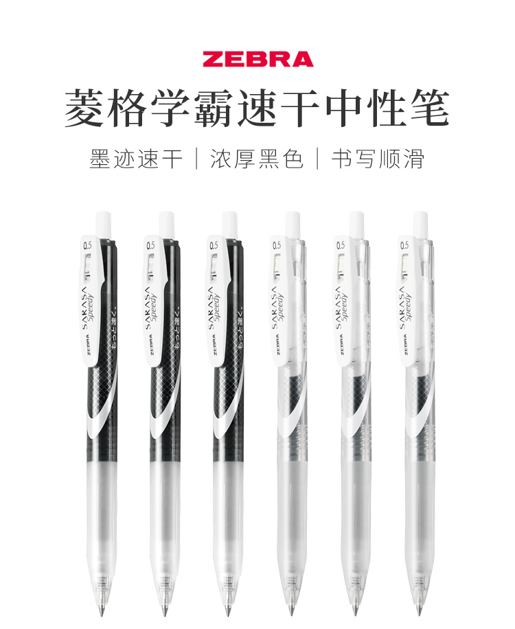 斑马中性笔JJZ33-C真速干简约0.5签字笔软握胶黑色学生考试按动水笔