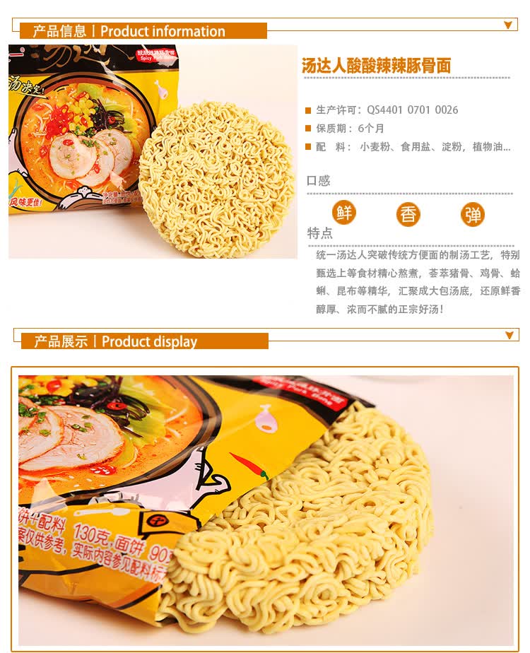 统一 汤达人 酸酸辣辣豚骨面130g/袋