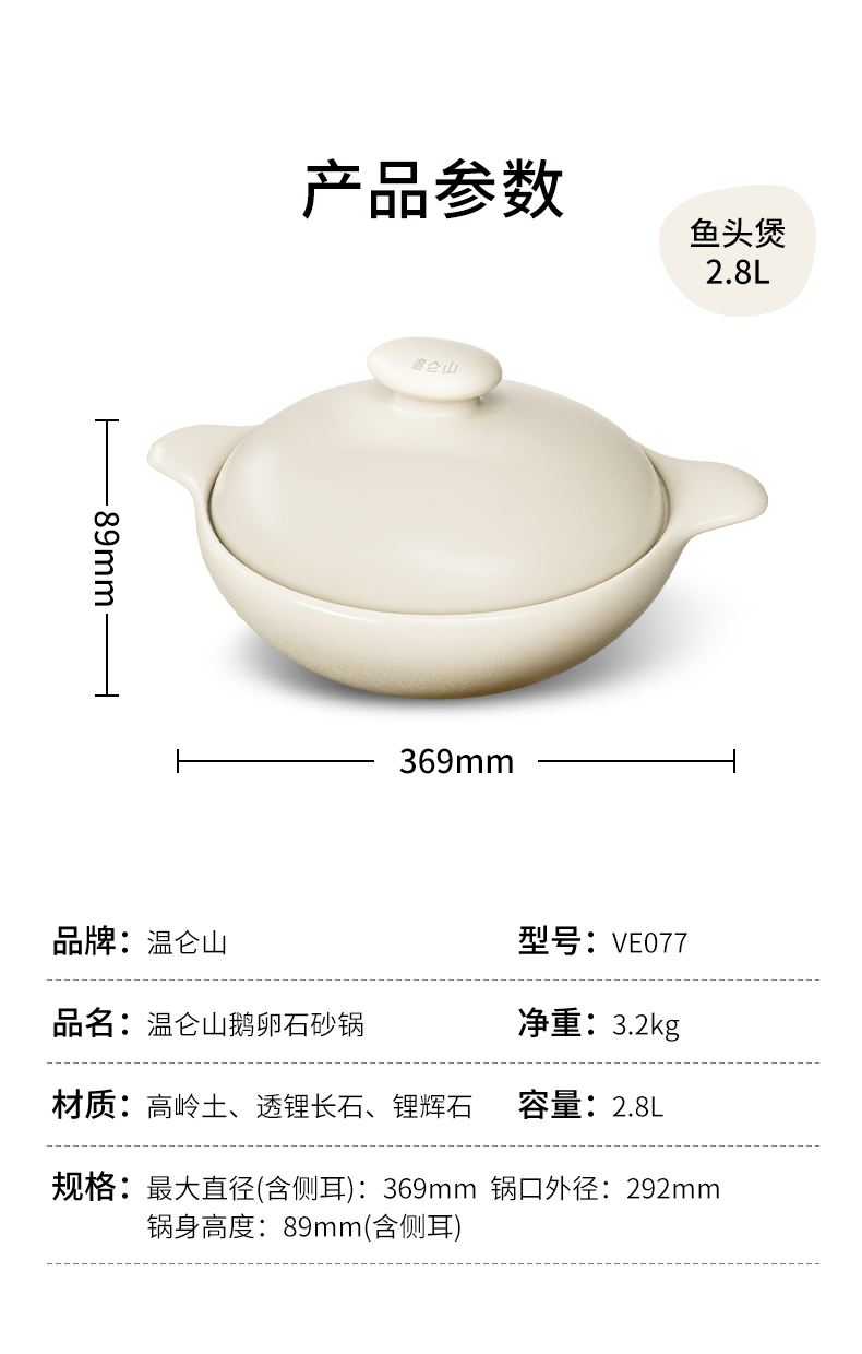Velosan温仑山鹅卵石砂锅2.8L/4.5L