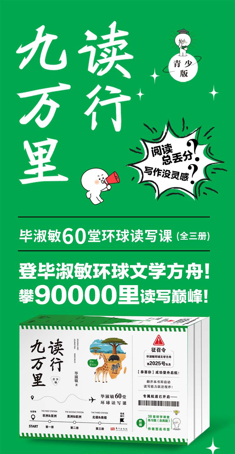 《读行九万里:毕淑敏60堂环球读写课(青少版)》全3册 9-18岁 紧跟新课标 跨学科思维 解决成长难题 点亮写作灵感