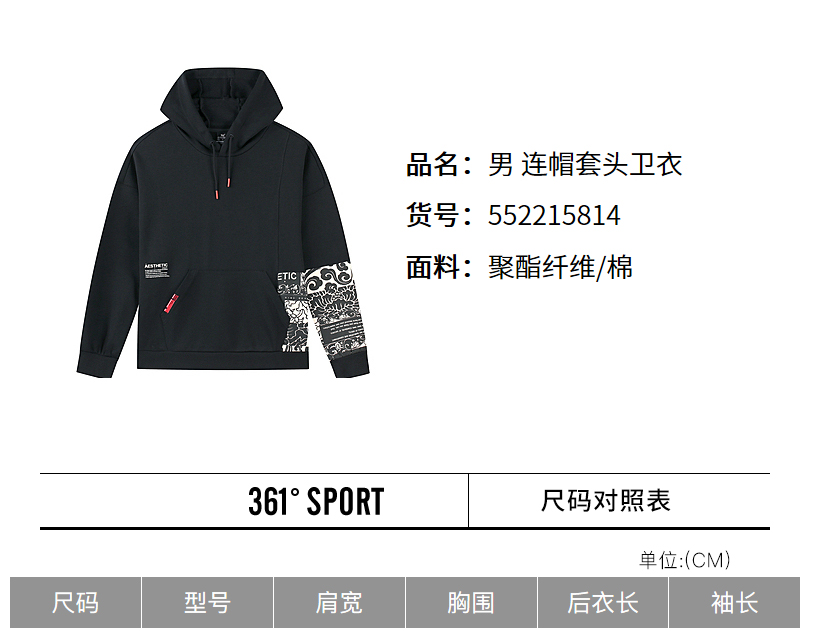 361度运动卫衣男2022春学生连帽套头卫衣长袖休闲宽松上衣552215814