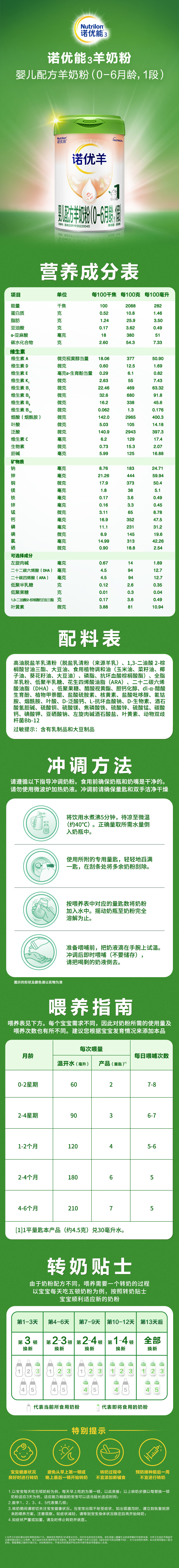 诺优羊婴儿配方羊奶粉(0-6月龄,1段)800g