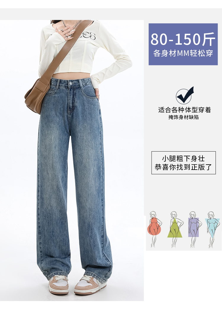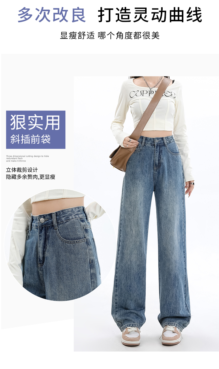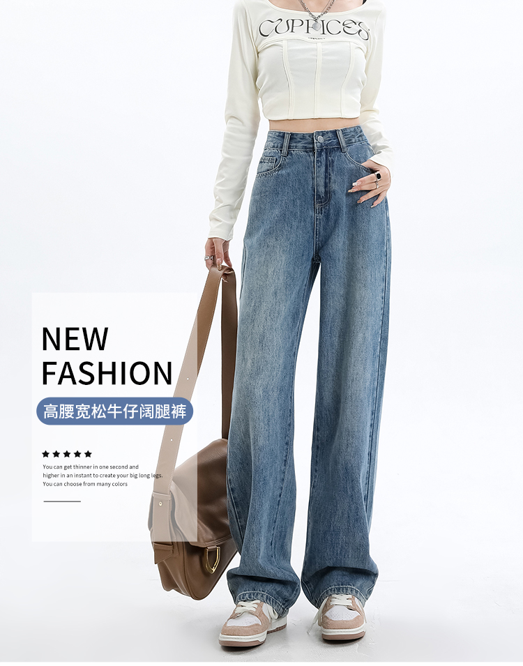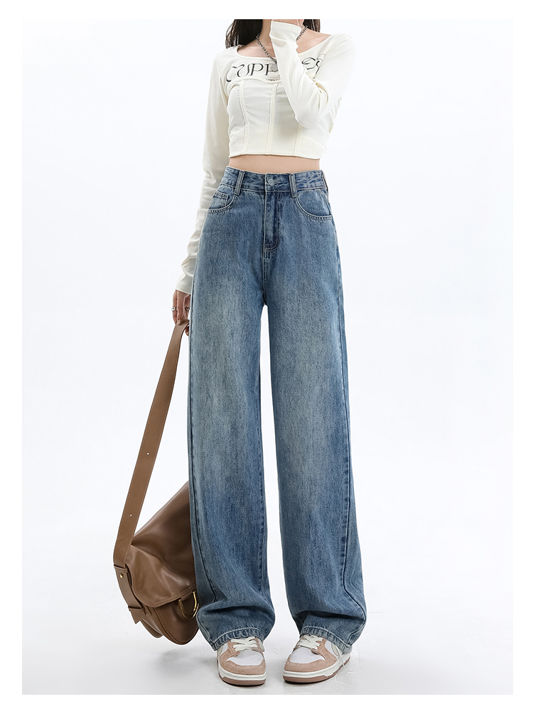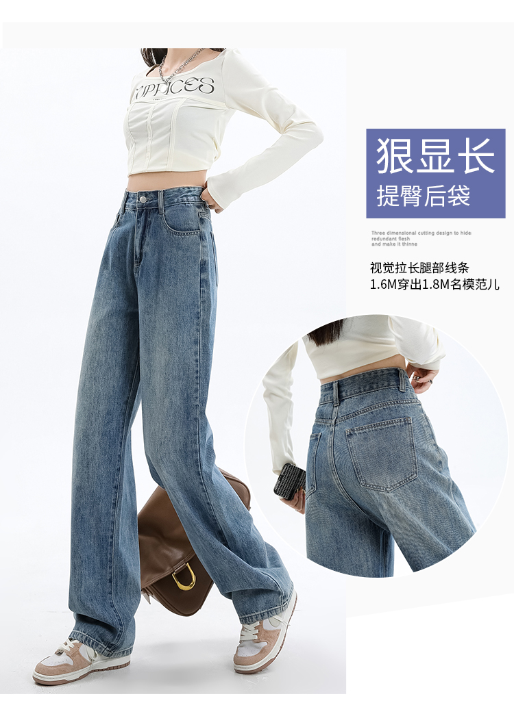 罗蒙女士牛仔裤秋冬加绒保暖阔腿裤女休闲百搭遮肉显瘦长裤