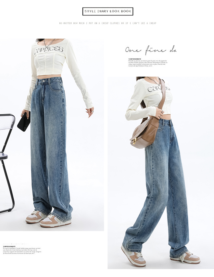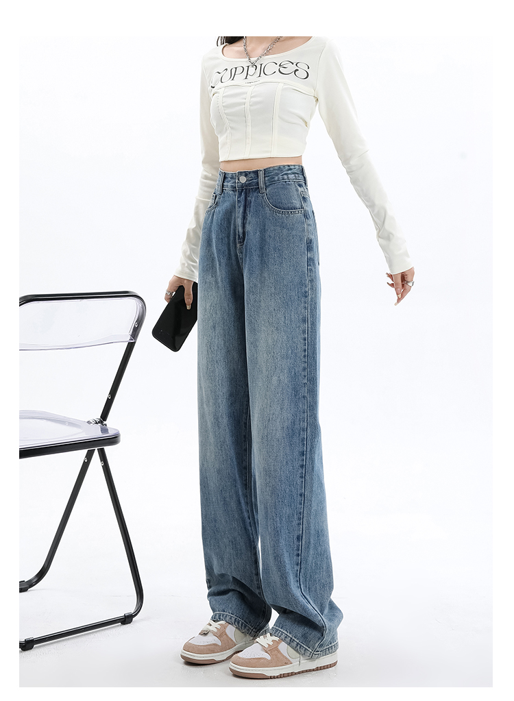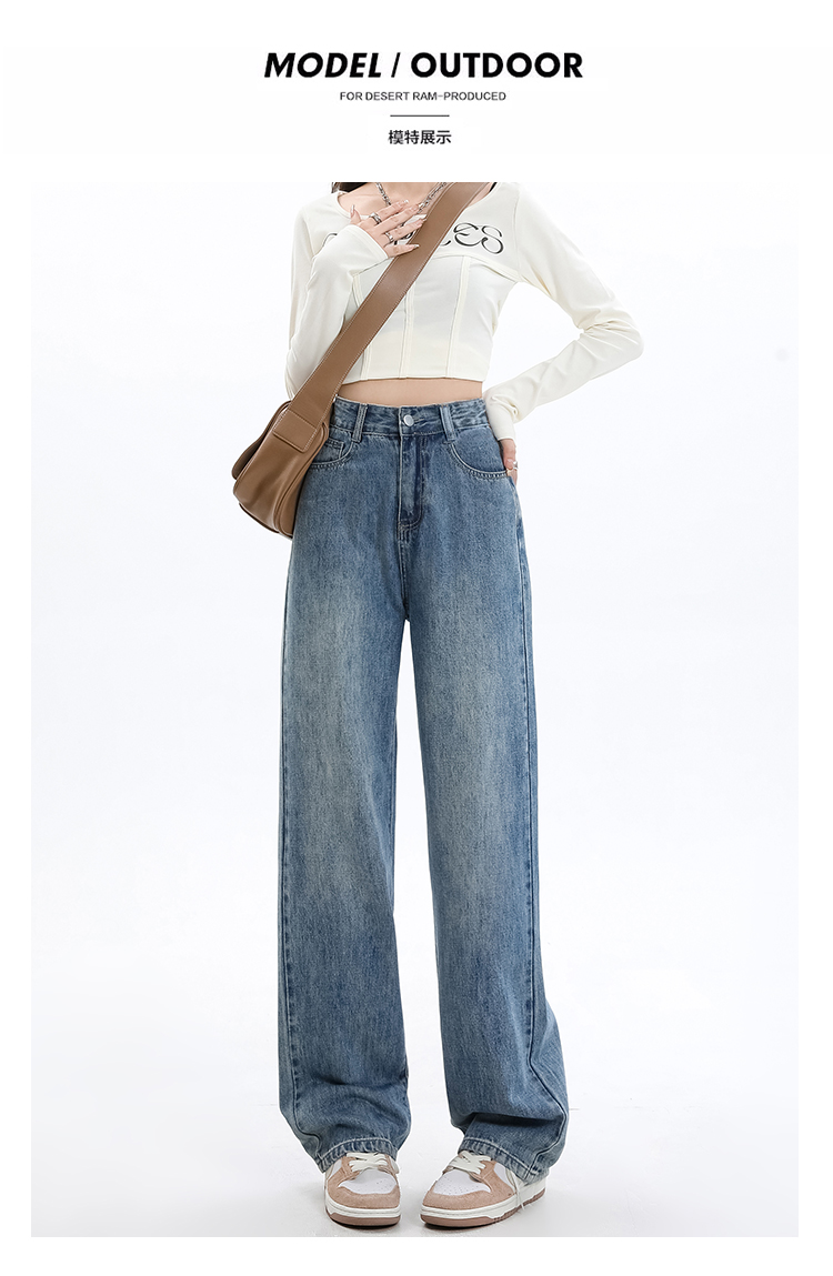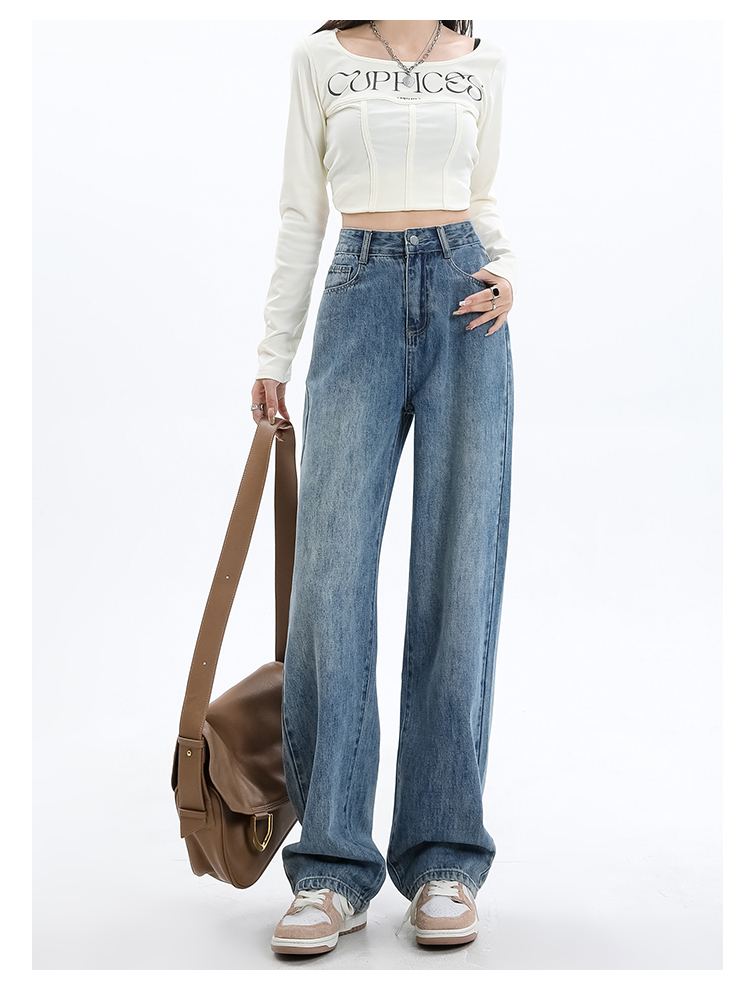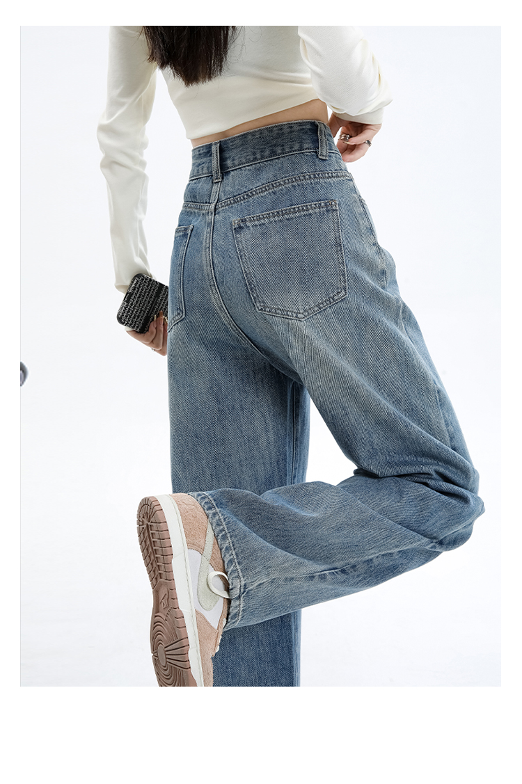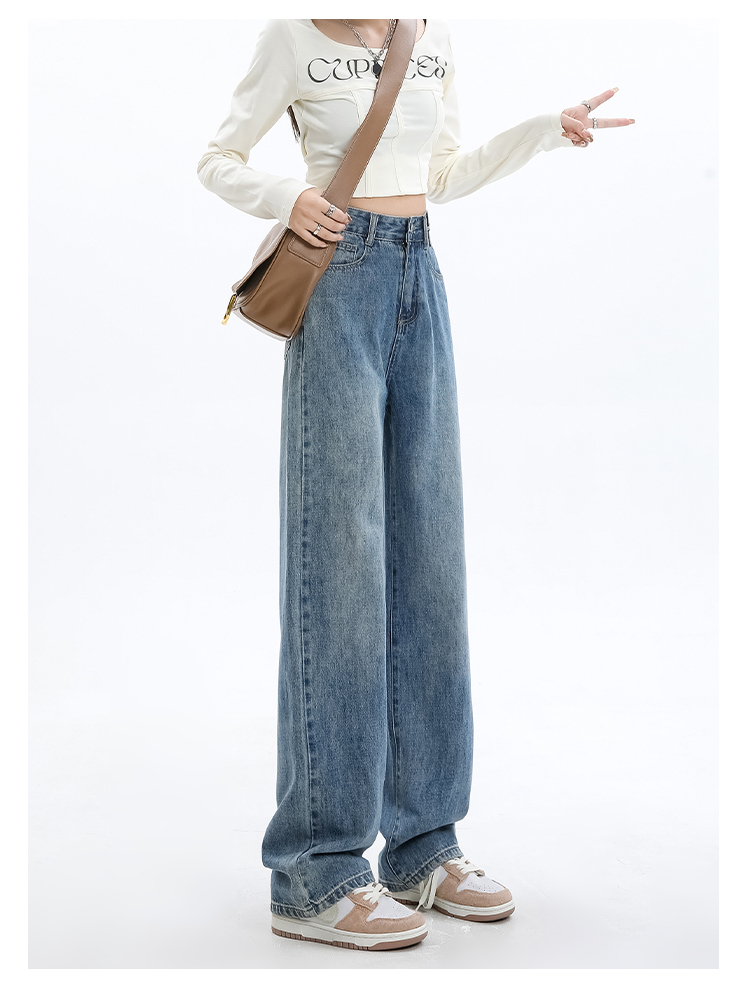 罗蒙女士牛仔裤秋冬加绒保暖阔腿裤女休闲百搭遮肉显瘦长裤