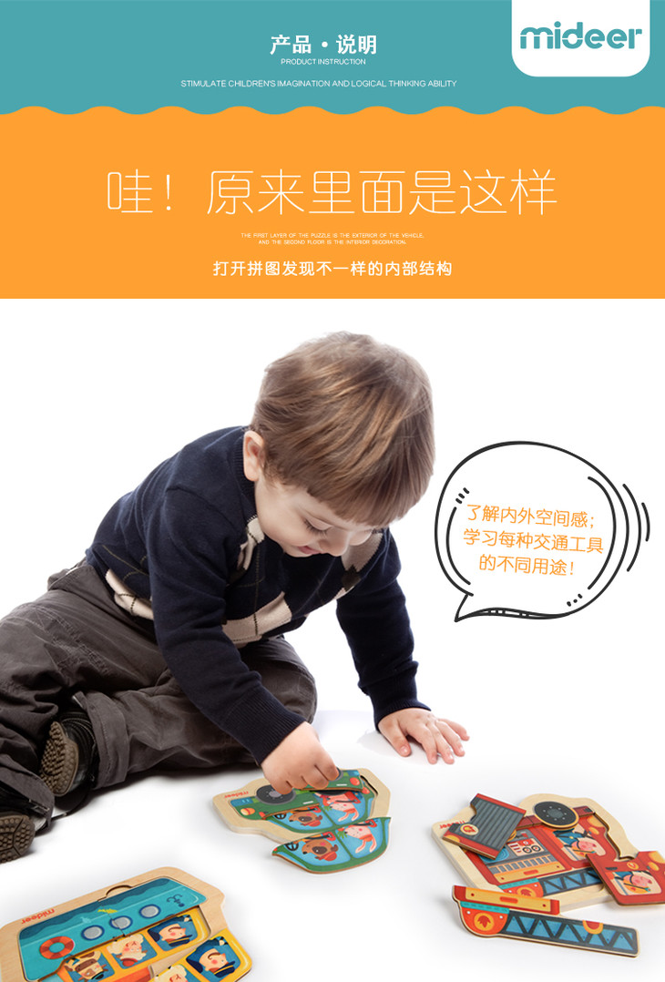 T弥鹿mideer 双层小木片拼图-轮船款