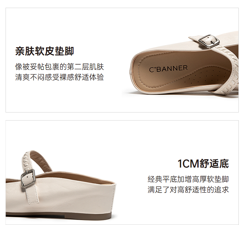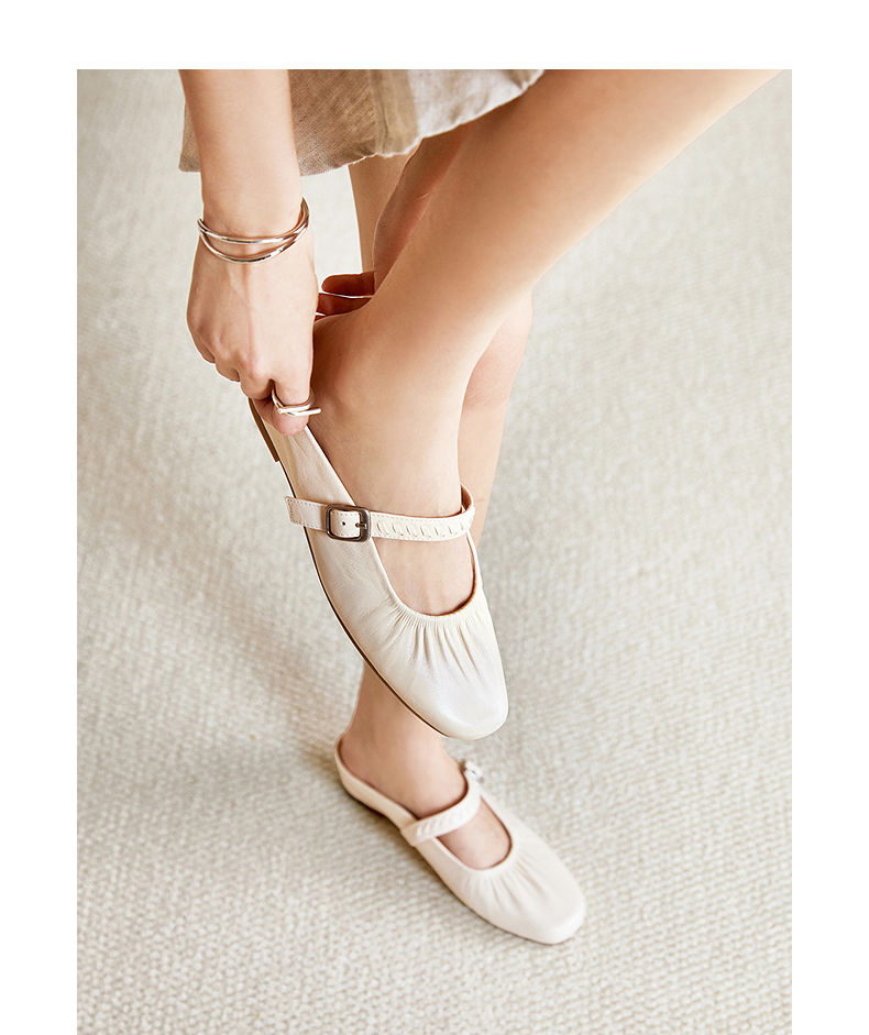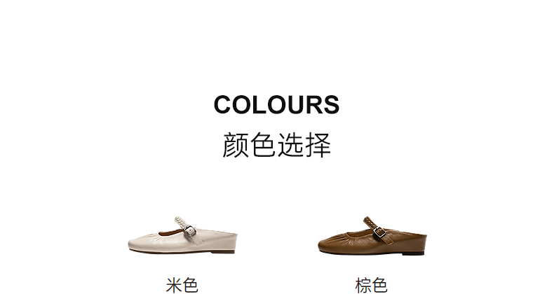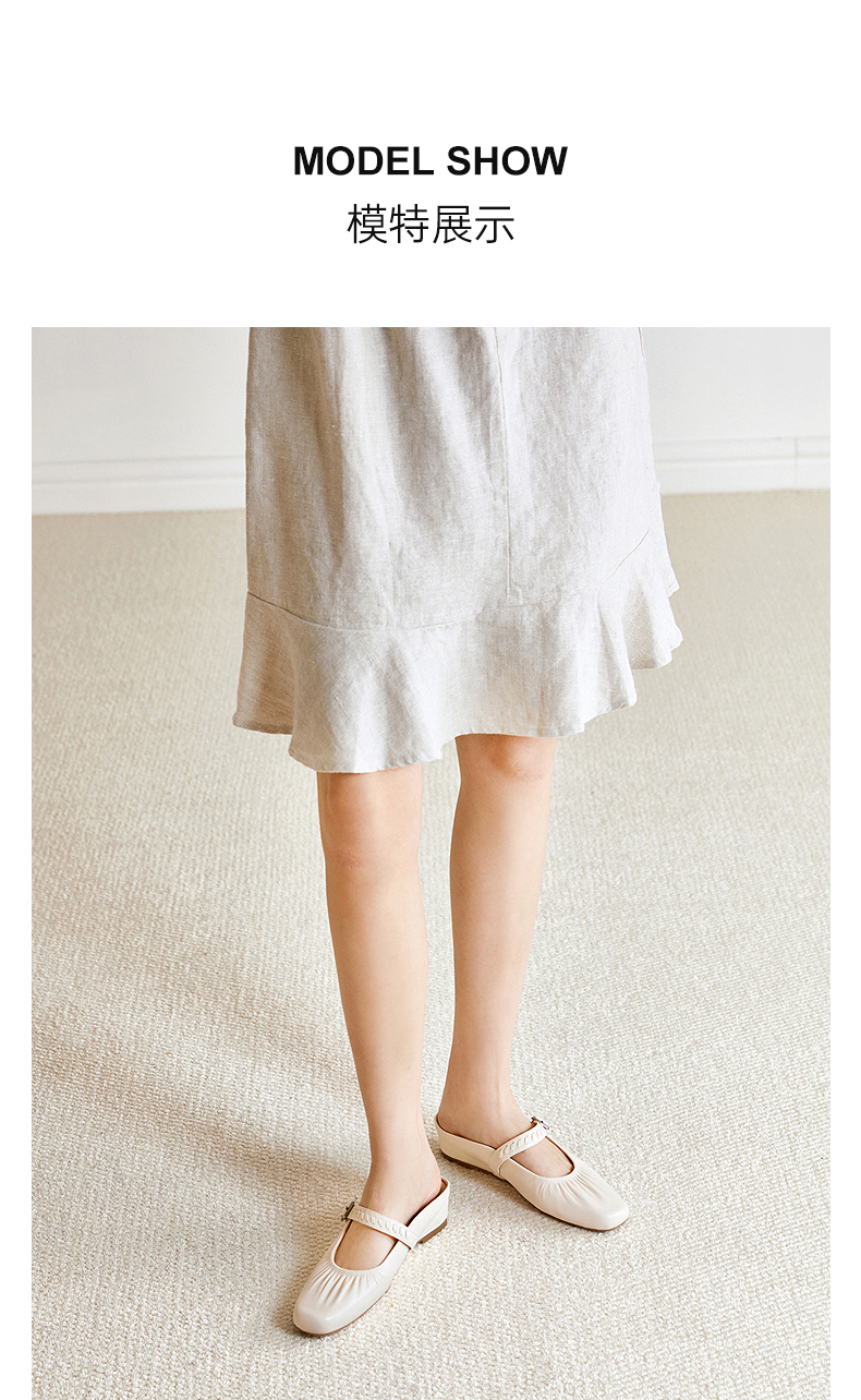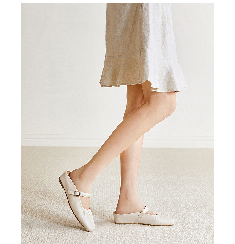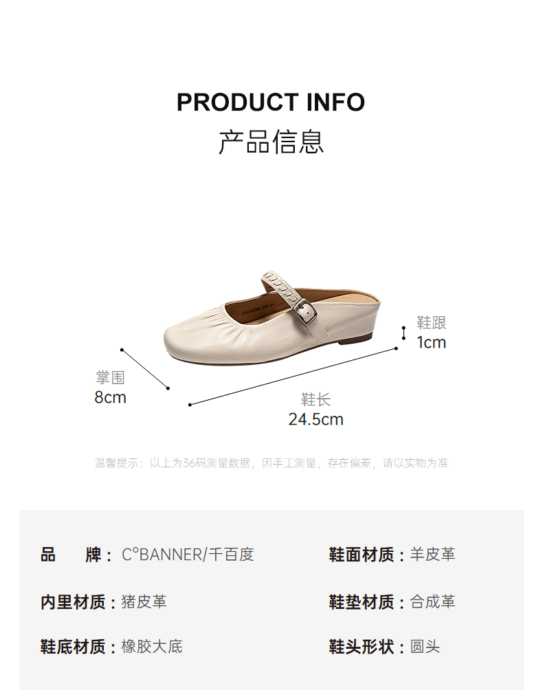 千百度薄底包头拖女2026夏季新款轻奢羊皮单鞋平底玛丽珍凉拖鞋A26214553
