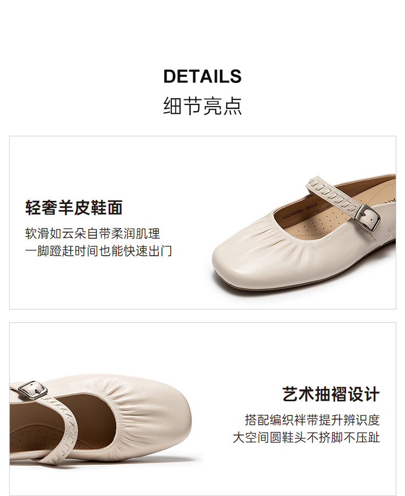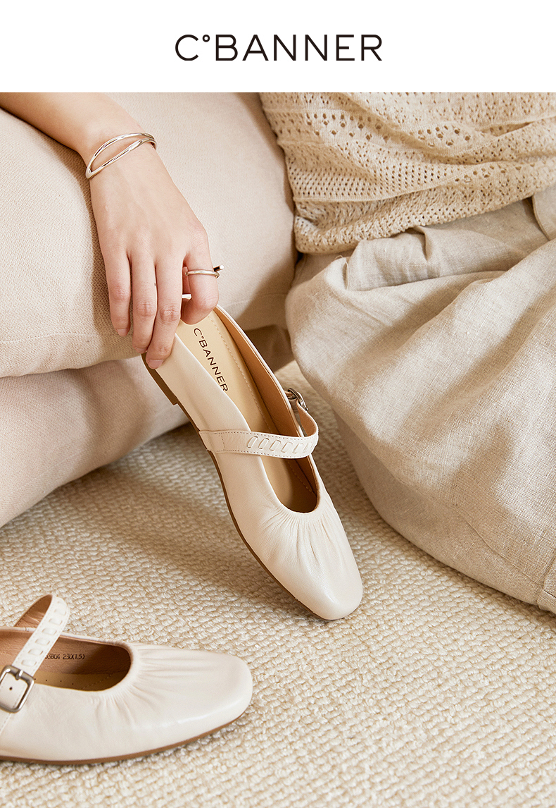 千百度蝴蝶结全包勃肯鞋玛丽珍鞋女平底真皮晚晚单鞋A25413008