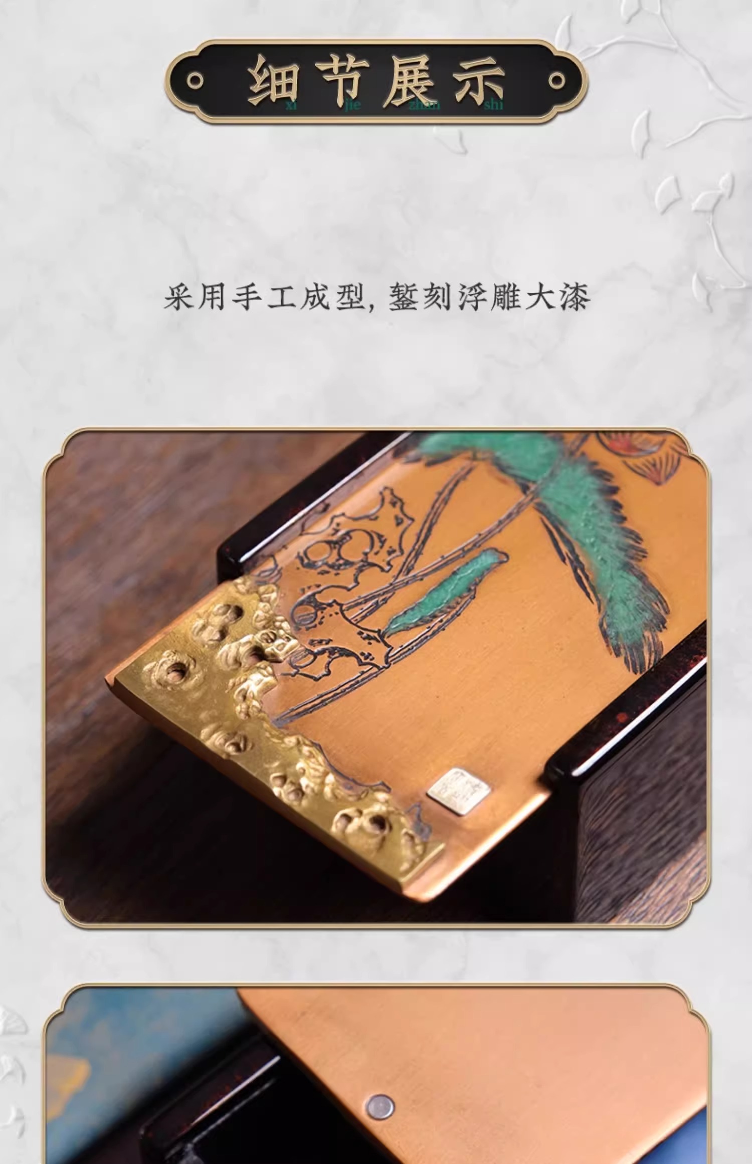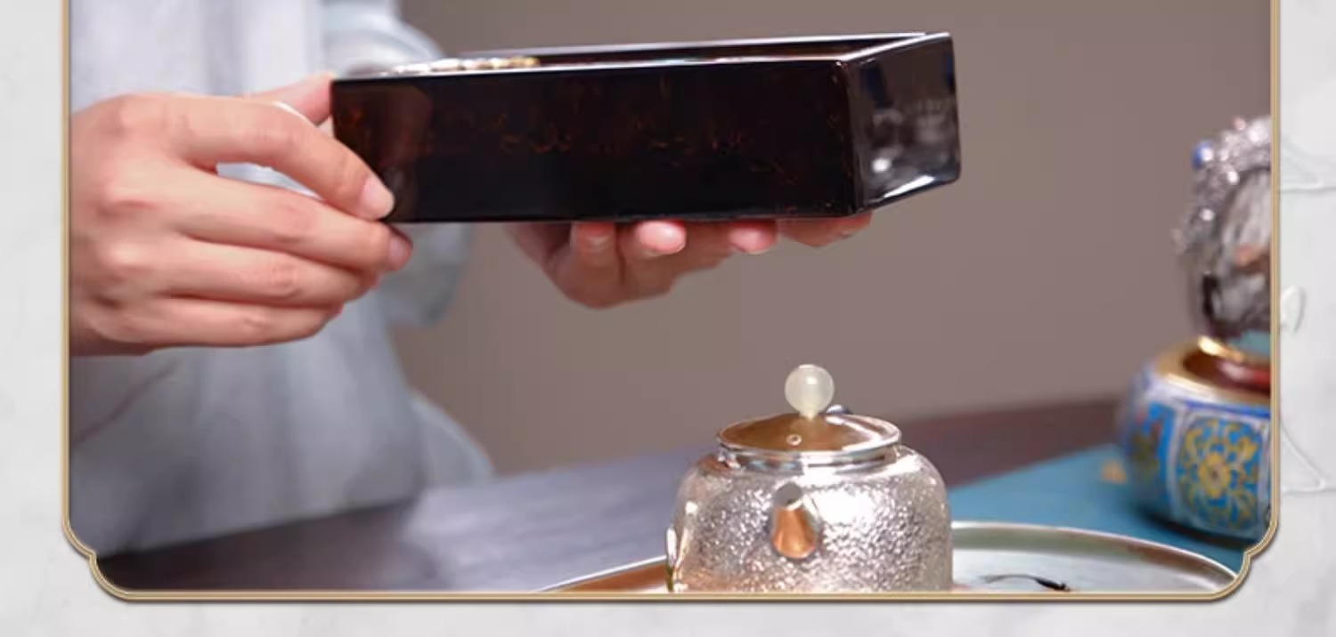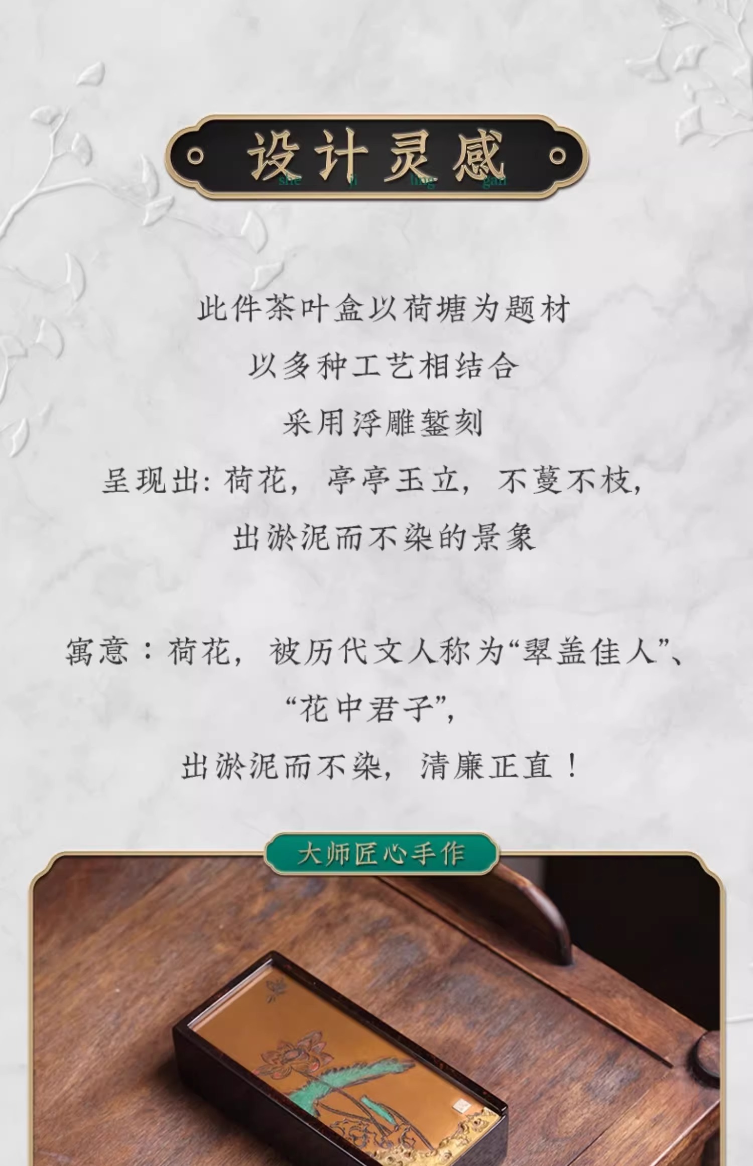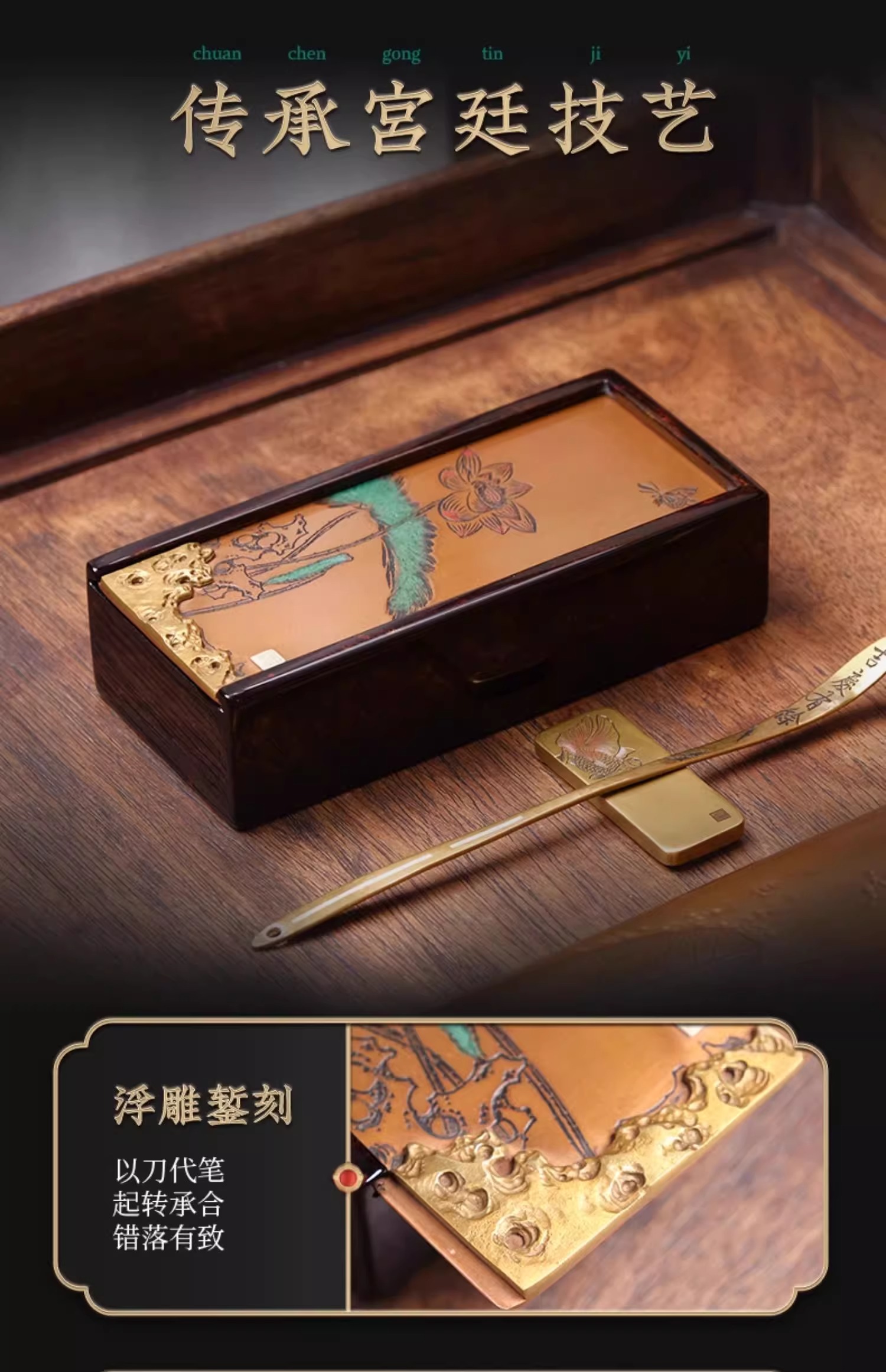 臻宝堂大漆茶叶盒纯手工雕刻荷塘抽拉式方形便携泡装高档茶具空盒荷塘茶叶盒