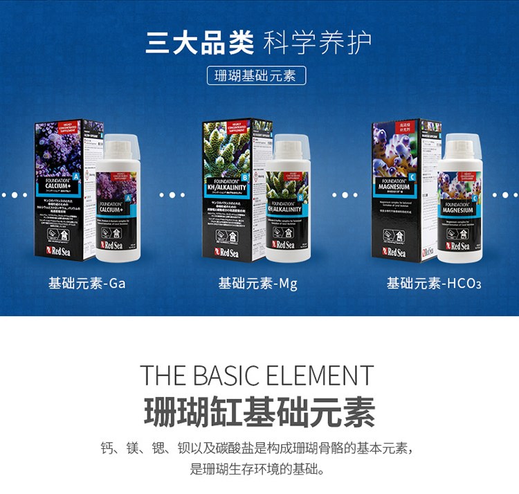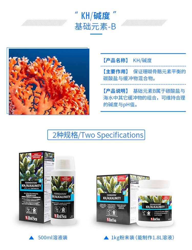 红海Red sea珊瑚基础元素促进骨骼生长500MLABC液体营养剂1kg粉末