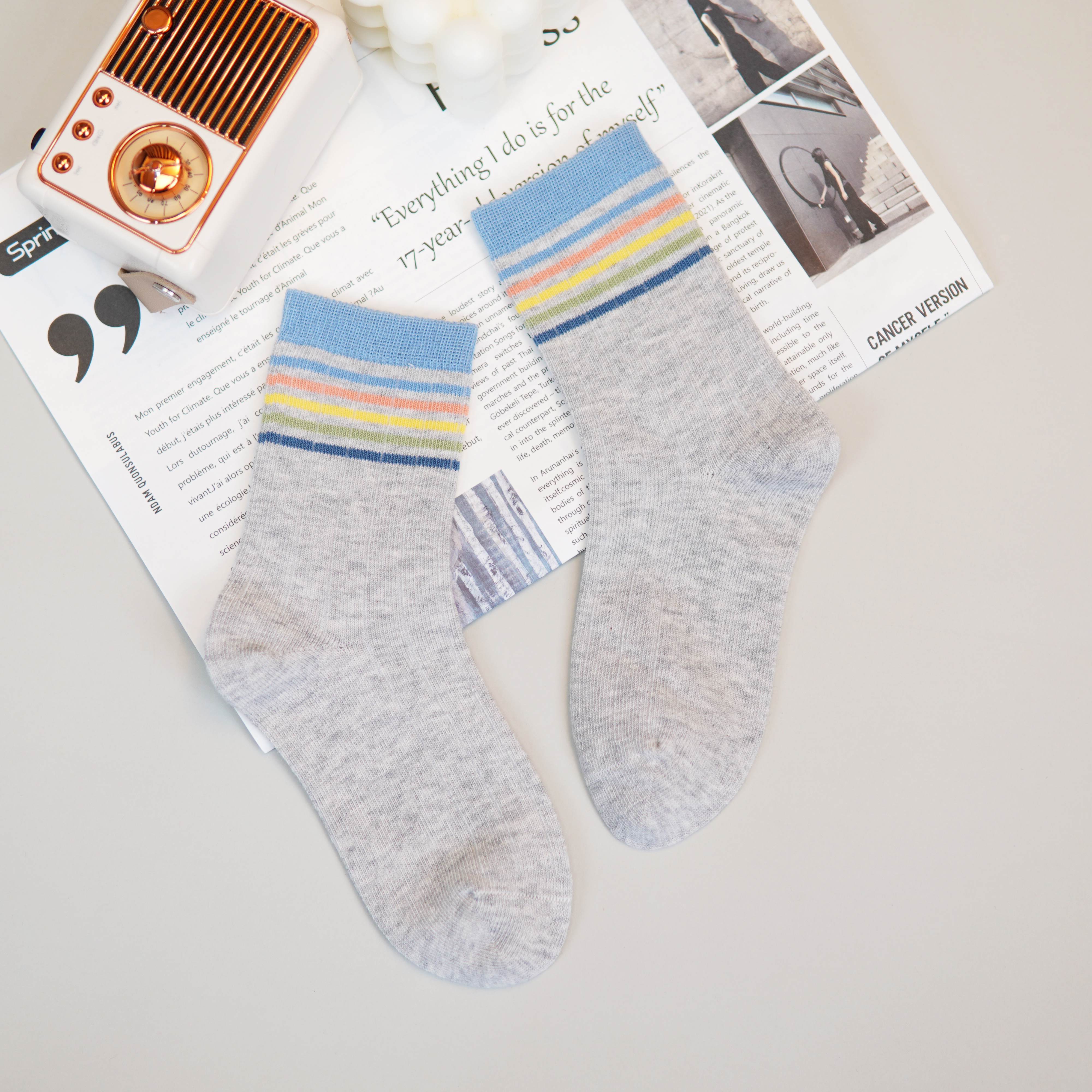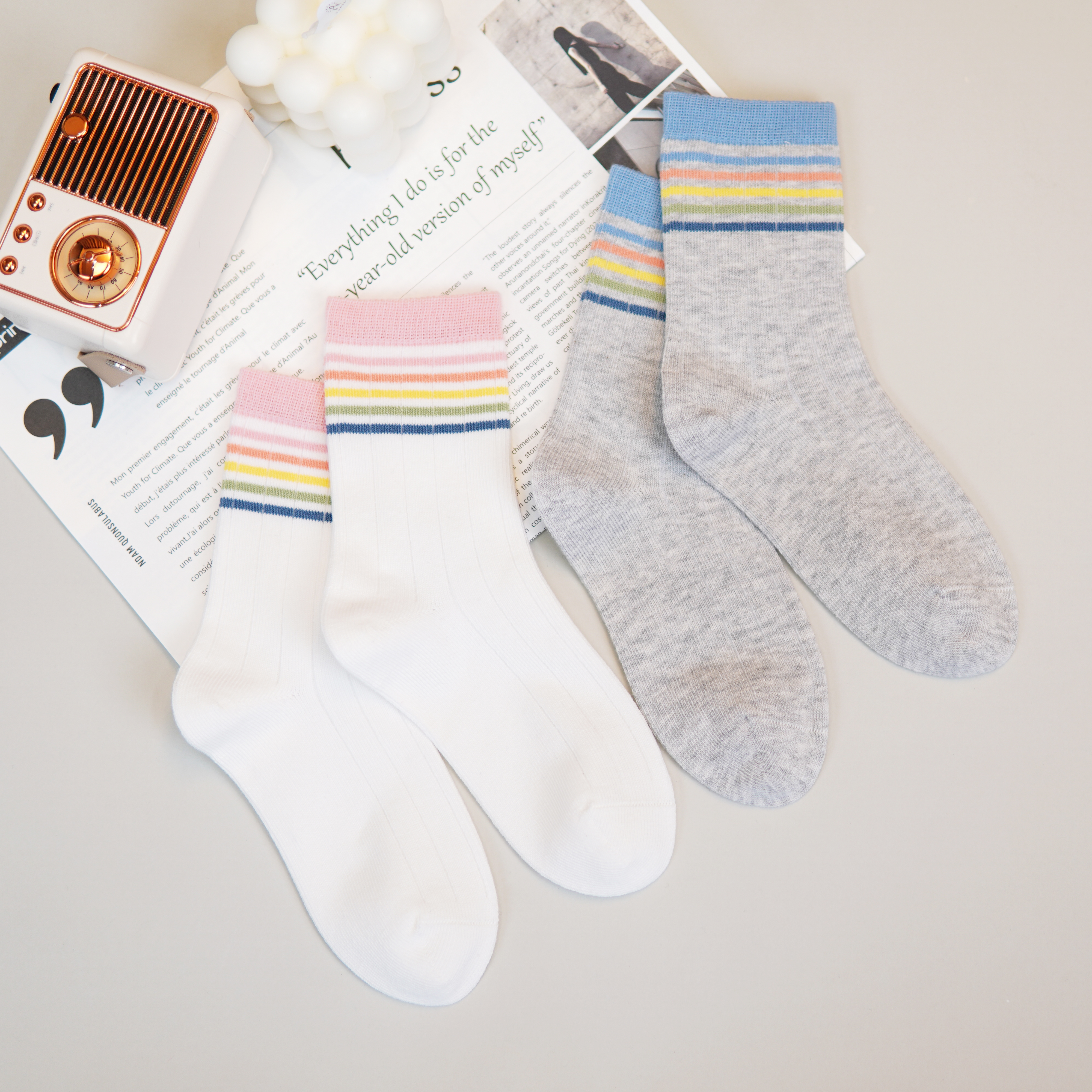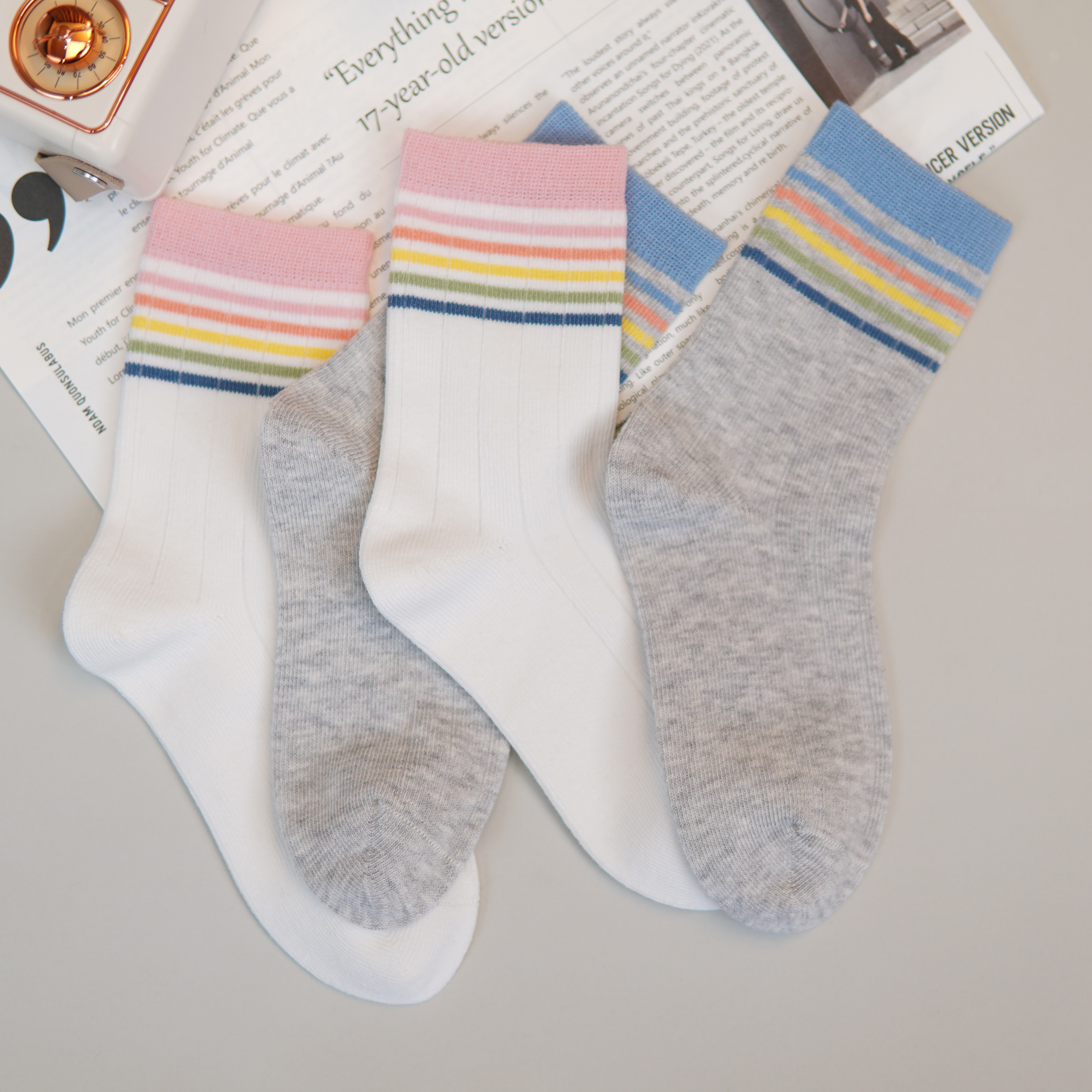 童【6双6折 2双装】丨彩虹袜儿童四季棉袜中筒袜双针条纹运动风袜子5-7岁【2423206】