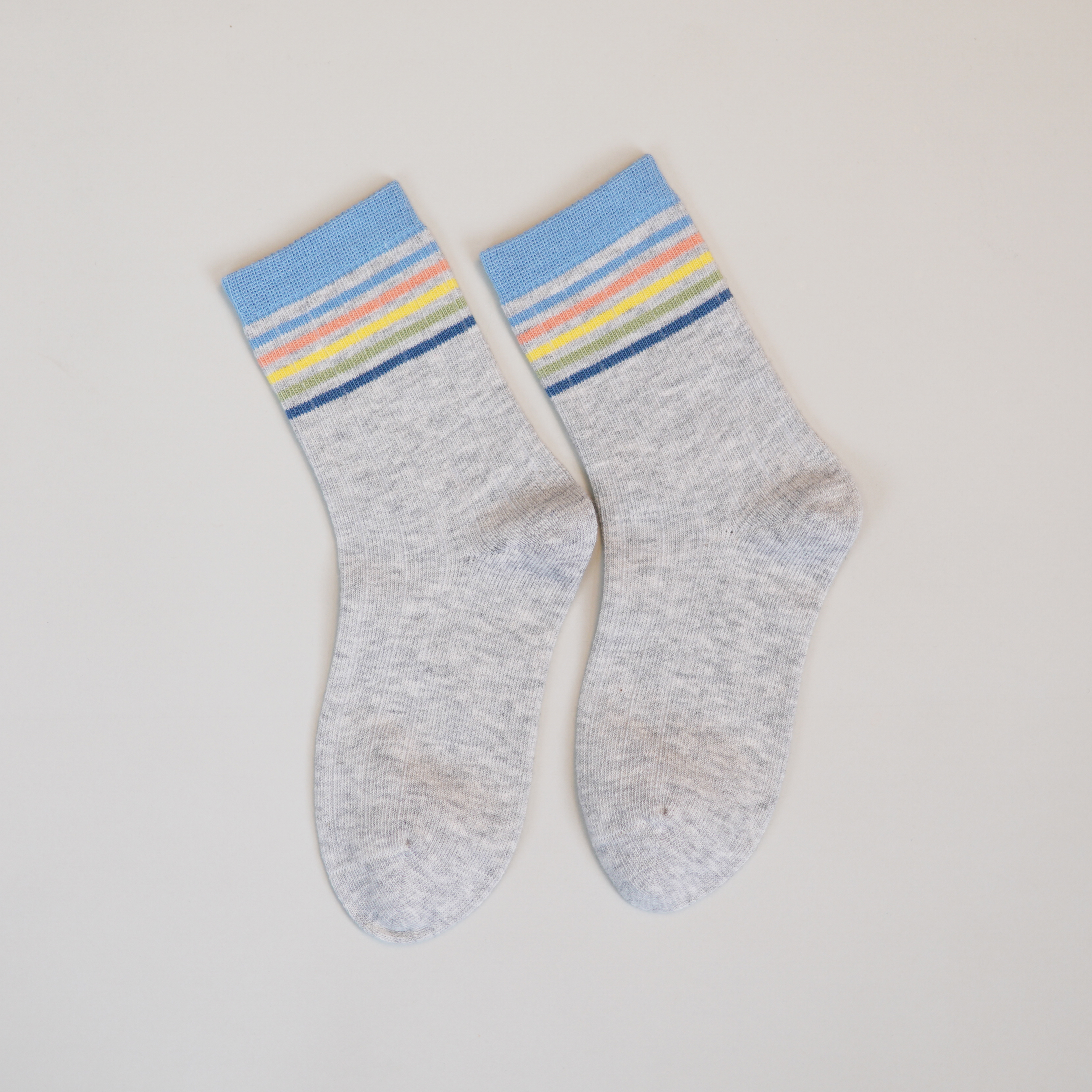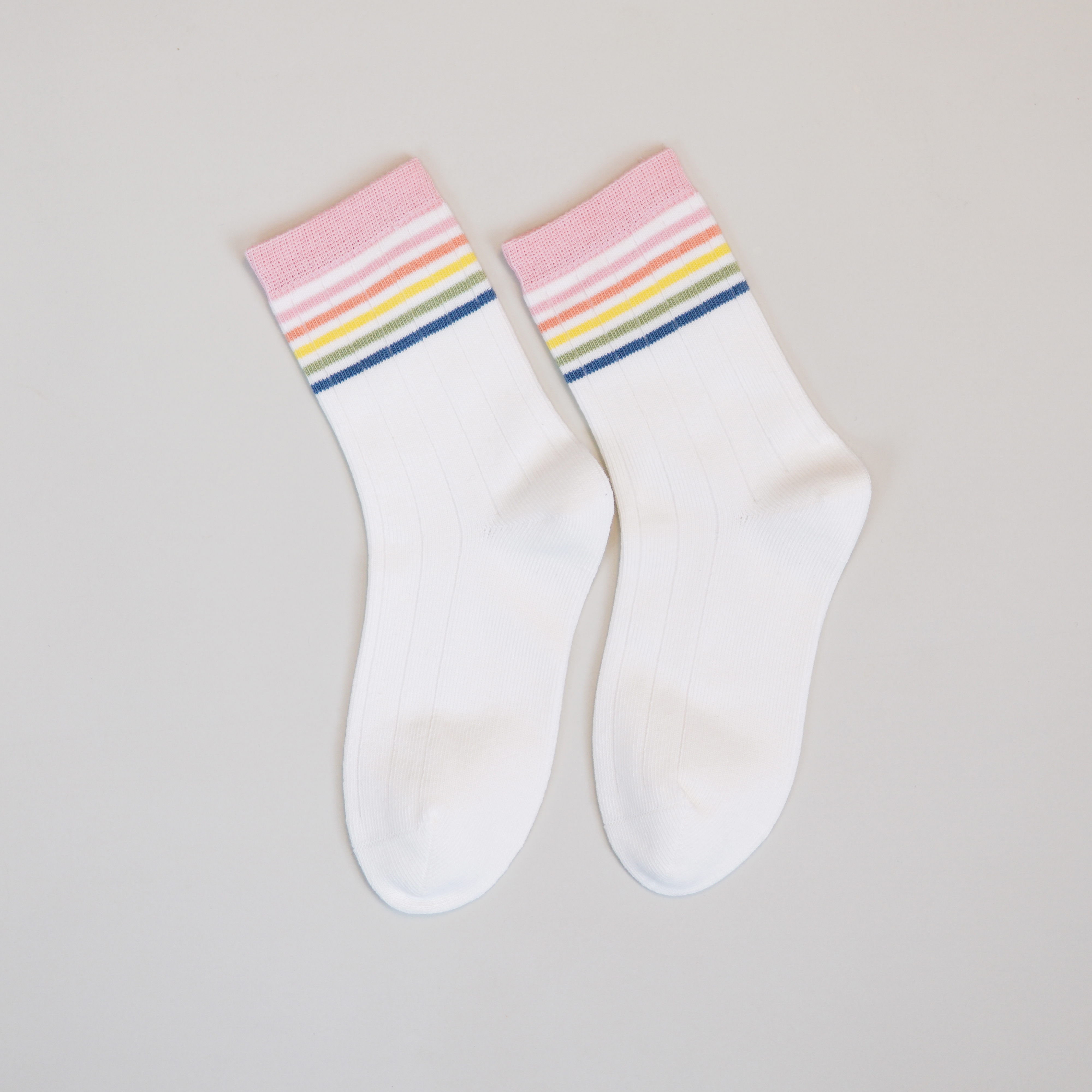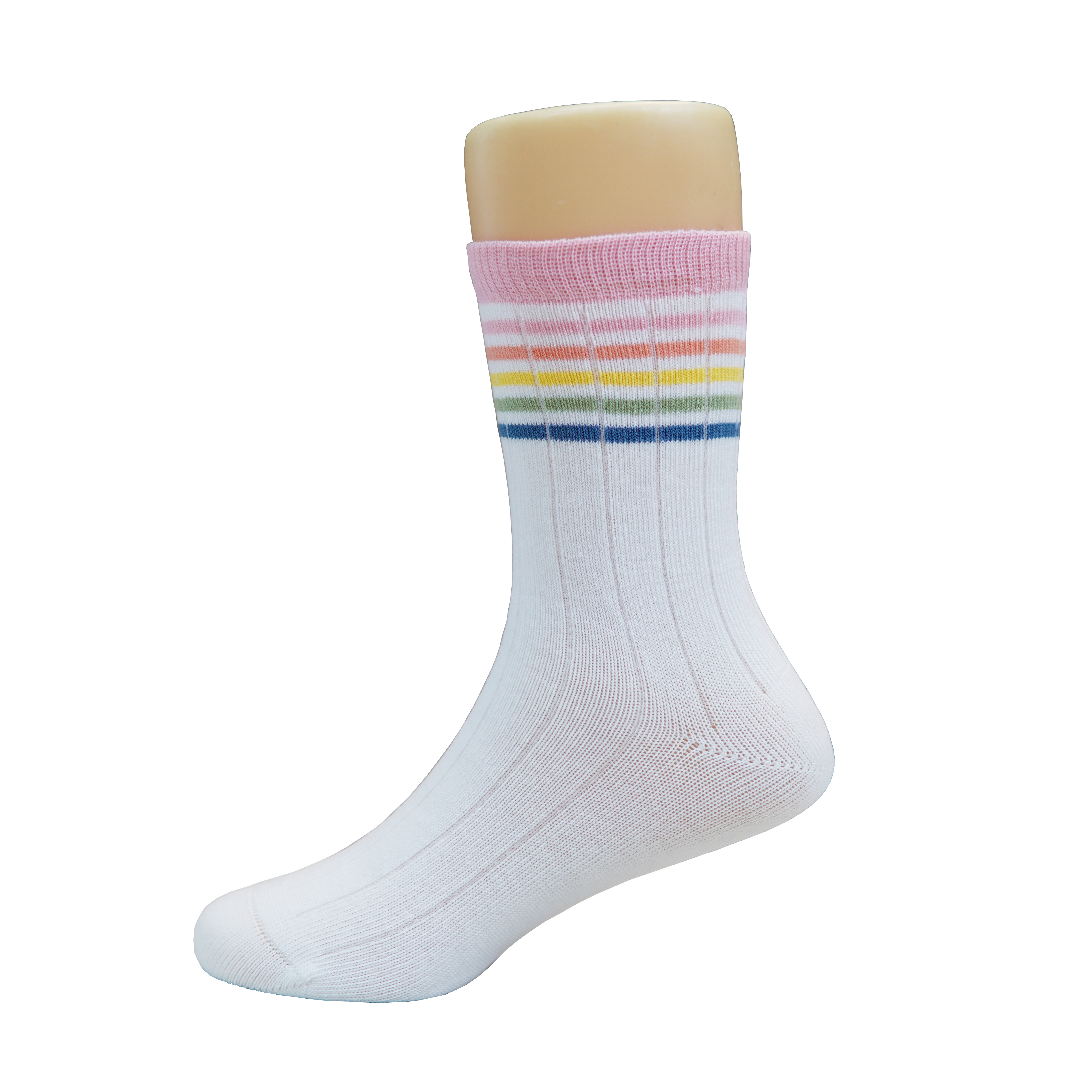 童【6双6折 2双装】丨彩虹袜儿童四季棉袜中筒袜双针条纹运动风袜子5-7岁【2423206】