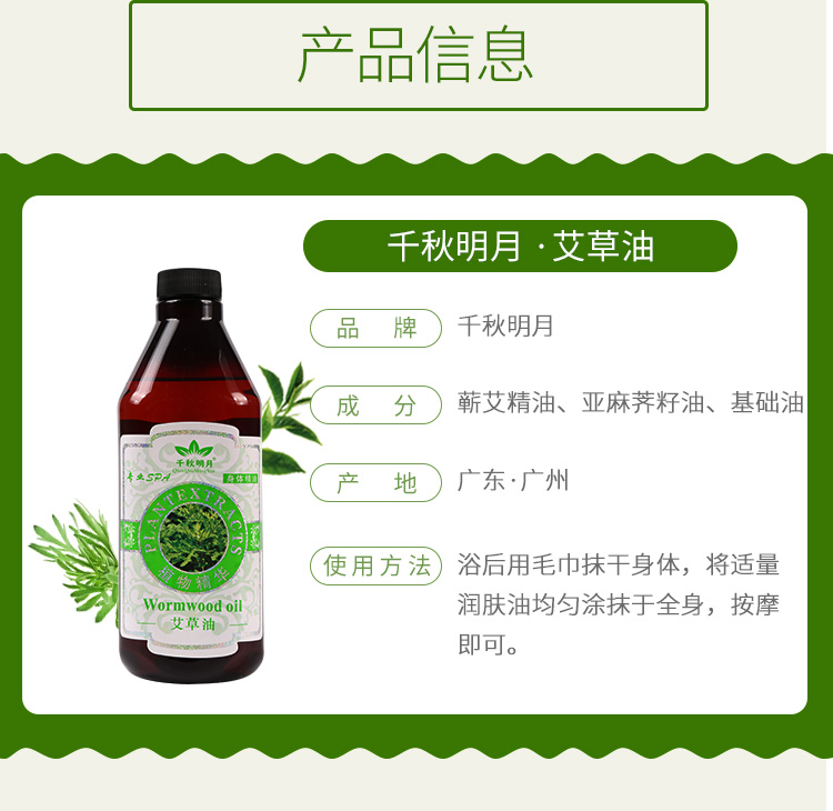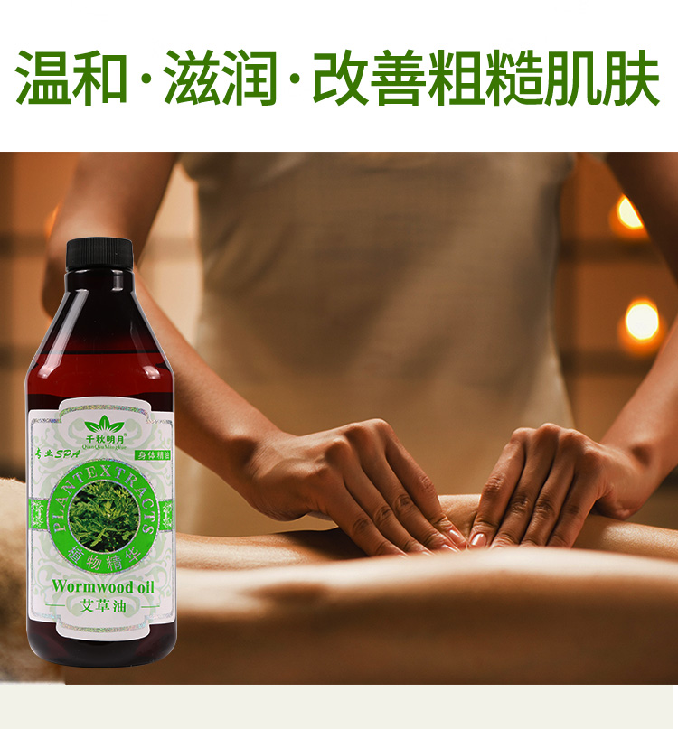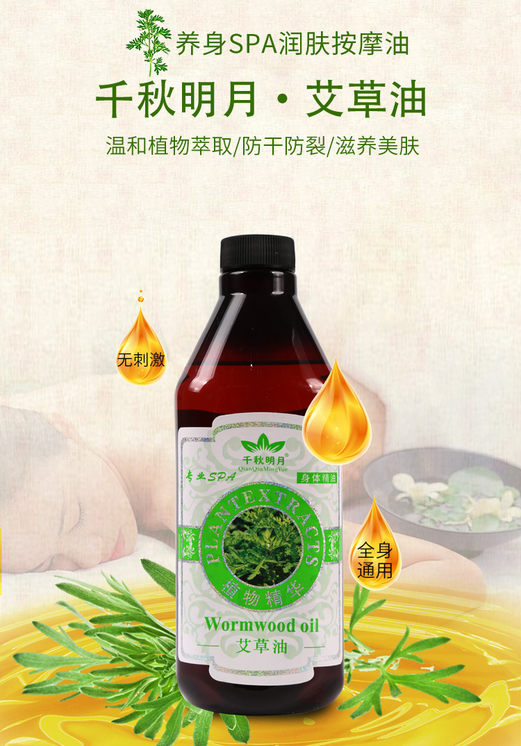 千秋明月艾草油全身肩颈推背推拿按摩刮痧发热通经络spa精油