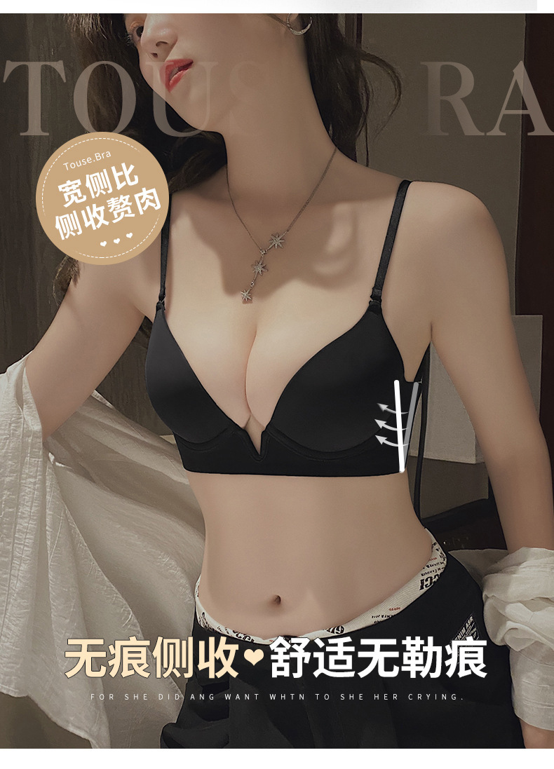 【“乳”此美好!性感美背内衣】 无痕内衣女小胸聚拢光面文胸防下垂 上托调整型薄款胸罩抹胸 高弹不勒 立体杯空气质感Bra 无痕肩带 顺滑细腻亲肤 多种穿法美背修饰脖颈线条美炸了