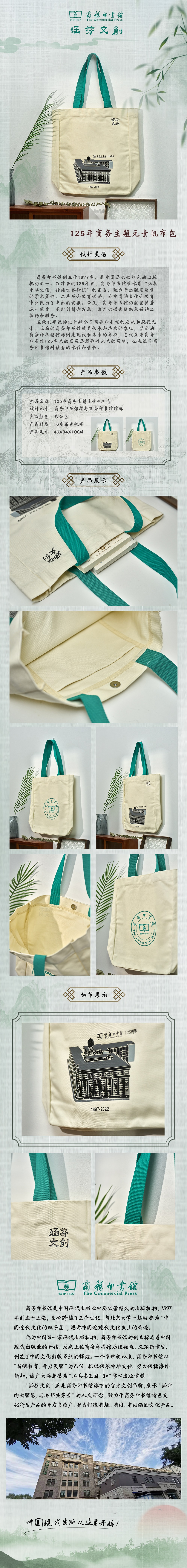 【商务印书馆涵芬文创】定制帆布包 商务印书馆125年纪念款