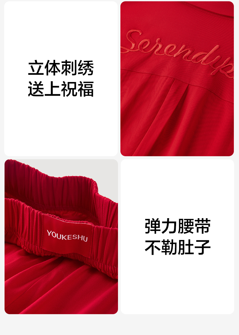 【新年限定】有棵树红色本命长袖长裤家居服套装G-L1023