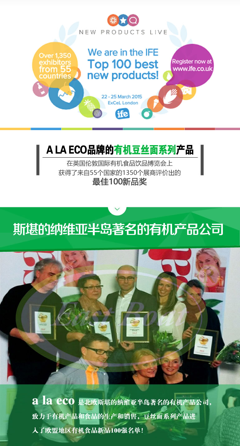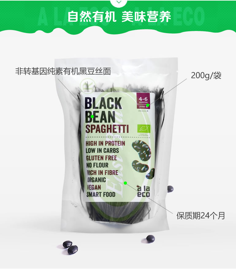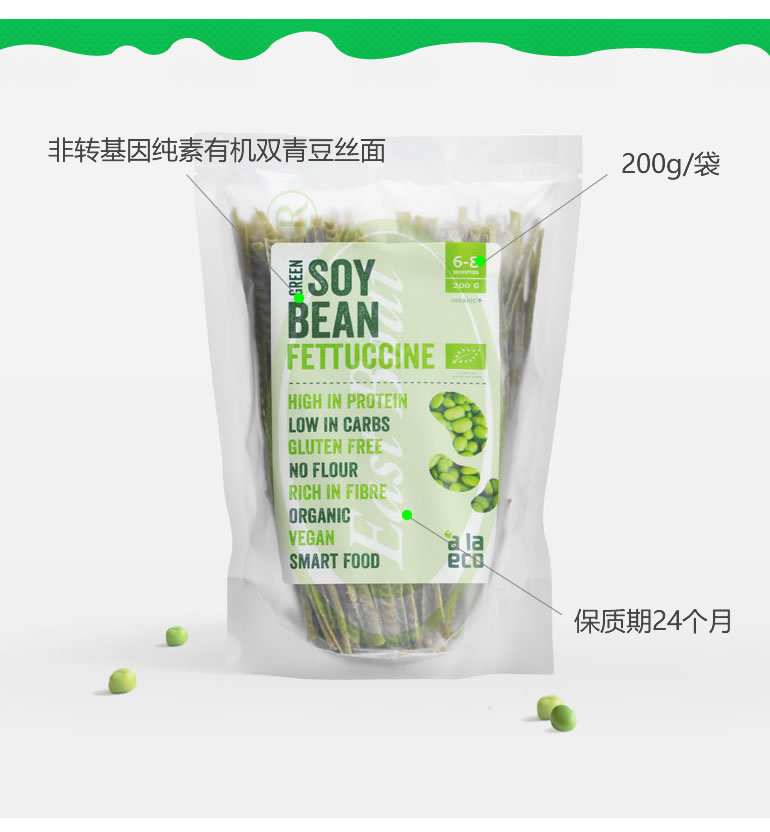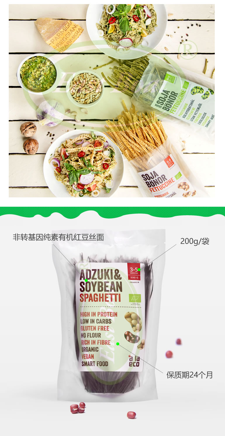 瑞典A LA ECO 有机豆类宽细丝面 200克/袋*4袋 泰德丰支持自提