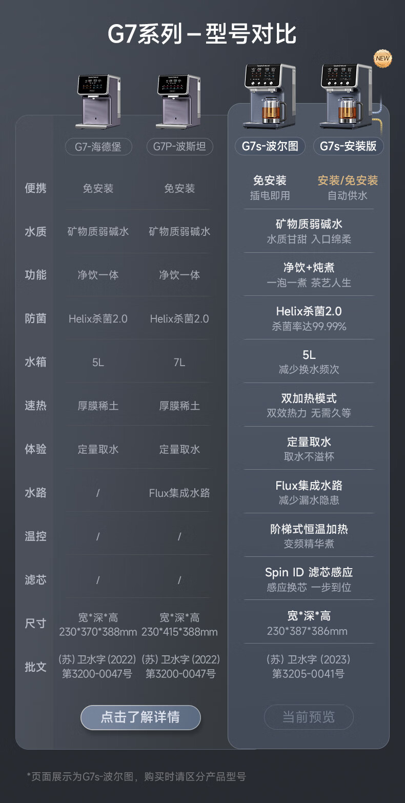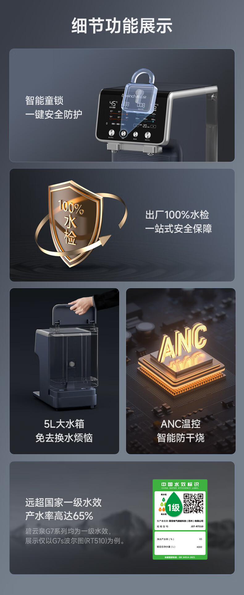 【小家电】碧云泉G7弱碱台式家用净水器速热直饮水一体机100%真沸腾免安装ro反渗透净化 HF