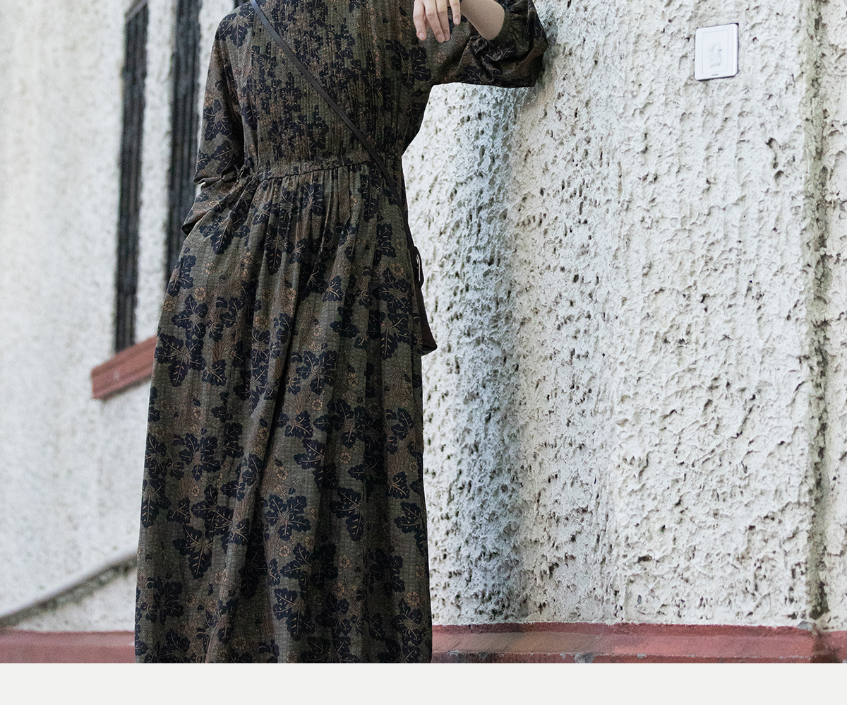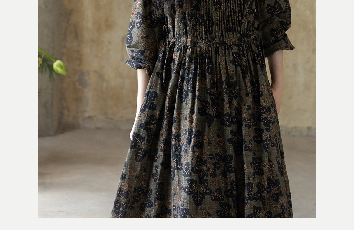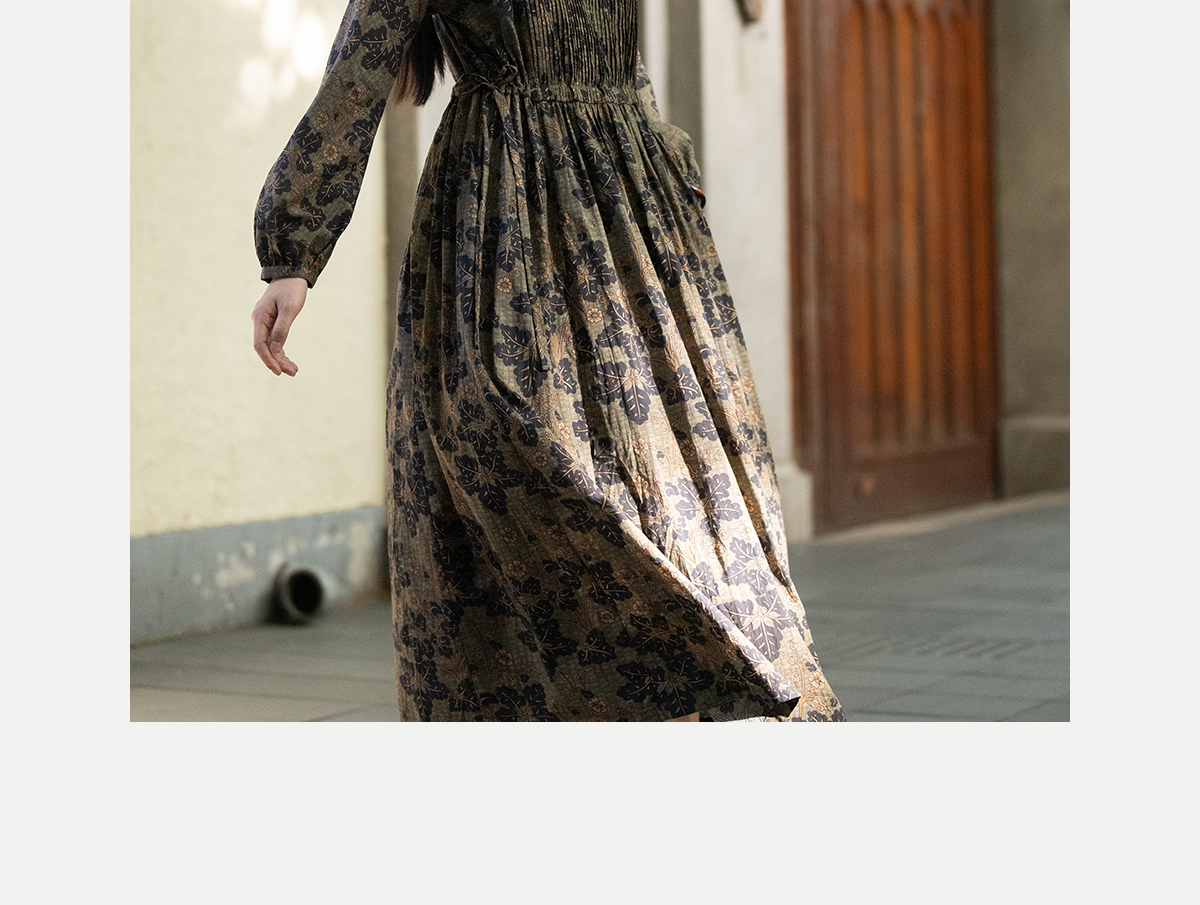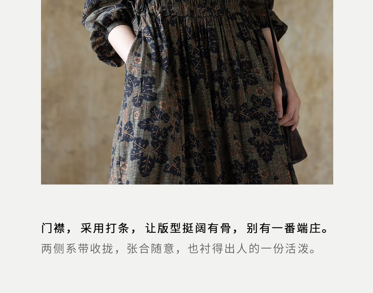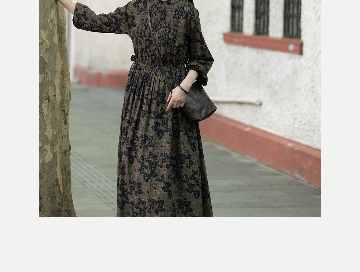 牧衣游原创 100支进口印花匹马棉连衣裙秋新款宽松文艺长裙 番禧