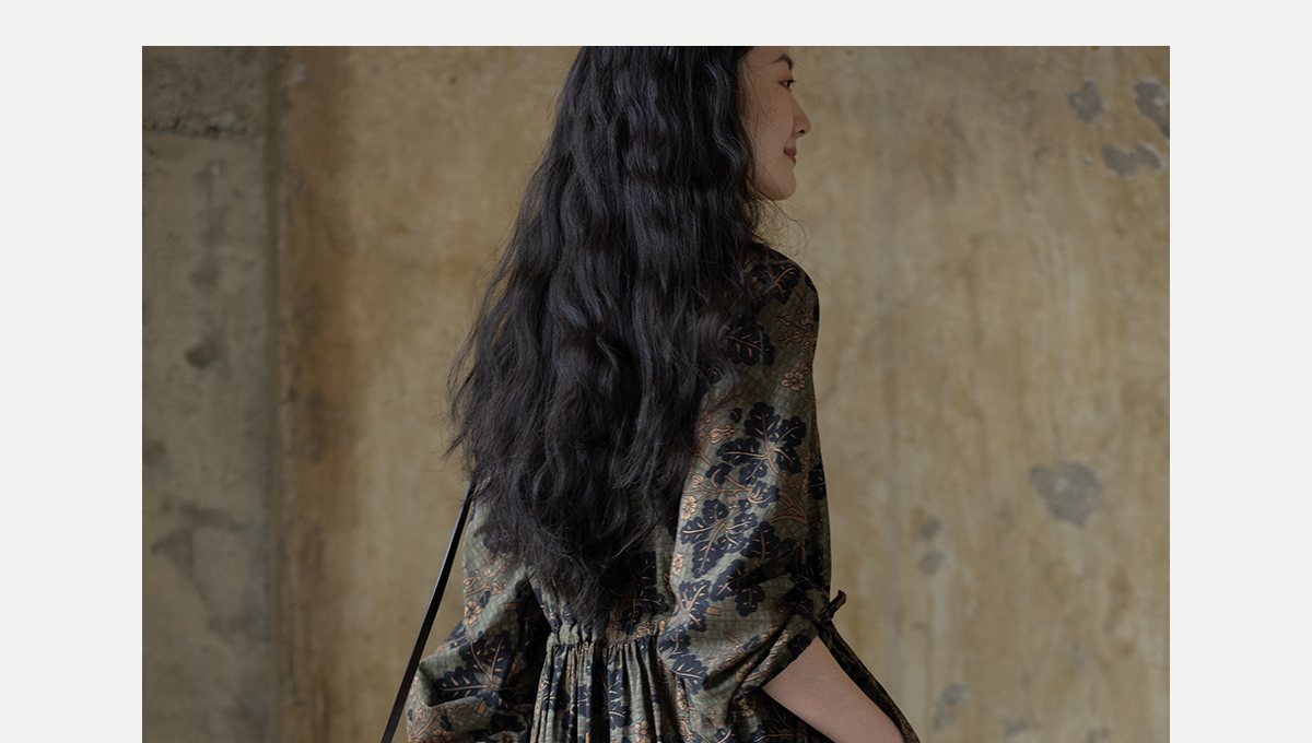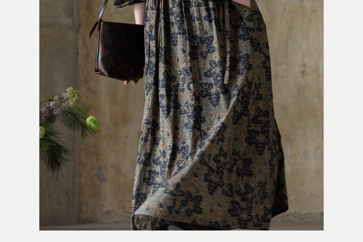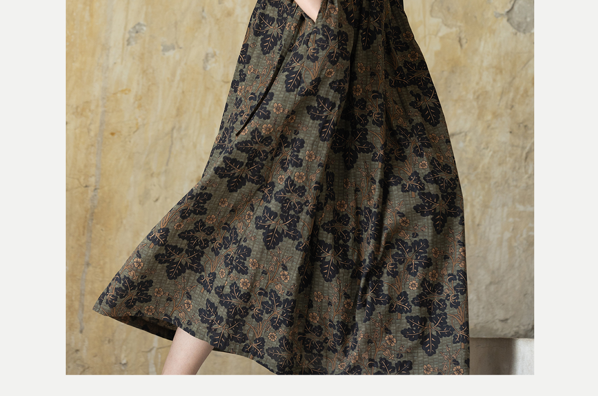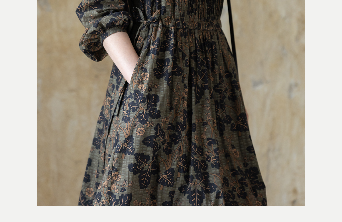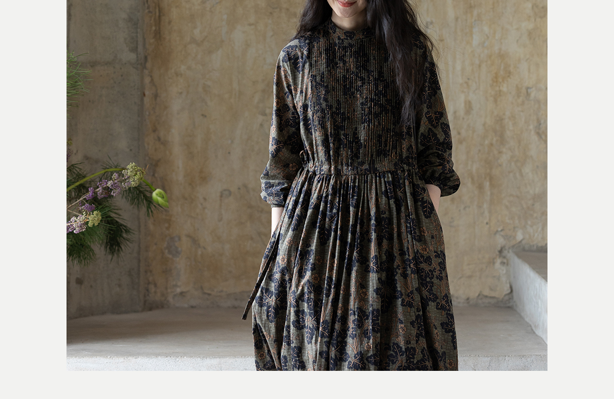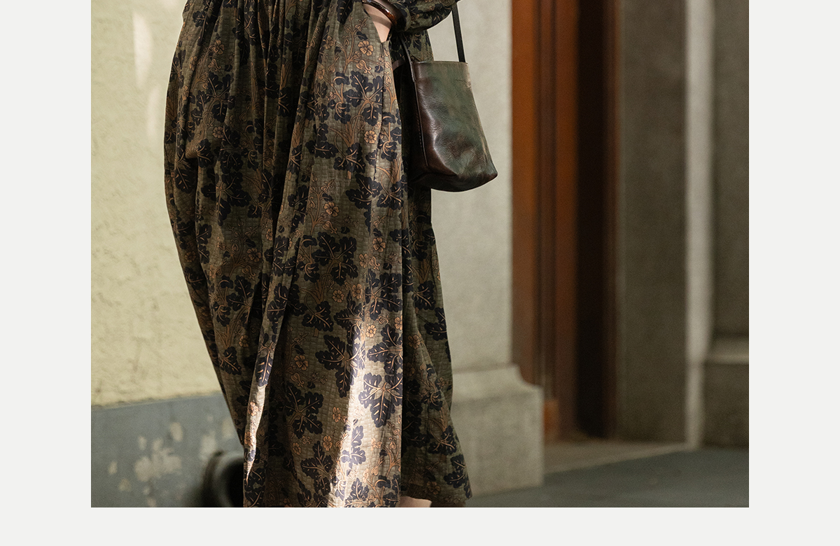 牧衣游原创 100支进口印花匹马棉连衣裙秋新款宽松文艺长裙 番禧