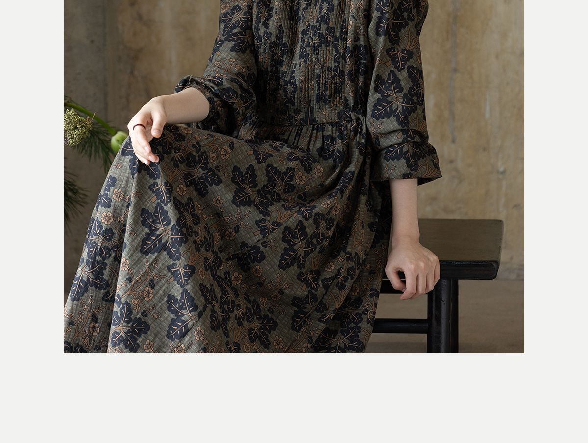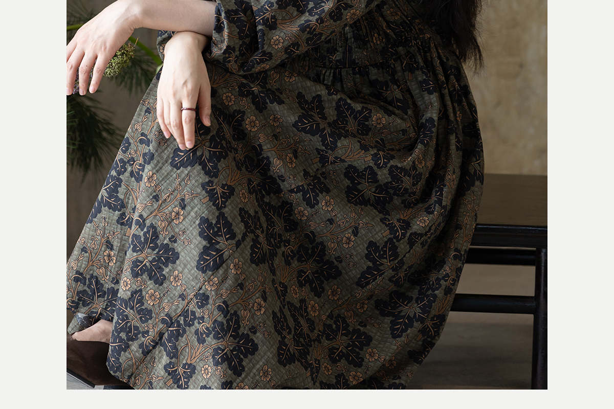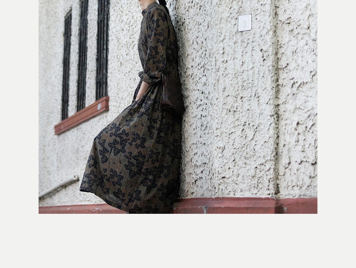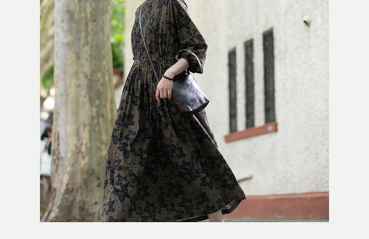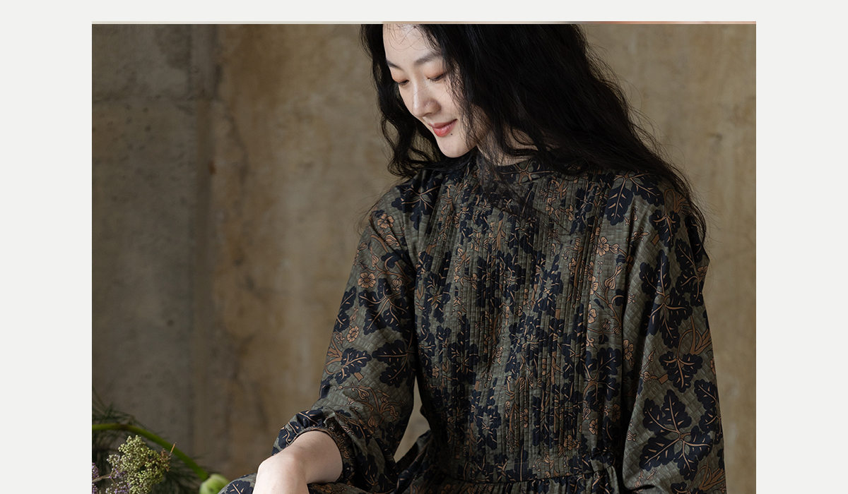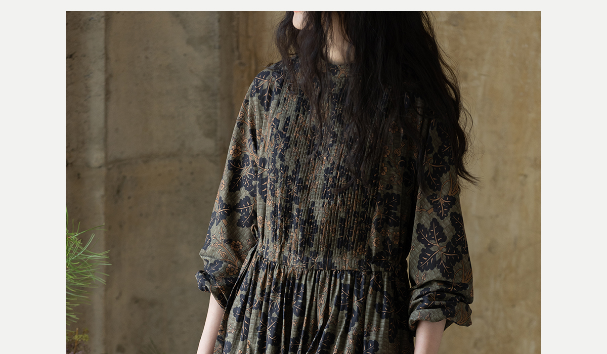 牧衣游原创 100支进口印花匹马棉连衣裙秋新款宽松文艺长裙 番禧