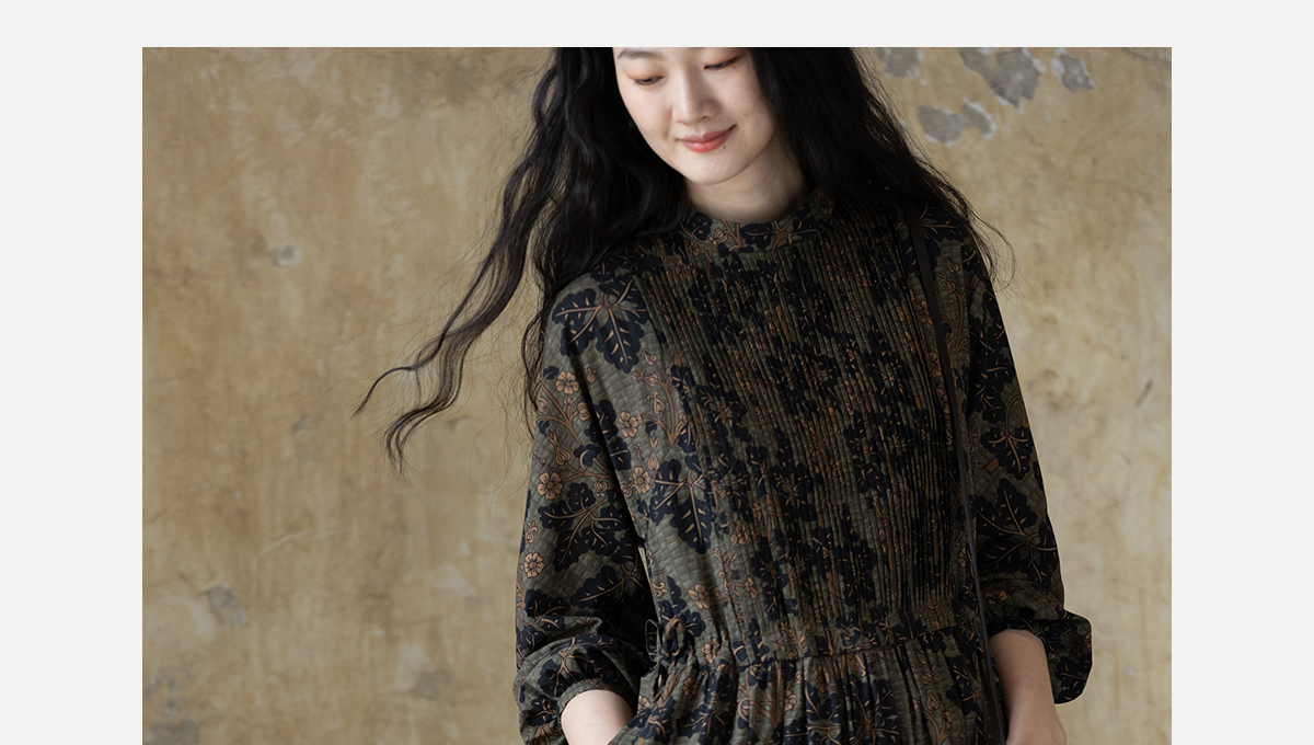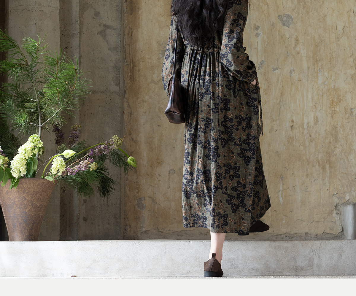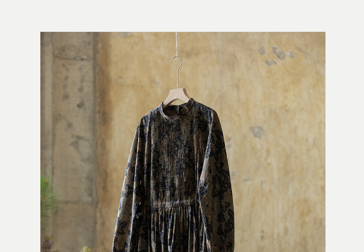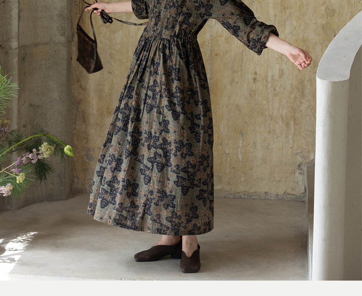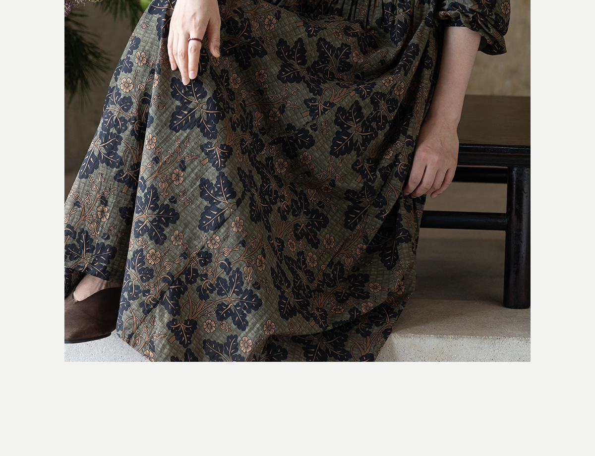 牧衣游原创 100支进口印花匹马棉连衣裙秋新款宽松文艺长裙 番禧