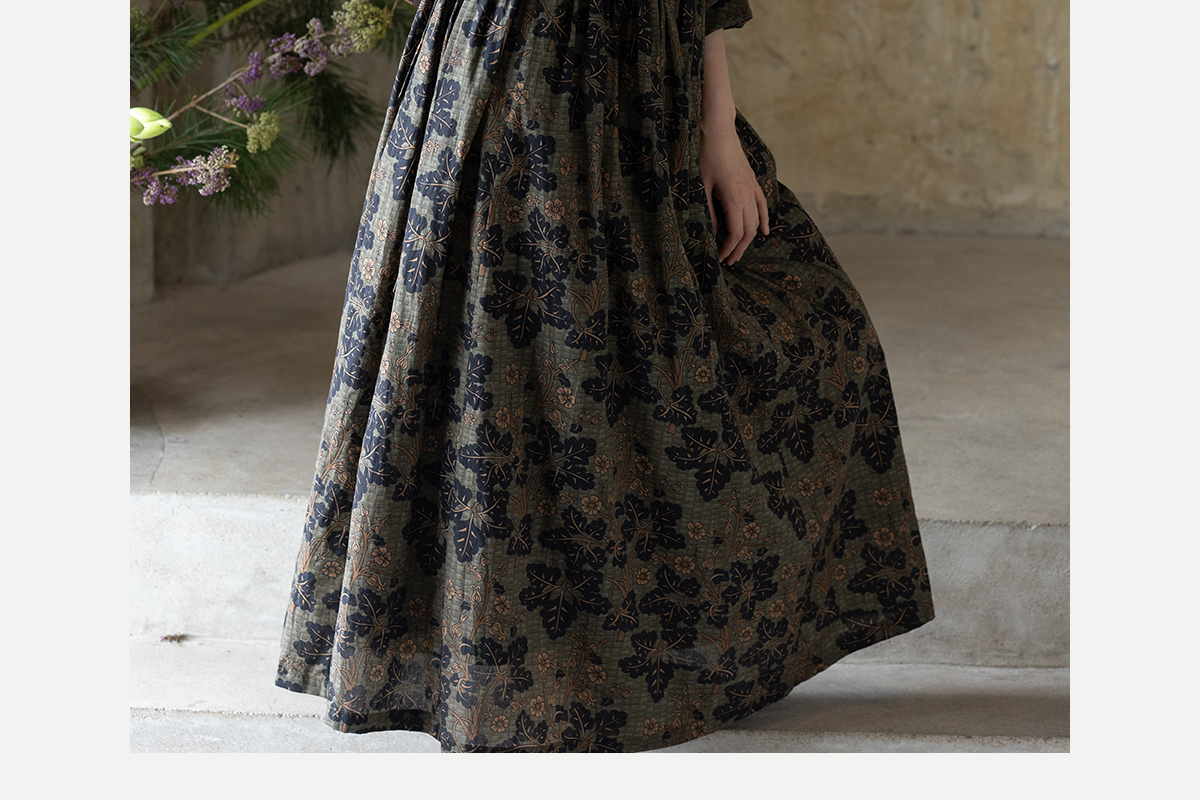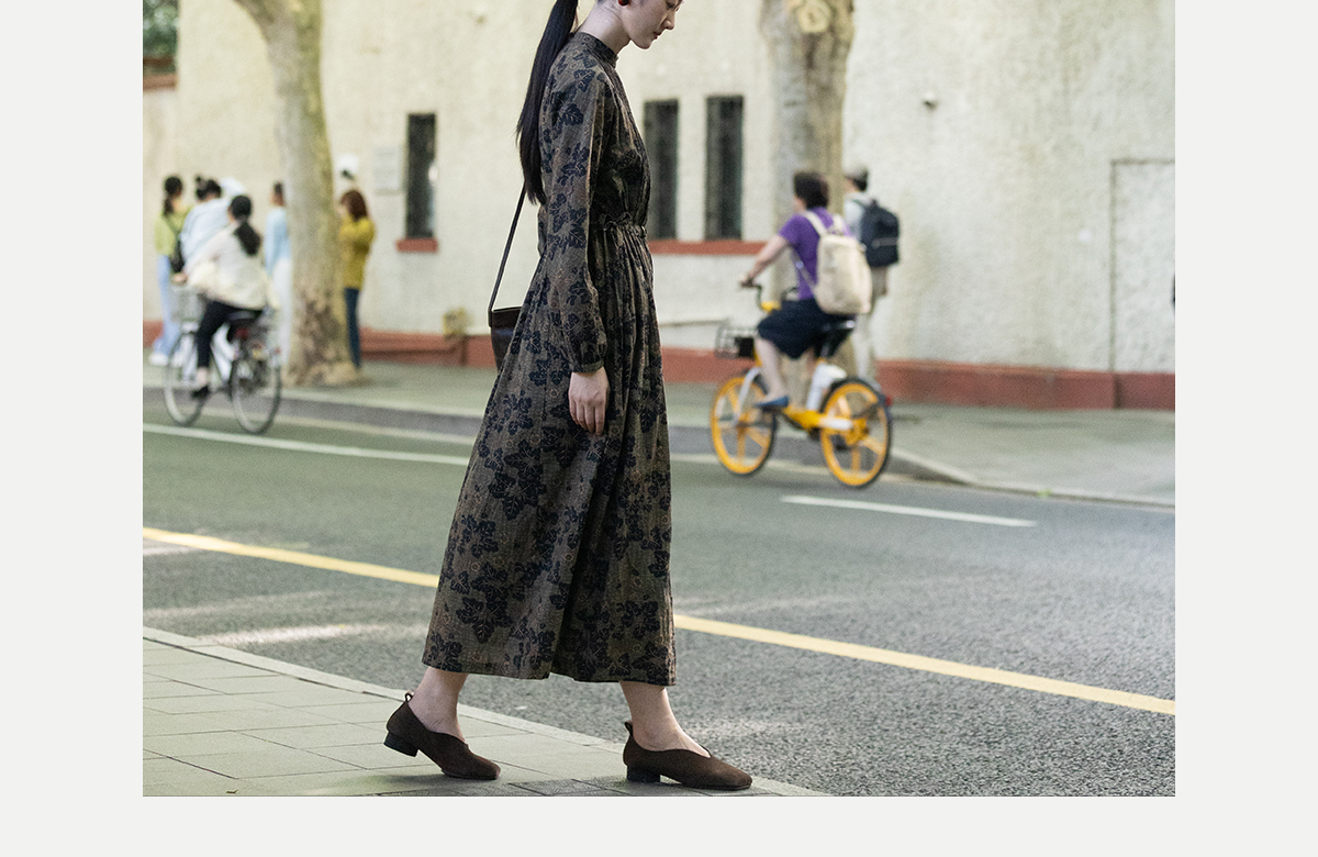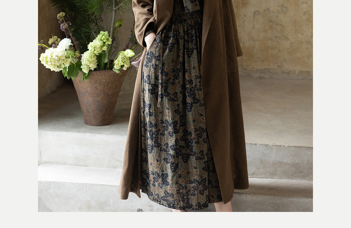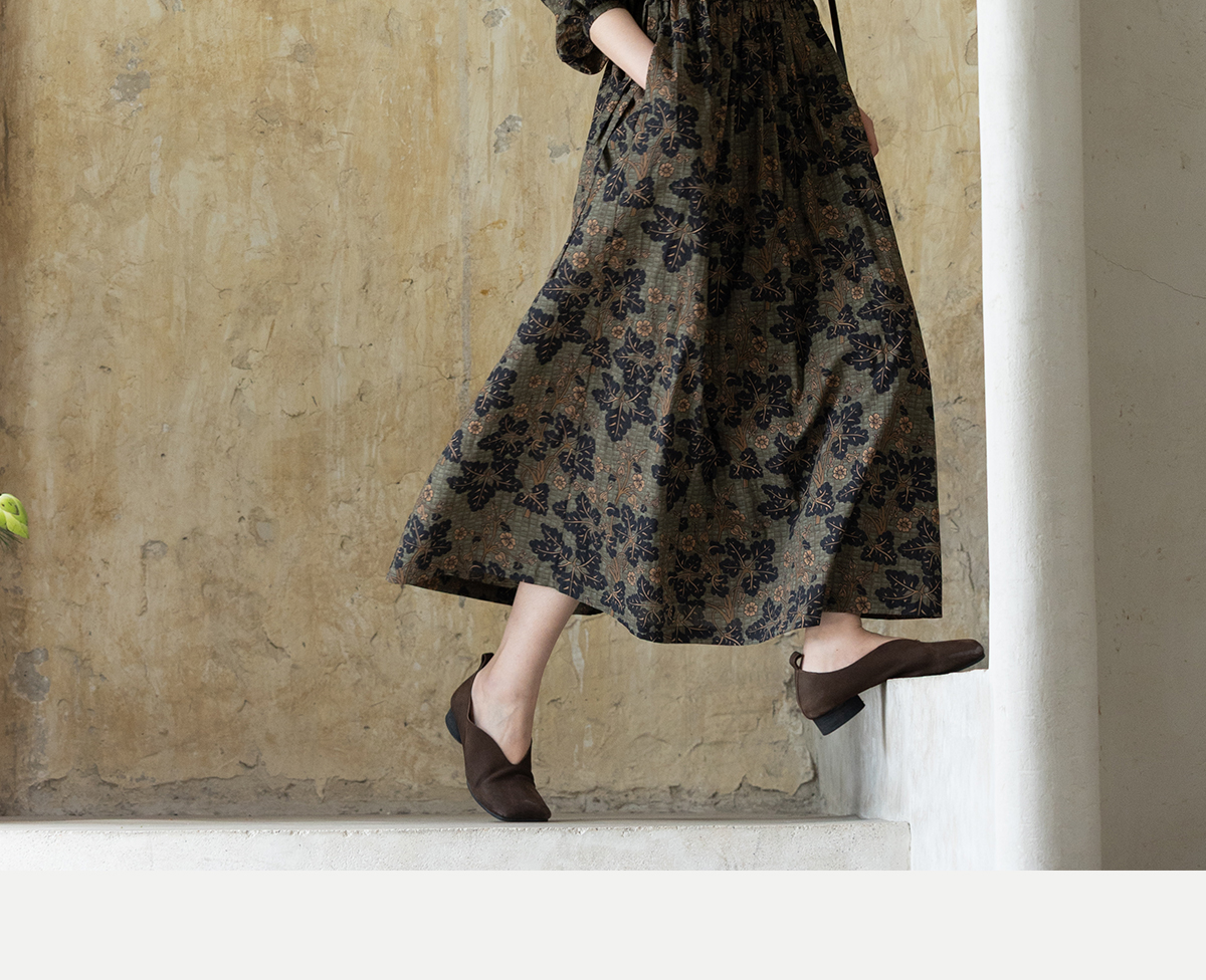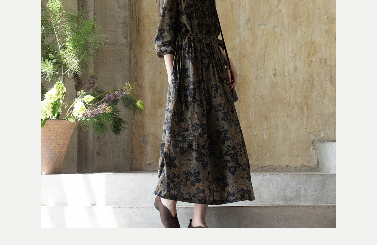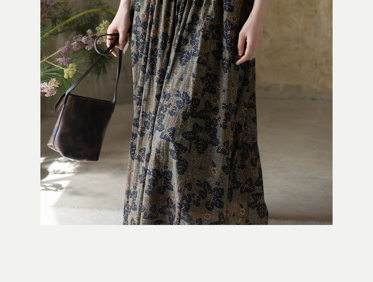 牧衣游原创 100支进口印花匹马棉连衣裙秋新款宽松文艺长裙 番禧