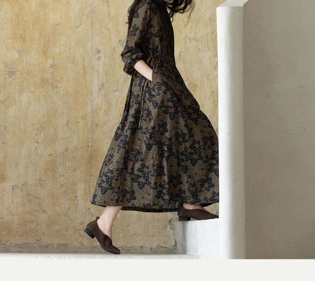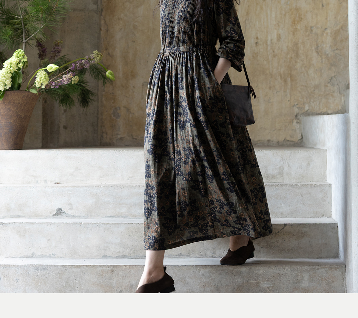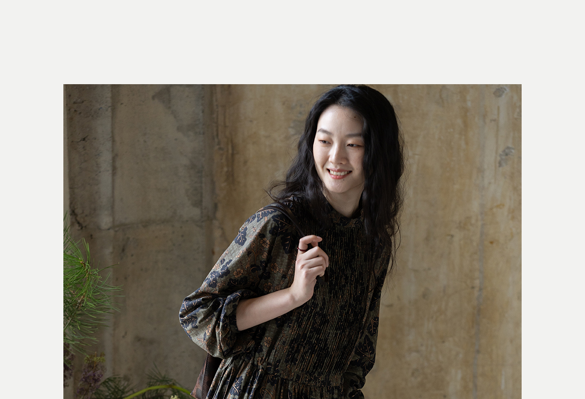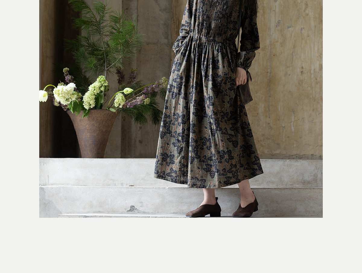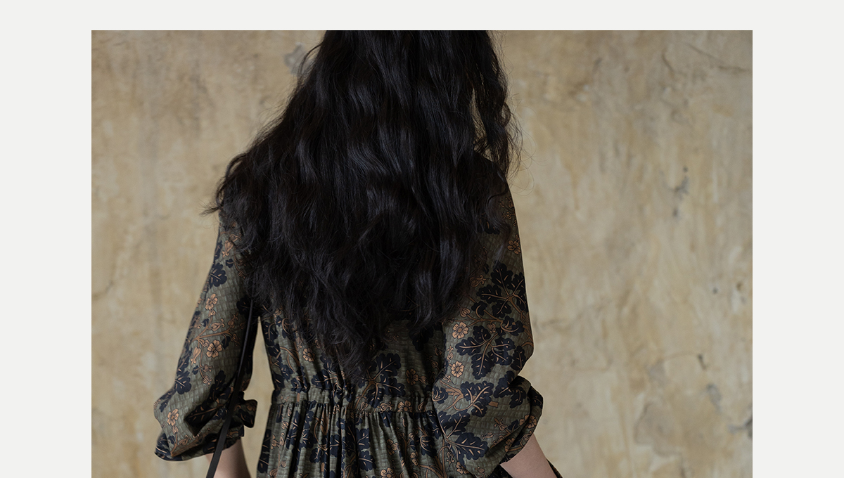 牧衣游原创 100支进口印花匹马棉连衣裙秋新款宽松文艺长裙 番禧