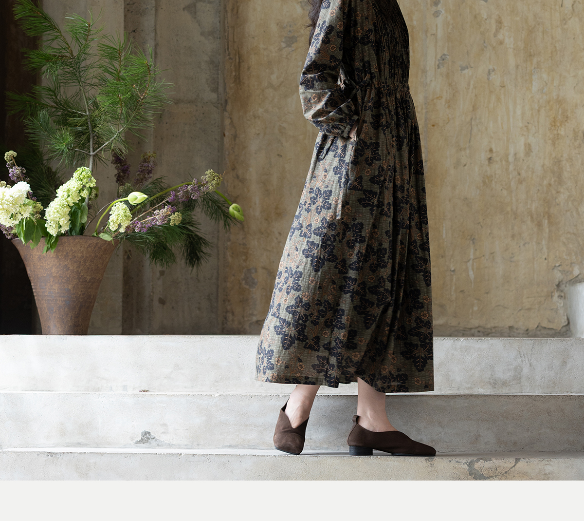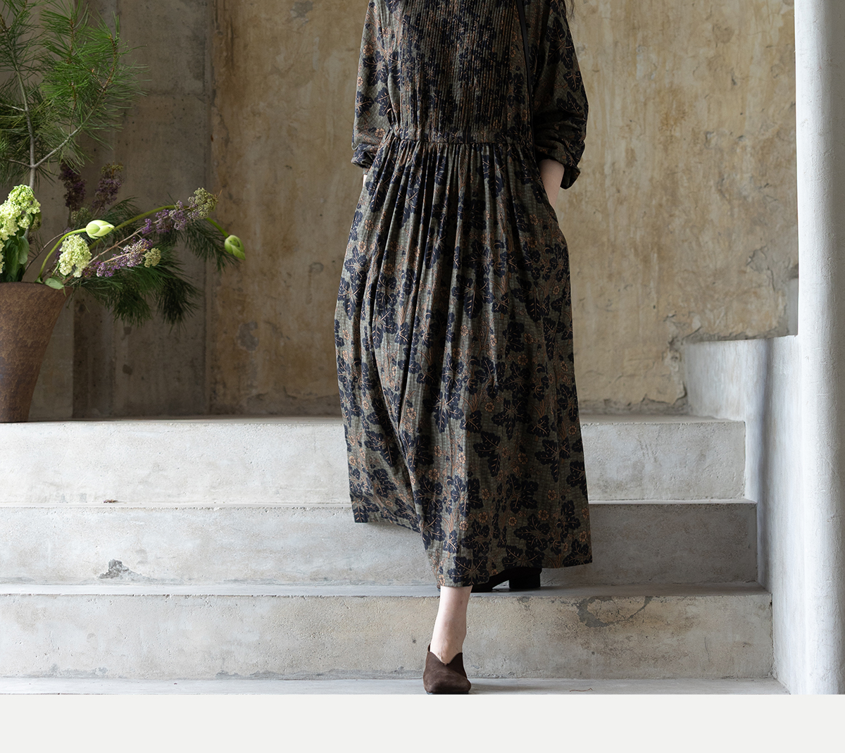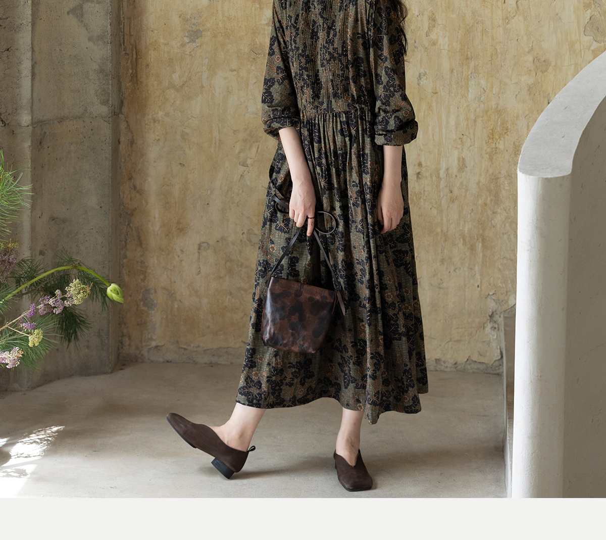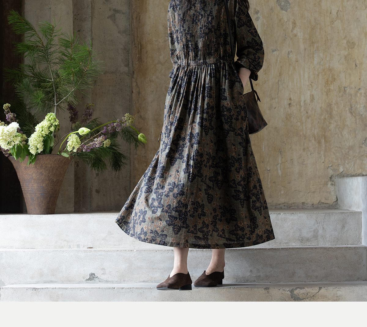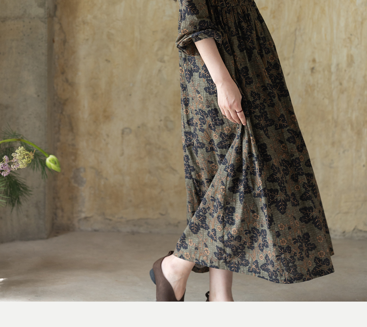 牧衣游原创 100支进口印花匹马棉连衣裙秋新款宽松文艺长裙 番禧