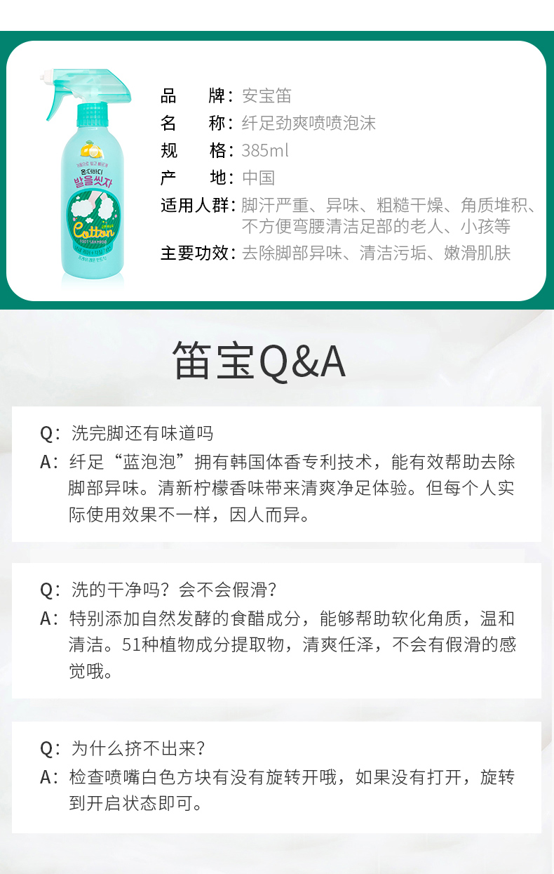 安宝笛纤足去角质喷喷清洁剂