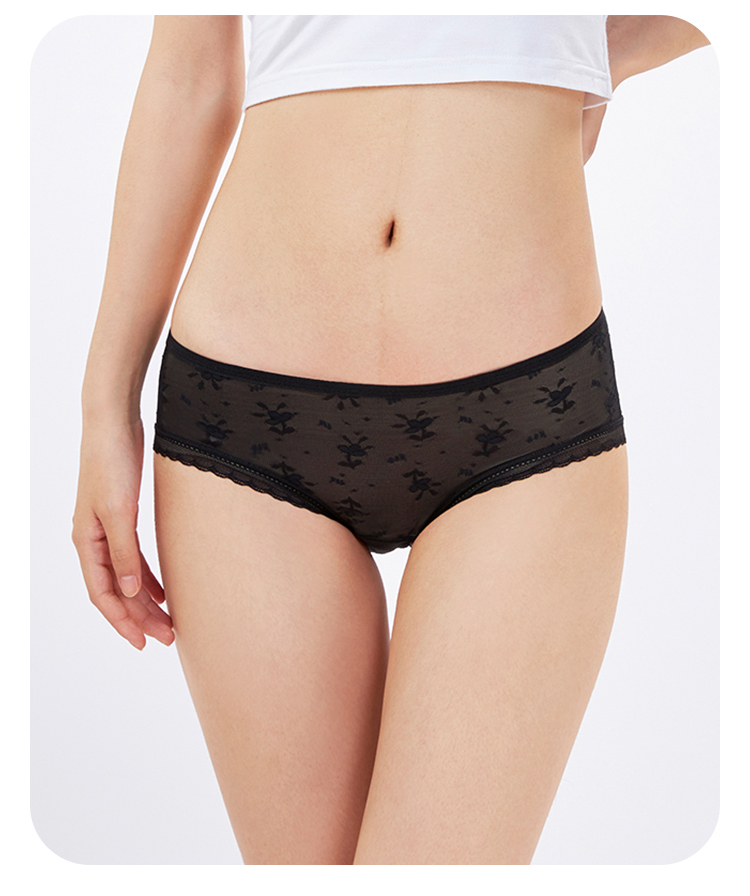 都市丽人薄透丝滑蕾丝网布系列蕾丝平角裤LKH5E1