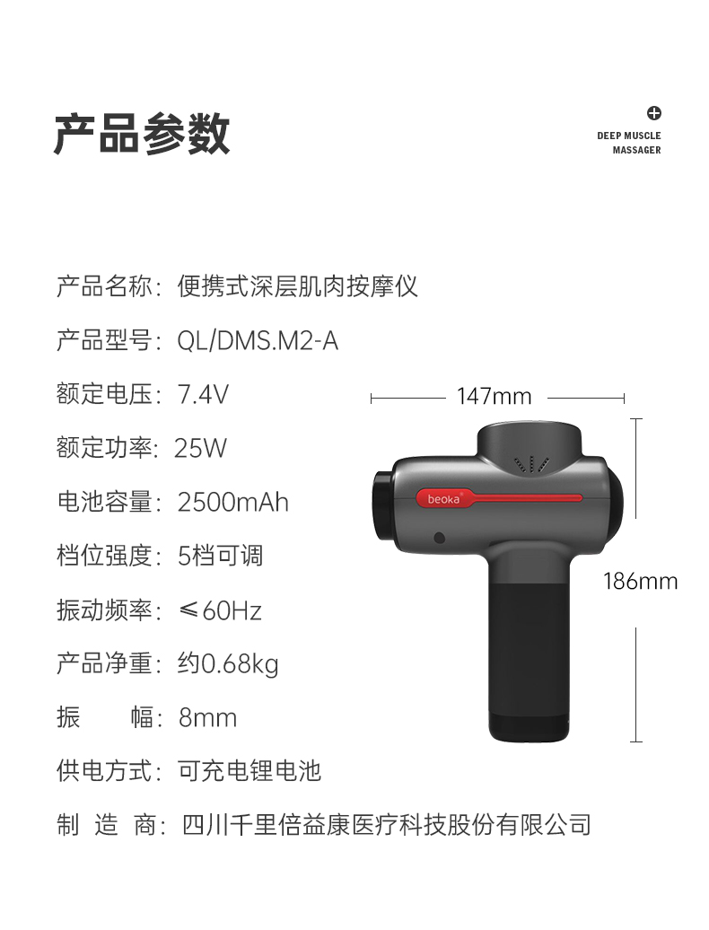M2倍益康 便携式深层肌肉按摩仪生日礼物送男士 M2专业级健身筋膜枪深层肌肉放松按摩器