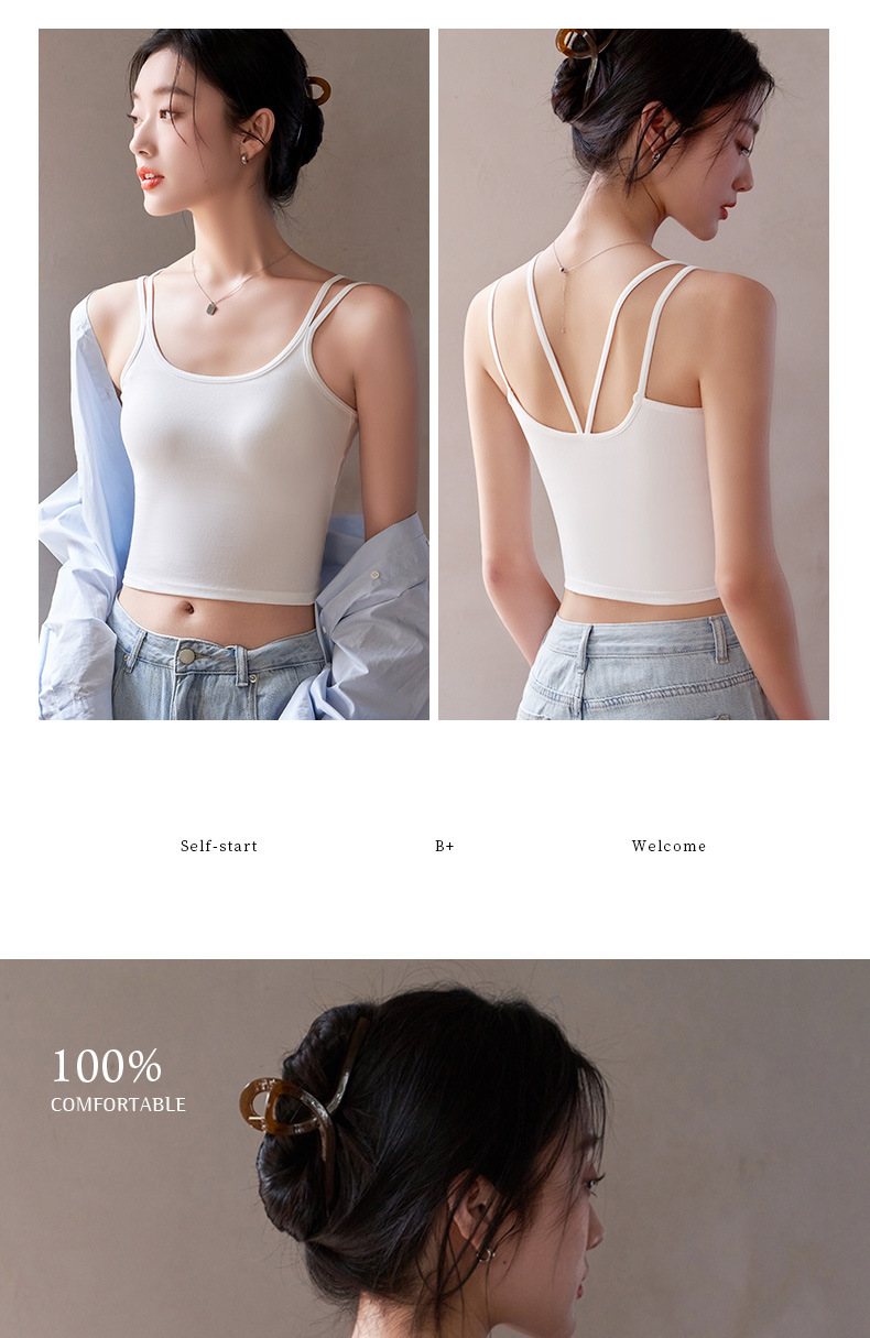新品【巨舒适!可外穿!!】夏日必备神器,美式小吊带,性感透气舒适的大露背背心,百搭无痕,多色可选。加宽侧业聚拢,带胸垫上衣,免穿文胸,想怎么搭配就怎么搭配!